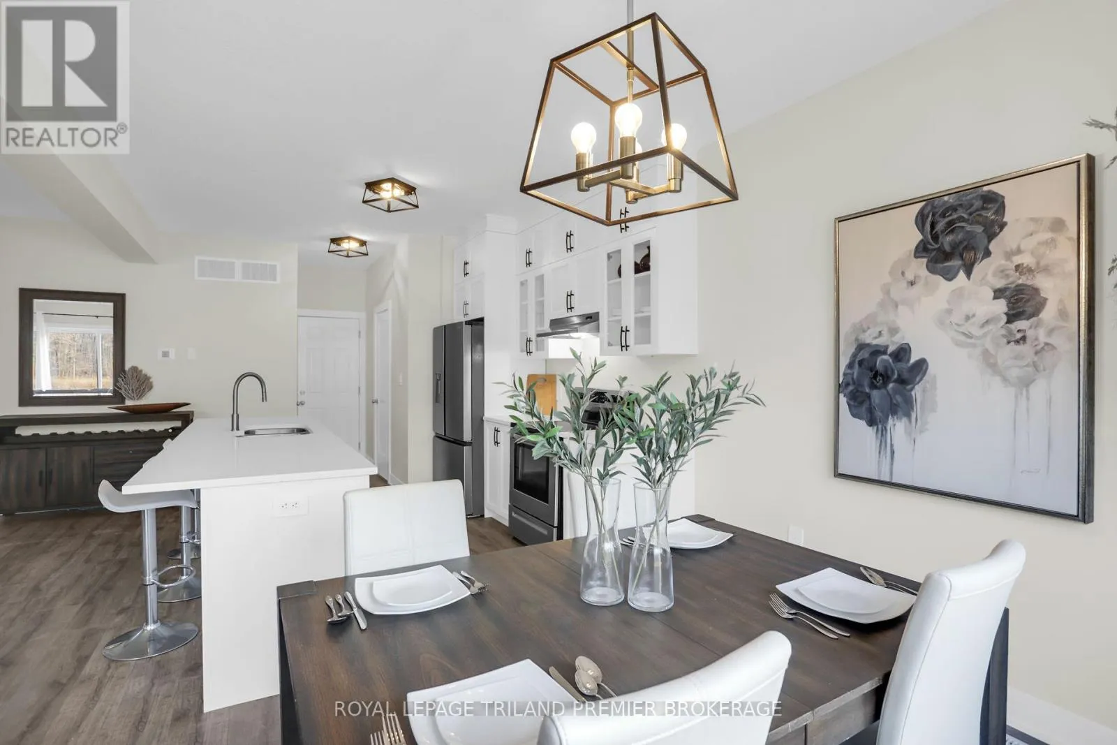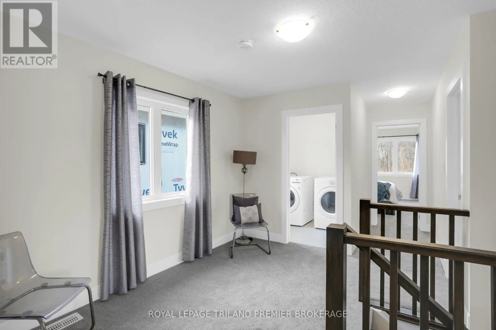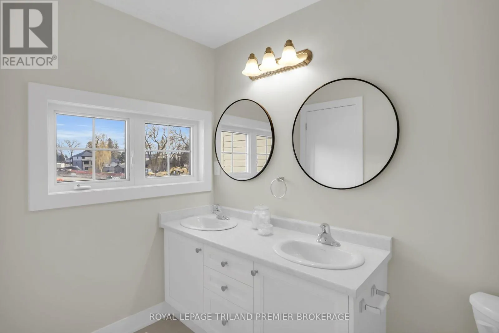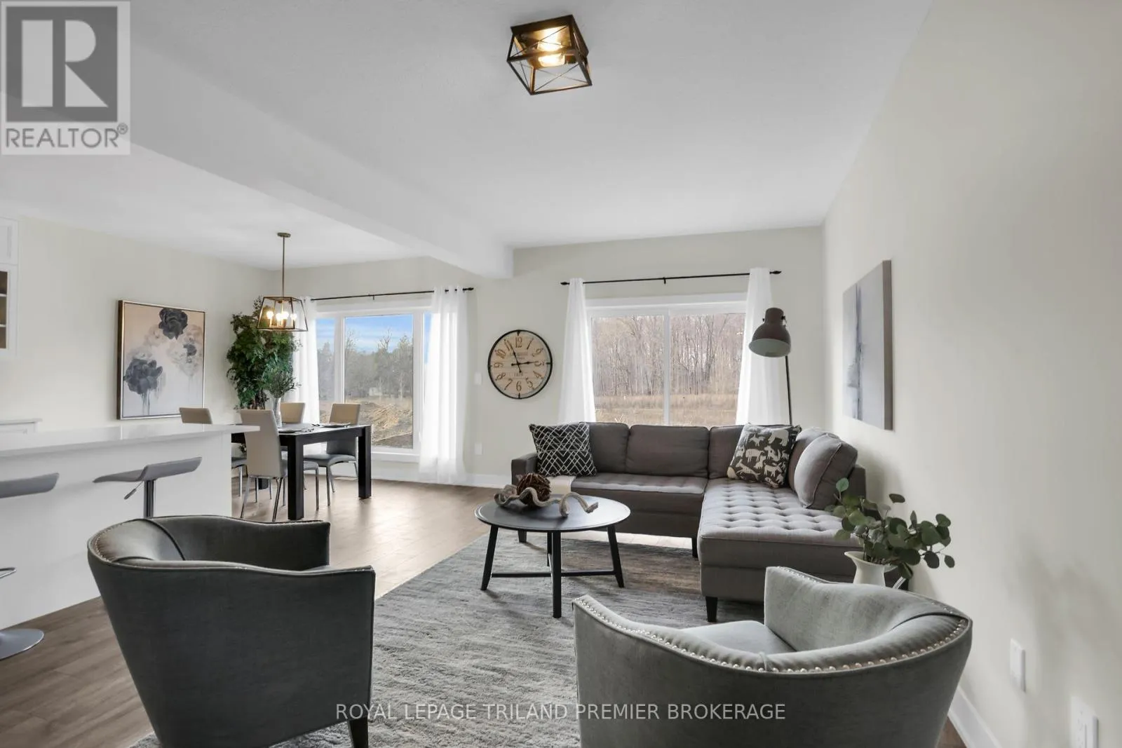 Cross Streets: CHICKADEE AND ORIOLE. ** Directions: FROM HAMILTON ROAD HEAD WEST ON ORIOLE DRIVE. TO BE BUILT! Sunlight Heritage Homes presents The Warren. 1957 sq ft of expertly designed living space located in desirable Old Victoria on the Thames. Enter into the generous open concept main level featuring kitchen with quartz countertops, 36" upper cabinets with valance and crown moulding, microwave shelf and island with breakfast bar; great room with 9' ceilings and large bright window, dinette with sliding door access to the backyard and convenient main floor 2-piece bathroom. The upper level includes 4 spacious bedrooms including primary suite with walk in closet and 5-piece ensuite with double sinks; laundry room and main bathroom that has cheater ensuite access to second bedroom. Bright walk-out basement with access to backyard and pond. Other standard inclusions: Hardwood flooring throughout main level (except bathroom), 5' patio slider, 9' ceilings on main level, bathroom rough-in in basement, drywalled garage and more! Other lots and plans to choose from. Photos are from model home and show upgraded items. (id:27476)