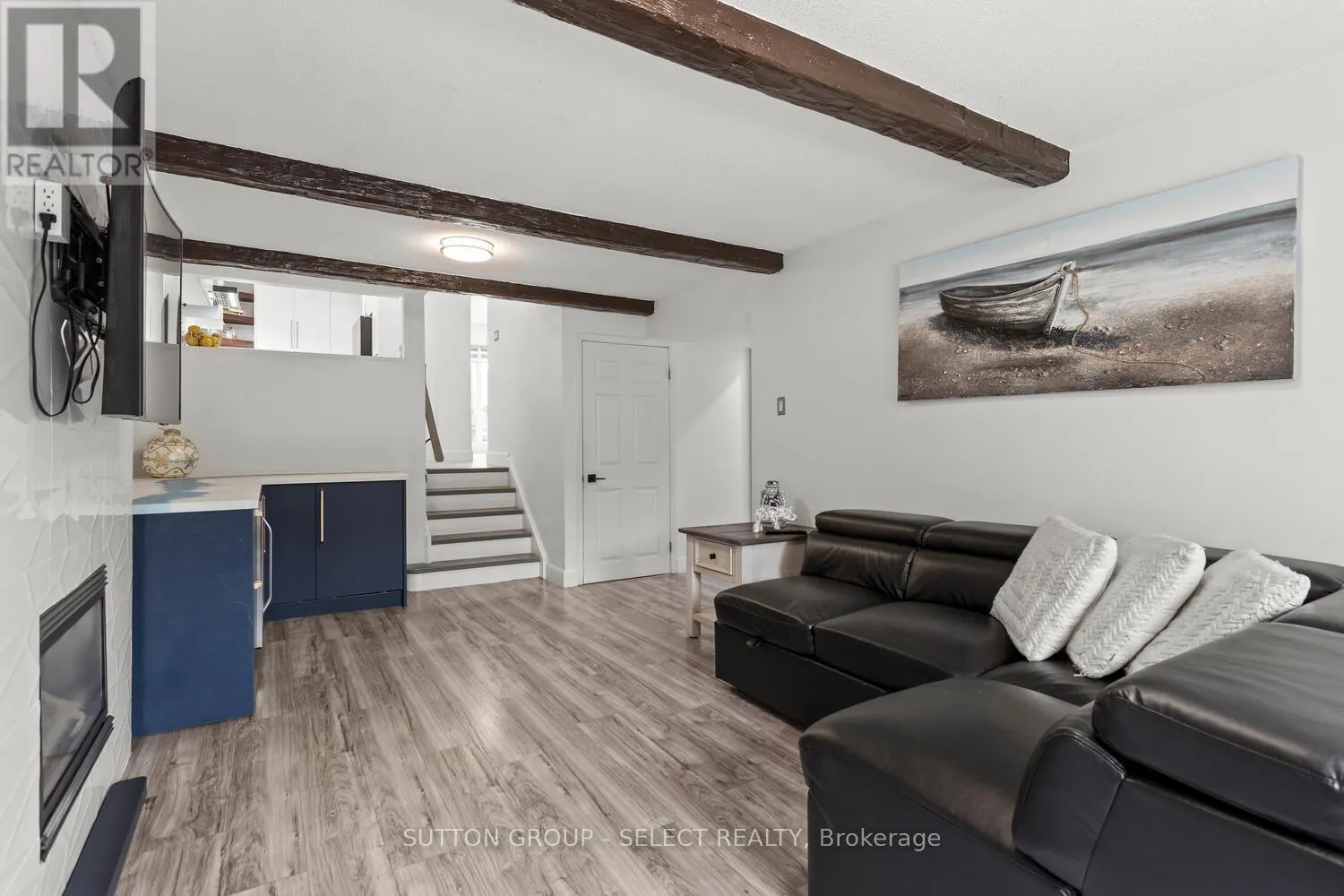 Cross Streets: Whortington & Lysanda. ** Directions: Commissioners & Deveron. Deveron & PondmillsDirections:From Commissioners East Right on Deveron, Left on Lysanda, left to Lochern. Stunning Back Split with Walkout Basement 4 Bedrooms + Den & 3 Baths! Beautifully updated home in a family-friendly neighborhood featuring 4 spacious bedrooms, a versatile den, and 3 full baths ideal for growing or multi-generational families. The modern kitchen boasts stainless steel appliances, ample cabinetry, and an open design flowing into bright living and dining areas. Enjoy new flooring, neutral décor, upgraded lighting, and recent major updates including a new roof, on-demand tankless water heater (2024), and newer A/C. The lower level offers a stylish family room with a modern fireplace, custom bar island with mini fridge, and walkout to a fully fenced backyard with hot tub and canopy. Concrete double driveway, paved sidewalks, and patio add great curb appeal. Close to schools, hospital, amenities, and Highway 401move-in ready and waiting for you! (id:27476)