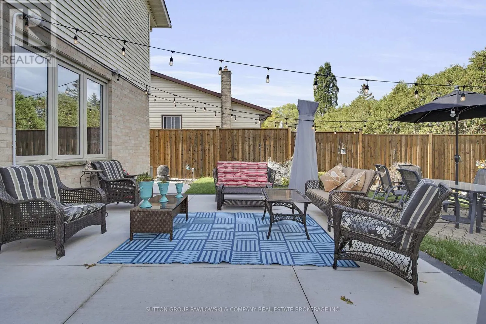 Cross Streets: Homeview Rd. ** Directions: . Welcome to this meticulously maintained 5 level side split with double car garage offering the perfect blend of comfort, convenience, and location. Step inside to discover a warm and inviting living space featuring a formal living room and a beautiful dining area perfect for gatherings. The bright eat-in kitchen offers an abundance of cabinetry, newer appliances, and a lovely view overlooking the spacious family room complete with a cozy gas fireplace.The upper level features three generous bedrooms with new flooring, updated closet doors, and a refreshed bathroom with a stylish shower stall. The lower level extends your living space with a second family room, full bathroom, and a versatile office, den, or exercise room.Additional highlights include a two-car garage with newer tile flooring and a high-end Wi-Fi enabled garage door opener, as well as a pressed concrete driveway. Step outside and enjoy the peace and serenity of the gorgeous backyard, complete with a newer composite deck, large 30x18 concrete patio ideal for entertaining, and a new privacy fence on one side.This home has been freshly painted throughout including all trim and doors and showcases new flooring, carpeting, and updated larger baseboards. Ideally situated on a private crescent in a desirable south-end neighbourhood, you'll appreciate the proximity to excellent schools, shopping, parks, and easy 401 highway access. (id:27476)