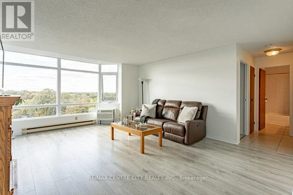 Cross Streets: From Pond Mills Road and Thompson Road, Head southeast on Pond Mills Rd, Turn right onto Ailsa Pl, Right into Parking Lot. ** Directions: Pond Mills Road and Thompson Road. Welcome to Unit 915 at 45 Pond Mills. Situated amongst a canopy of trees on the 9th floor, this 1 bedroom, 1 bathroom condominium apartment is being offered for sale. With westerly exposure, this open unit benefits from sun pouring in throughout the open living/dining space. The flooring is new and the unit has been completely repainted. In addition, is a storage room and in suite washer and dryer. The property is well maintained with new windows (2023) throughout and boasts amenities including a gym, sauna and party room. Enjoy a quick drive to shopping, dining and a host of other conveniences. (id:27476)