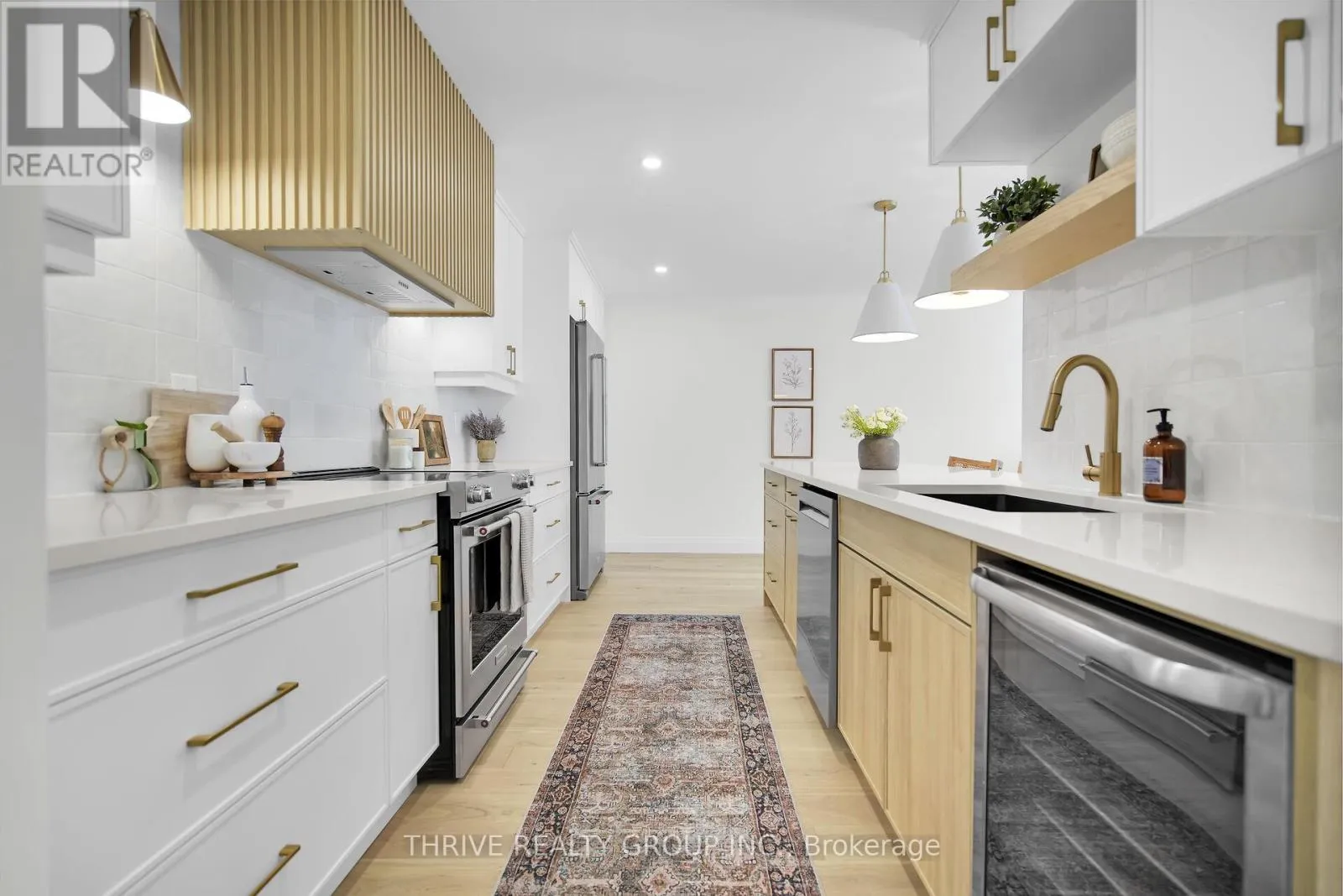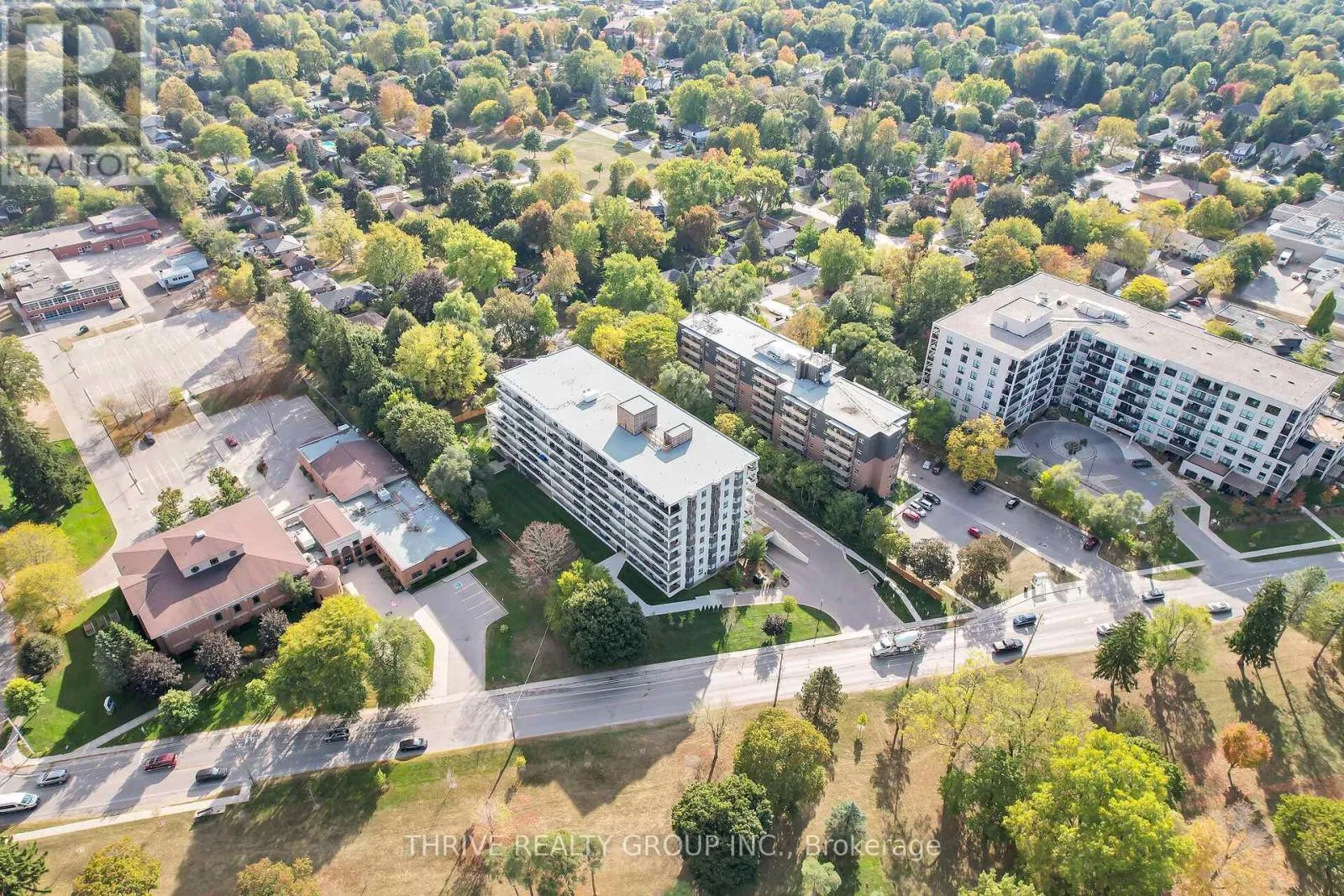 Cross Streets: Commissioners Rd West & Lynden Crescent. ** Directions: South side of Commissioners Rd West, opposite Springbank Park. **OPEN SUNDAY 2PM - 4PM** Welcome to the ultimate blend of style, comfort, and convenience at Byron's Park Terrace Development - just steps from the trails and beauty of Springbank Park! Perfect for downsizers or anyone craving easy one-floor living, this fully updated 2-bedroom, 2-bath condo delivers the wow factor at every turn. The open-concept layout showcases a stunning custom kitchen with quartz countertops, a beverage centre, peninsula seating, and endless storage - ideal for both entertaining and everyday living. Relax in the spacious living room with its engineered hardwood flooring and cozy feature fireplace, or host dinner parties in the dining area with room for 8-10+ guests. The primary suite is a private retreat with a luxurious custom-tiled shower, dual sinks, and direct access to your terrace for morning coffee or evening sunsets. The second bedroom offers flexibility as a guest room, home office, or den. Life at Park Terrace means enjoying amenities like an indoor pool, underground parking, a putting green, and more - all just steps from Byron's best shops, restaurants, and conveniences. Style. Luxury. Location. This is the one you've been waiting for! (id:27476)