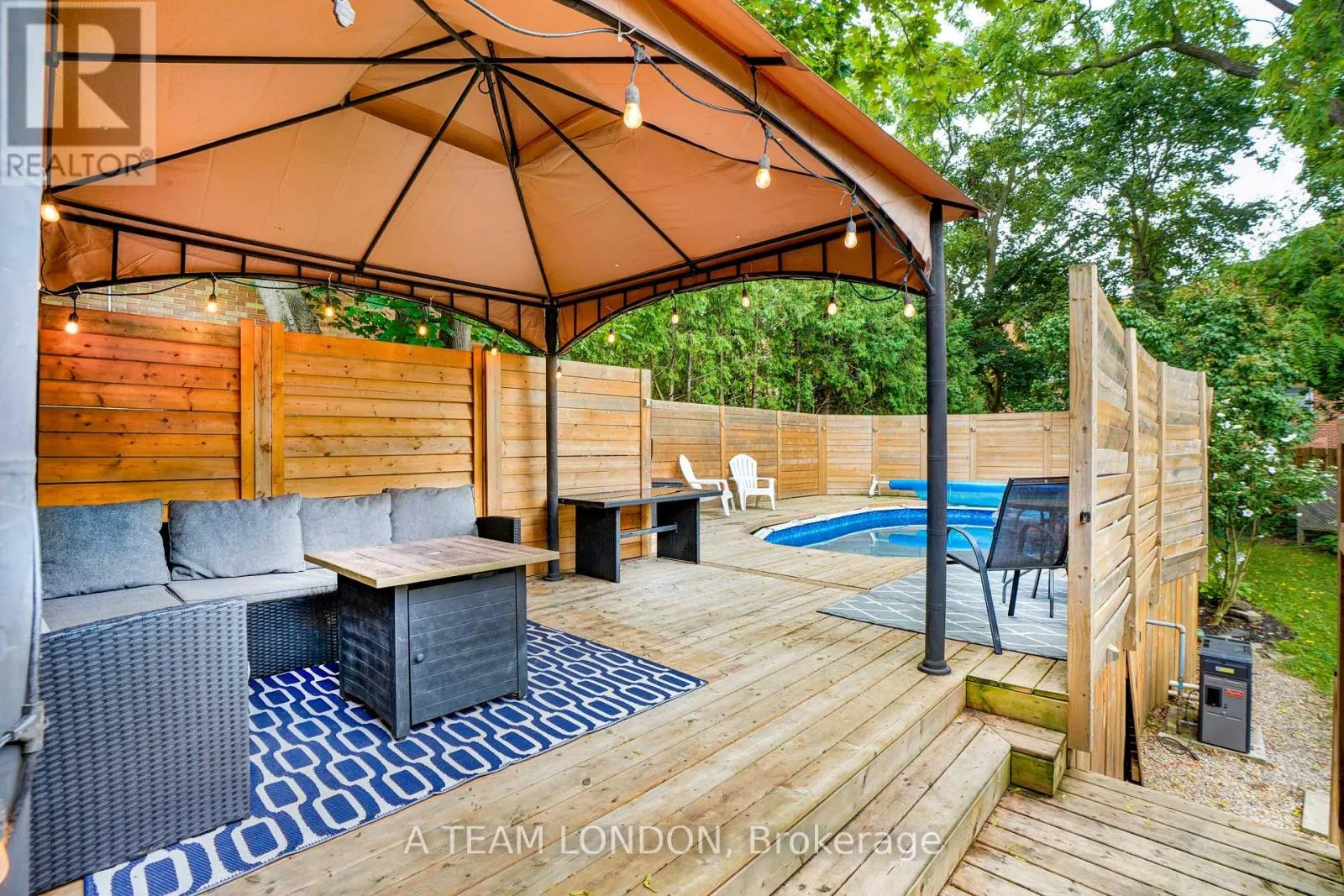 Cross Streets: High St. ** Directions: South on High st, West on Mcclary. Welcome to 37 McClary Avenue a charming bungalow tucked away on a quiet dead-end street in the heart of South London. This 2+1 bedroom, 1 bathroom home is the perfect blend of character and modern comfort. Step inside to find fresh new flooring flowing through the main living and kitchen areas, where a stylish modern kitchen with newer appliances makes everyday living and entertaining a joy. Out back, your private retreat awaits. A newer deck wraps around the heated pool, creating the ideal summer hangout, complete with a fenced yard and dedicated lounge space perfect for relaxing weekends or hosting friends. The curb appeal is equally inviting, with a cozy front profile that feels right at home in this established neighbourhood. With its adorable street presence, updated interior, and outdoor oasis, this home is ready to impress. Whether you're starting out, downsizing, or simply looking for a place that feels like home the moment you arrive, 37 McClary delivers charm, comfort, and lifestyle in one thoughtful package. (id:27476)