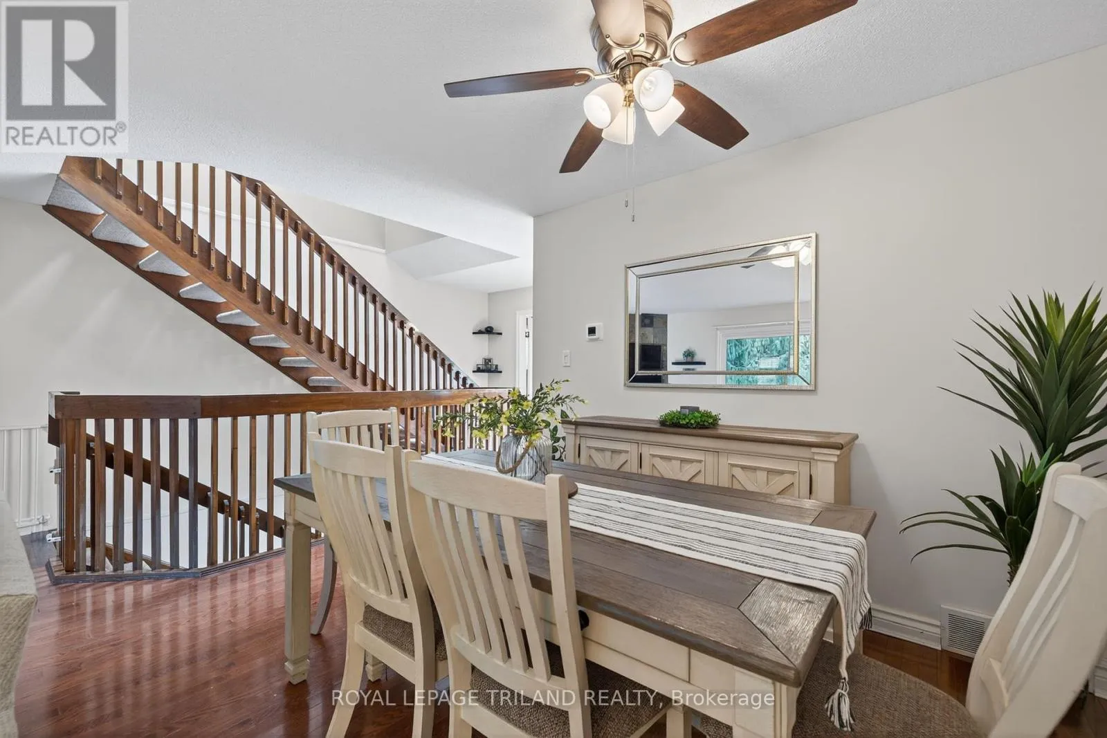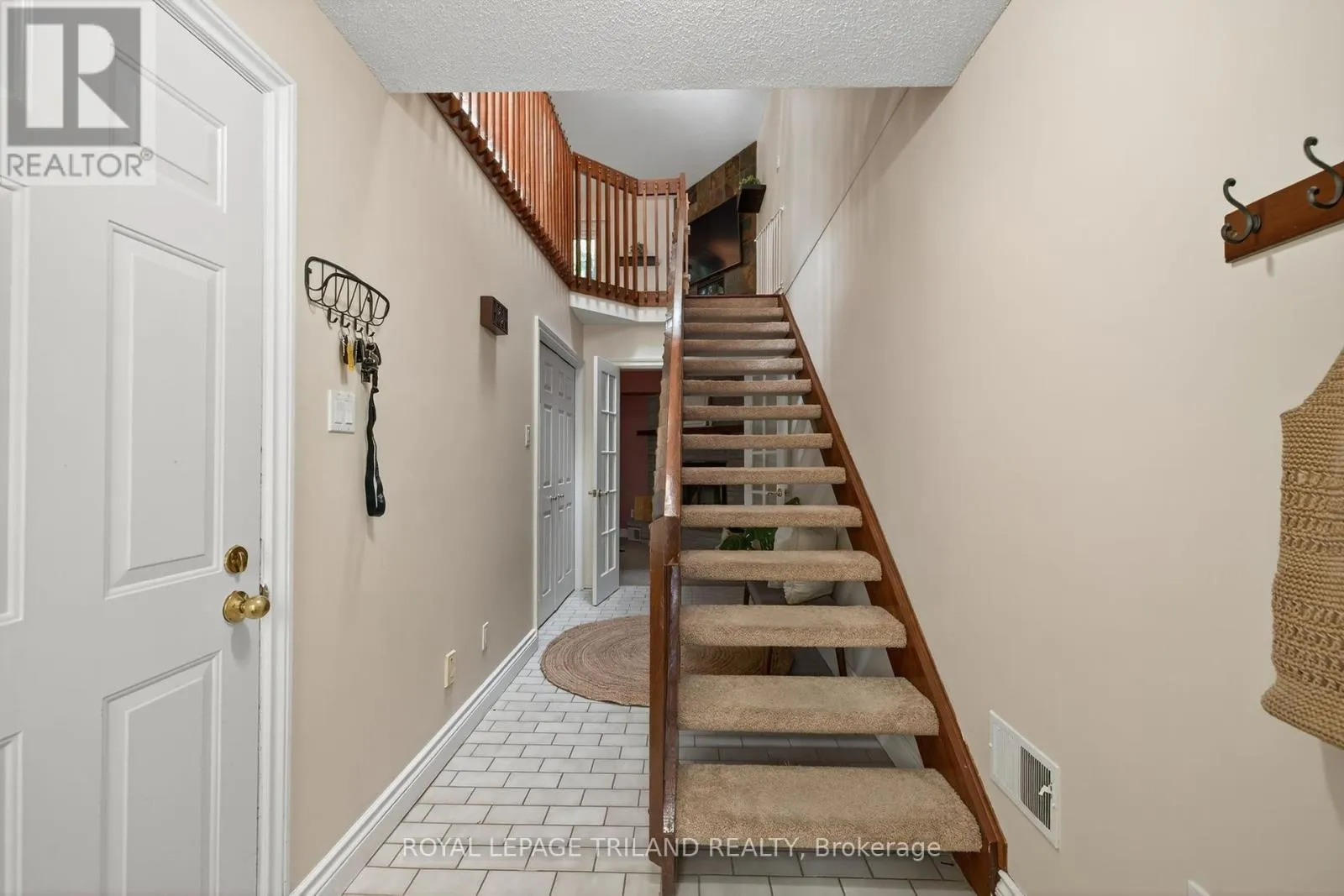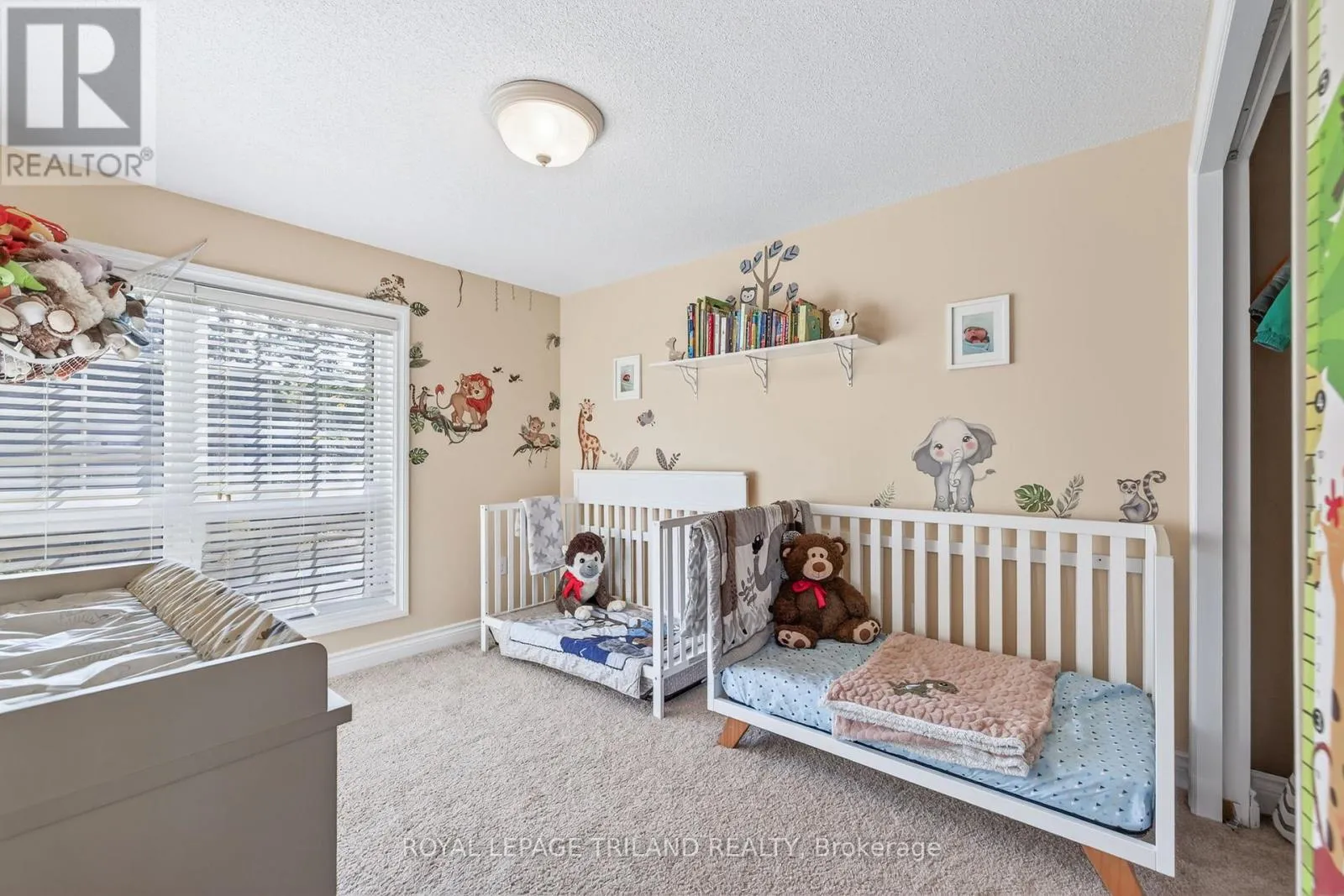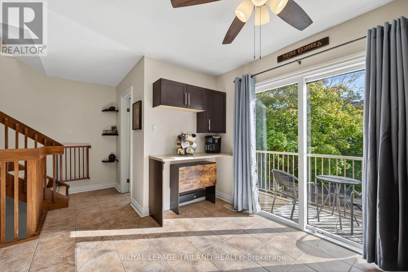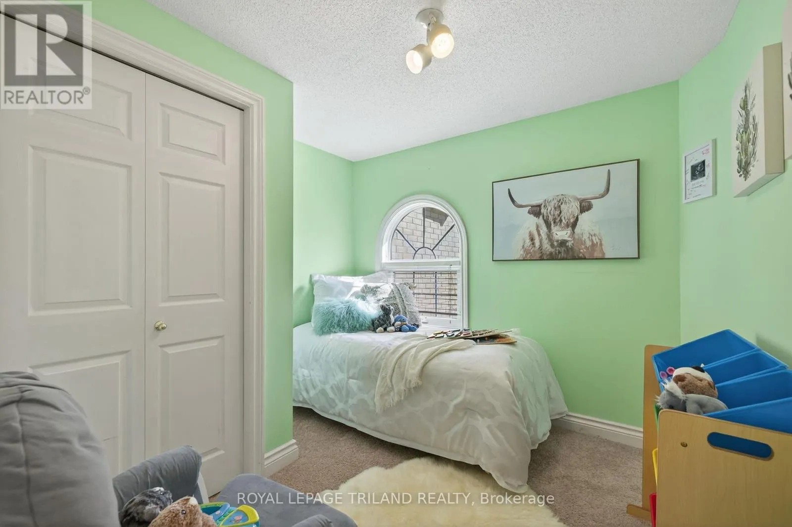 Commissioners and Reynolds Rd. Welcome to this bright and inviting 3-bedroom, 2-bathroom townhouse condo with three levels of comfortable living all in the heart of Byron, offering a warm chalet-style vibe. Head up to the main level, where you'll find an open-concept living and dining area featuring hardwood flooring, fresh paint, and an electric fireplace. The updated kitchen boasts newer stainless steel appliances, while two separate balconies one off the kitchen and another off the living room offer perfect spots for your morning coffee or evening unwind. A convenient 2-piece bath completes this level. The upper floor includes three bedrooms and a4-piece bath, with the primary bedroom featuring a walk-in closet for added storage and comfort. The ground-level walkout leads to a cozy back patio, perfect for enjoying the quiet surroundings, while inside, a wood-burning fireplace adds warmth and charm. Additional highlights include a Lennox furnace (2019),A/C (2016), and an owned water heater (2019), plus an attached garage for added convenience. Ideally located within walking distance to Springbank Park, close to Boler Mountain, and near great schools and local amenities, this move-in-ready home combines warmth, style, and an unbeatable Byron location. Book your showing today! (id:27476)