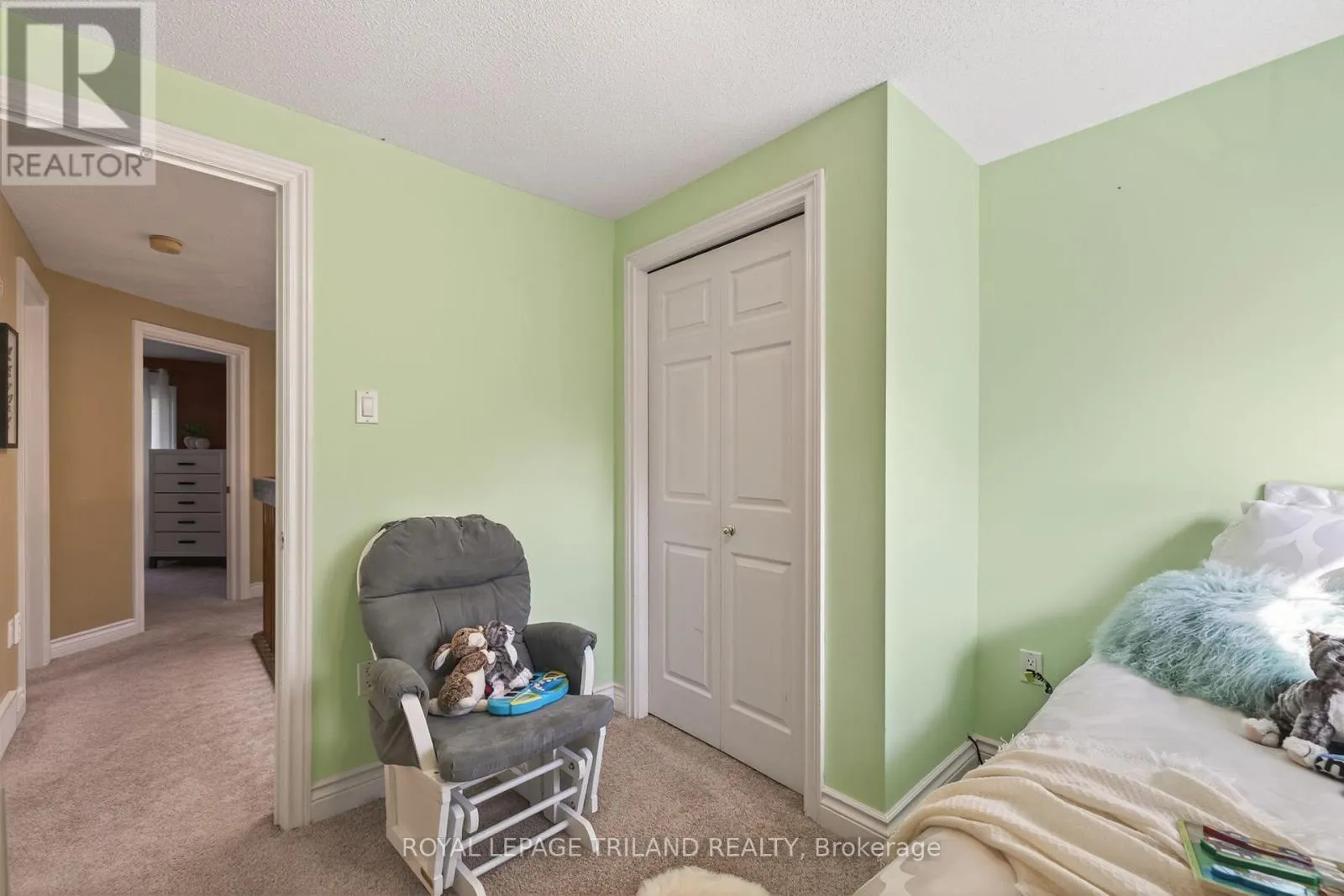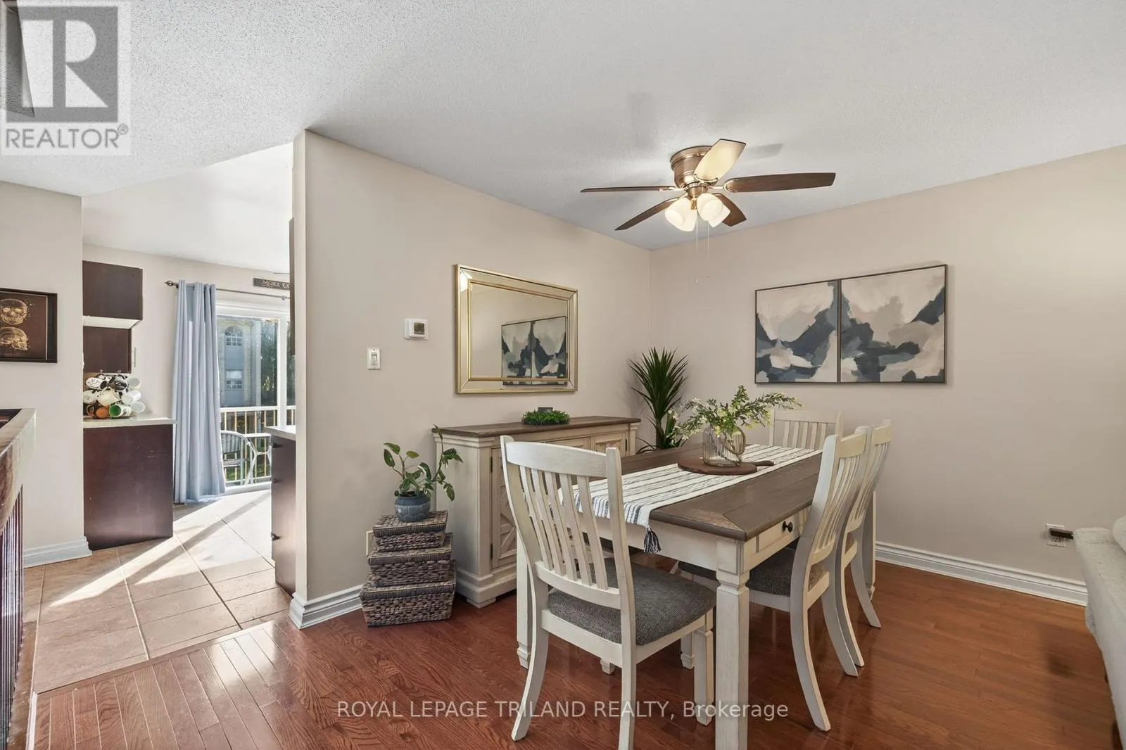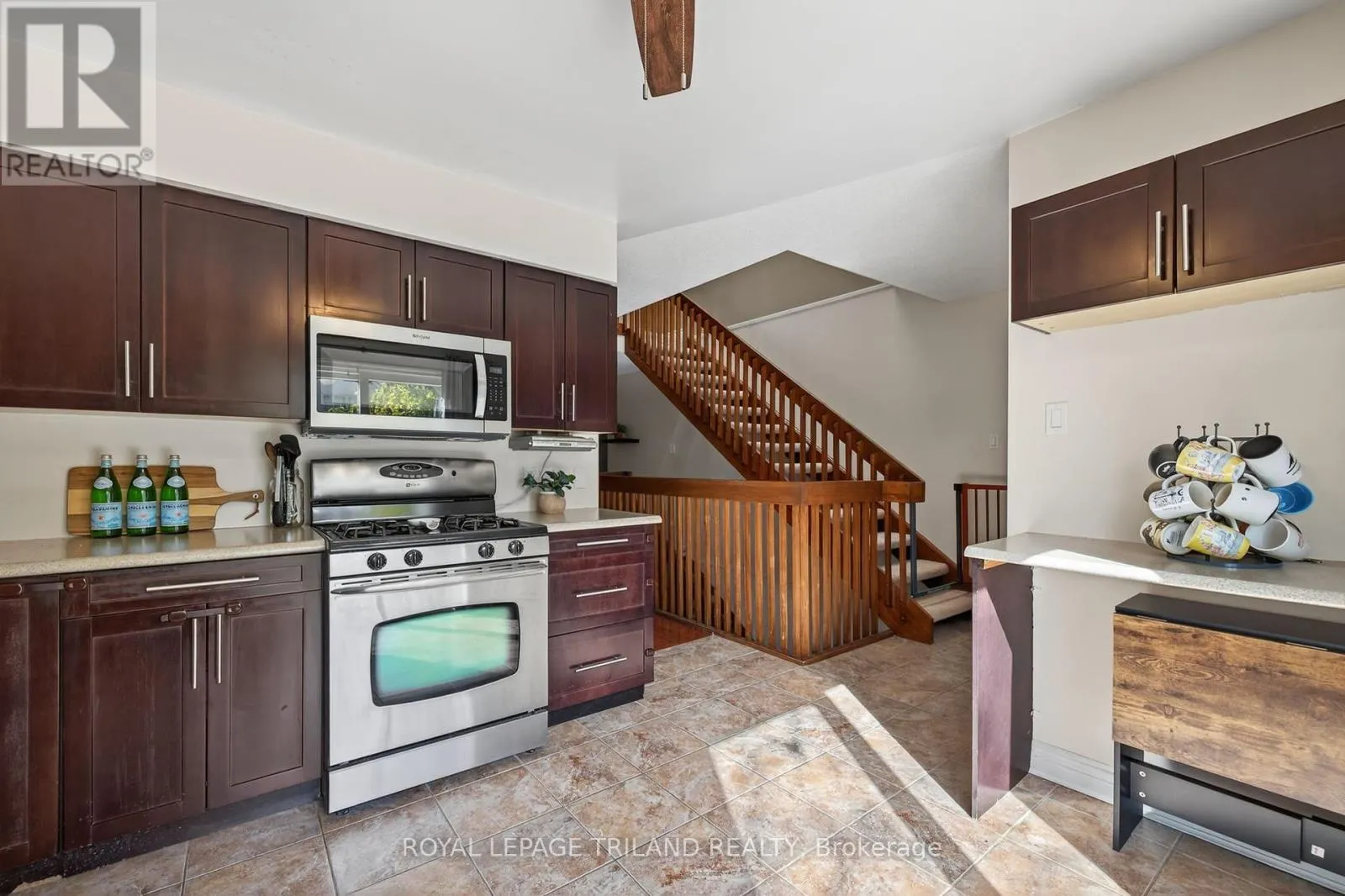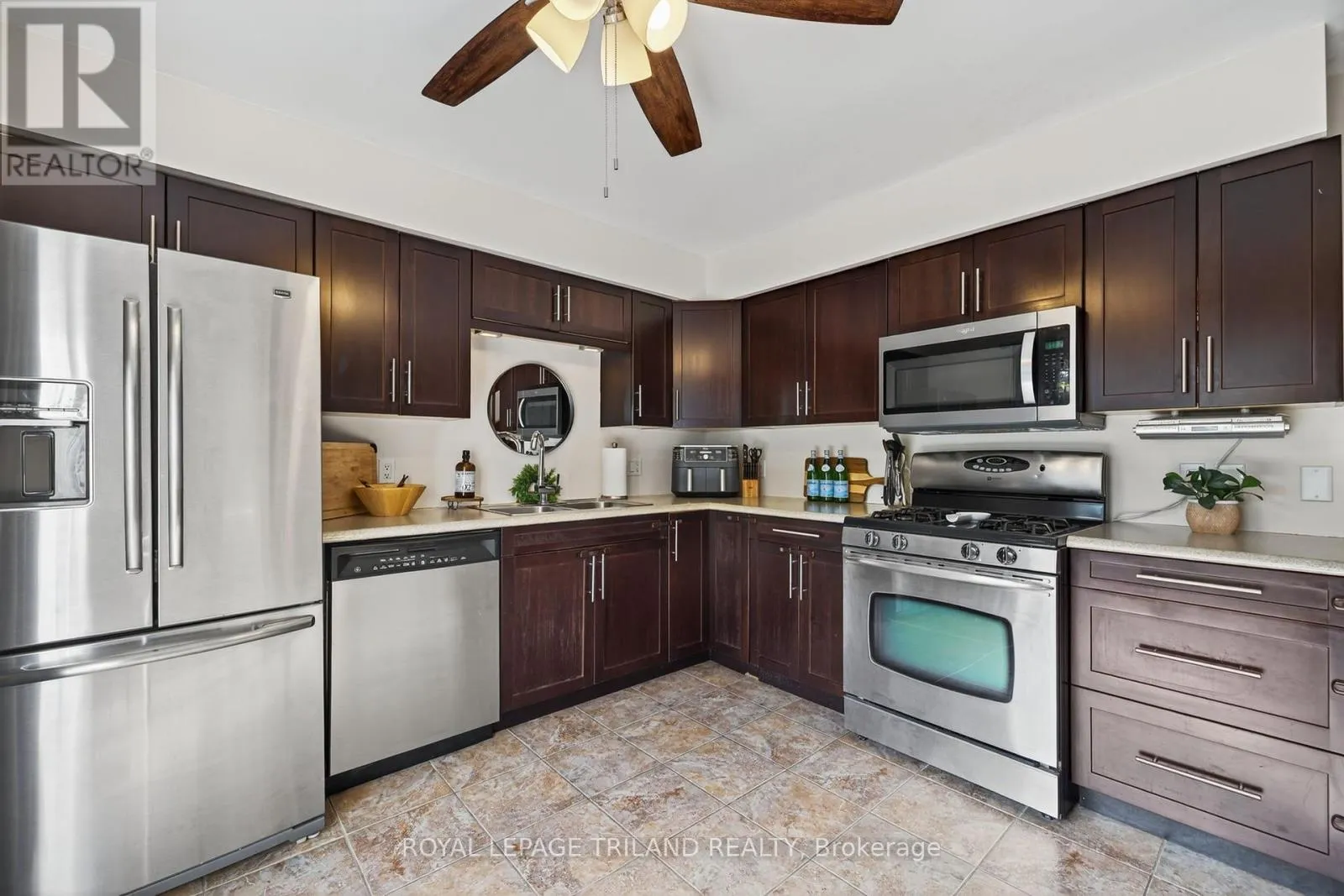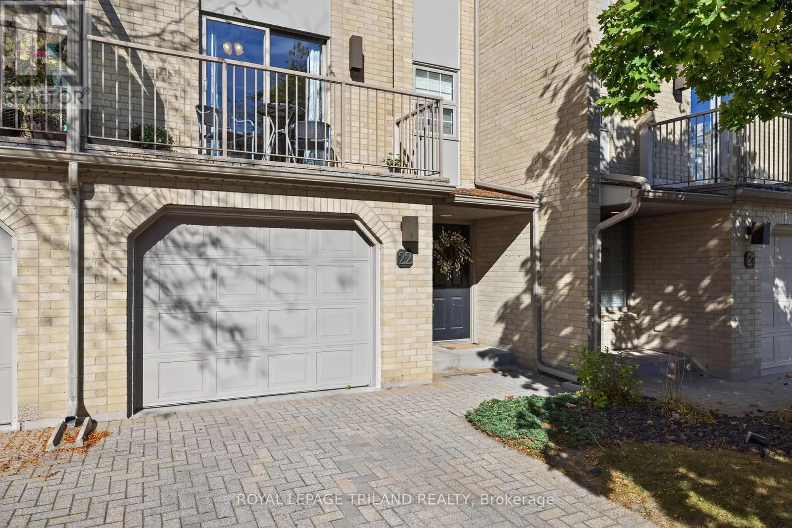 Commissioners and Reynolds Rd. Welcome to this bright and inviting 3-bedroom, 2-bathroom townhouse condo with three levels of comfortable living all in the heart of Byron, offering a warm chalet-style vibe. Head up to the main level, where you'll find an open-concept living and dining area featuring hardwood flooring, fresh paint, and an electric fireplace. The updated kitchen boasts newer stainless steel appliances, while two separate balconies one off the kitchen and another off the living room offer perfect spots for your morning coffee or evening unwind. A convenient 2-piece bath completes this level. The upper floor includes three bedrooms and a4-piece bath, with the primary bedroom featuring a walk-in closet for added storage and comfort. The ground-level walkout leads to a cozy back patio, perfect for enjoying the quiet surroundings, while inside, a wood-burning fireplace adds warmth and charm. Additional highlights include a Lennox furnace (2019),A/C (2016), and an owned water heater (2019), plus an attached garage for added convenience. Ideally located within walking distance to Springbank Park, close to Boler Mountain, and near great schools and local amenities, this move-in-ready home combines warmth, style, and an unbeatable Byron location. Book your showing today! (id:27476)