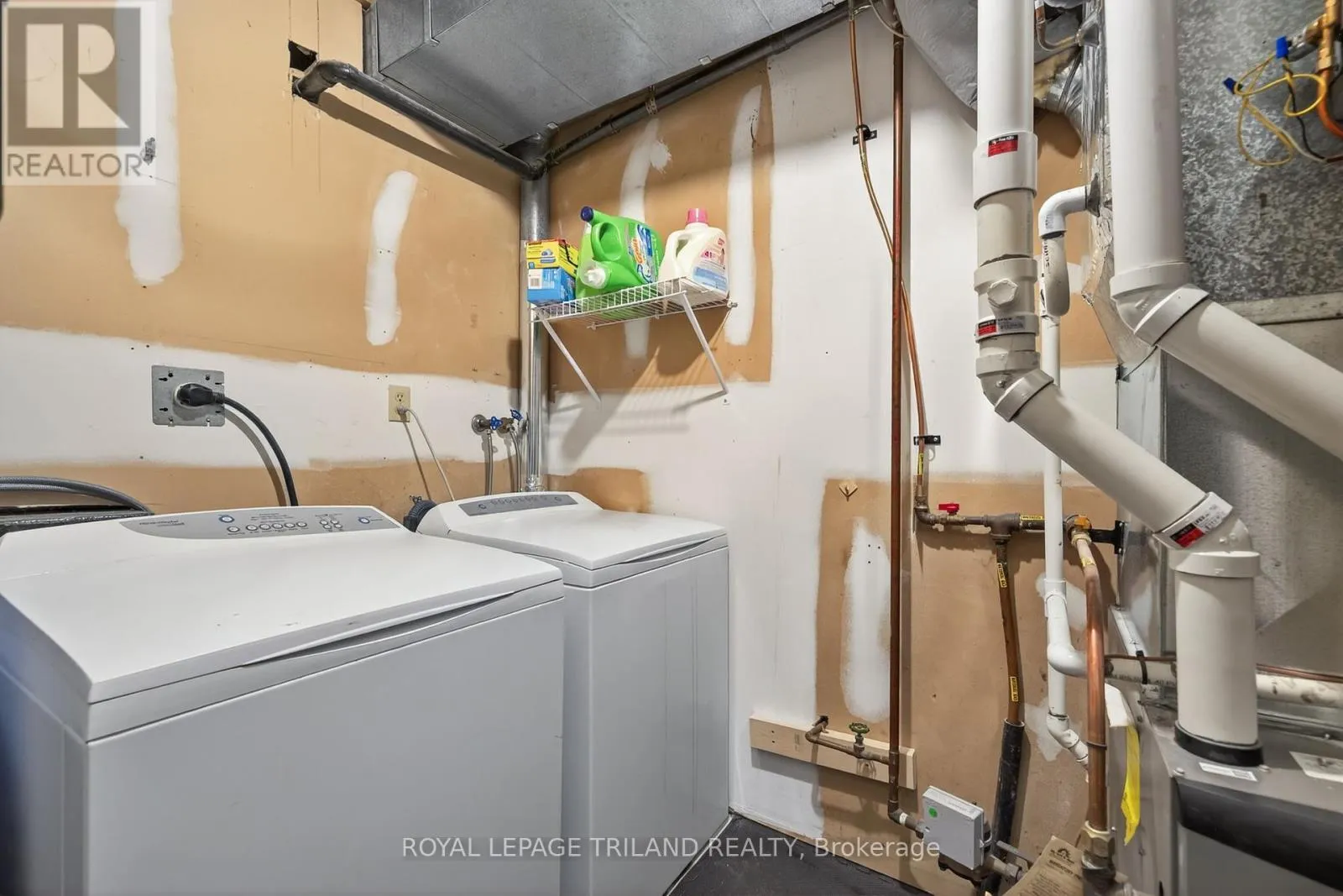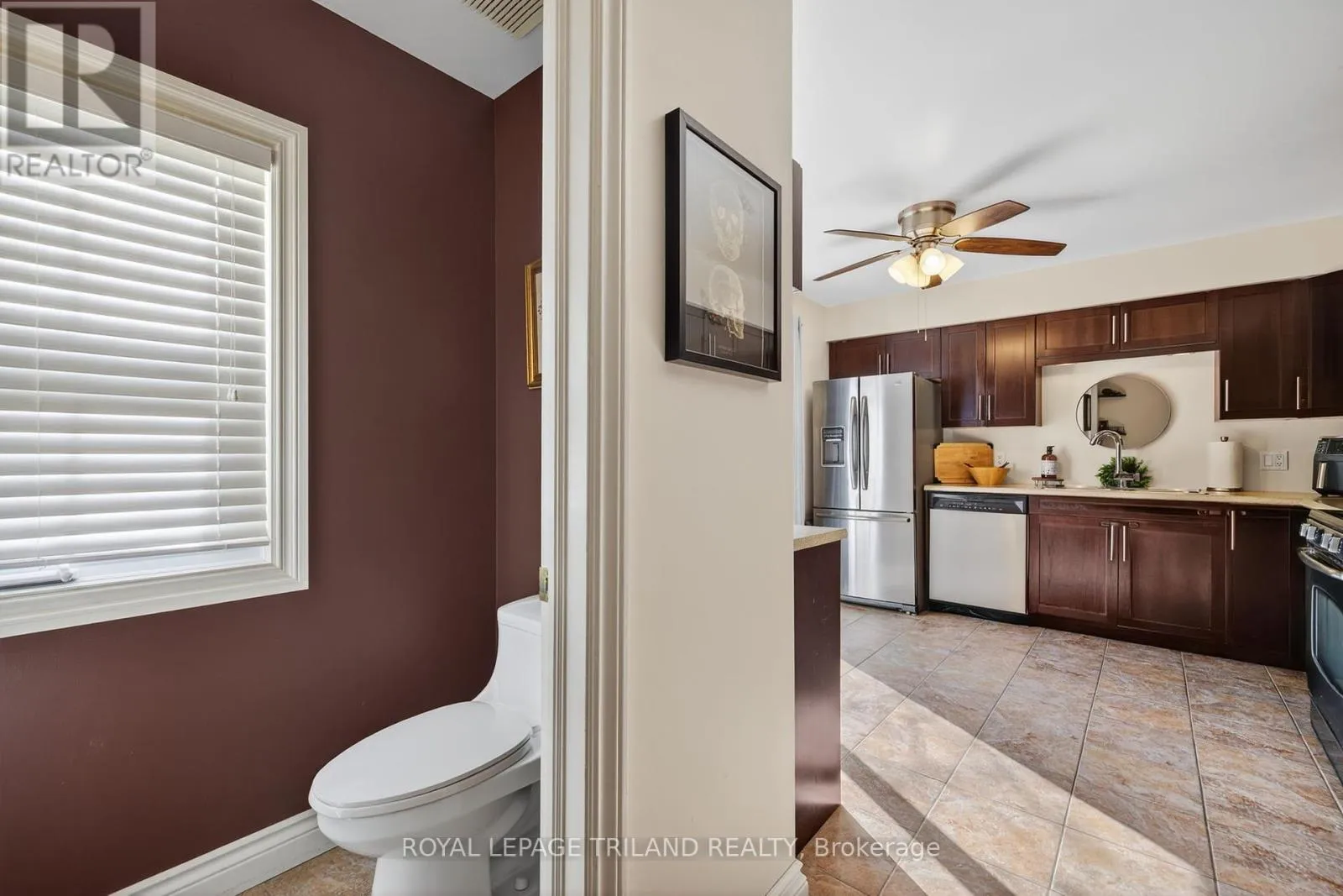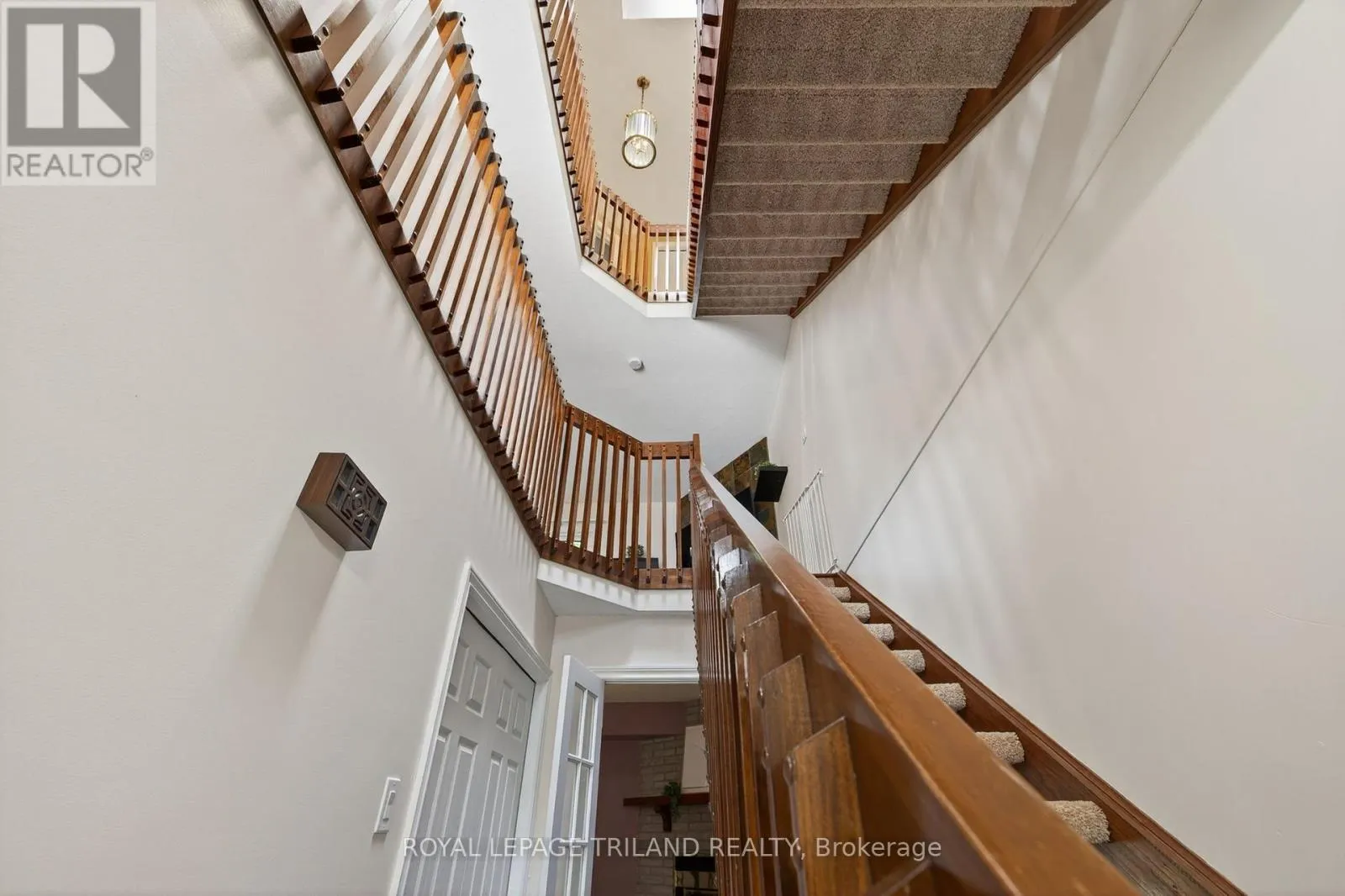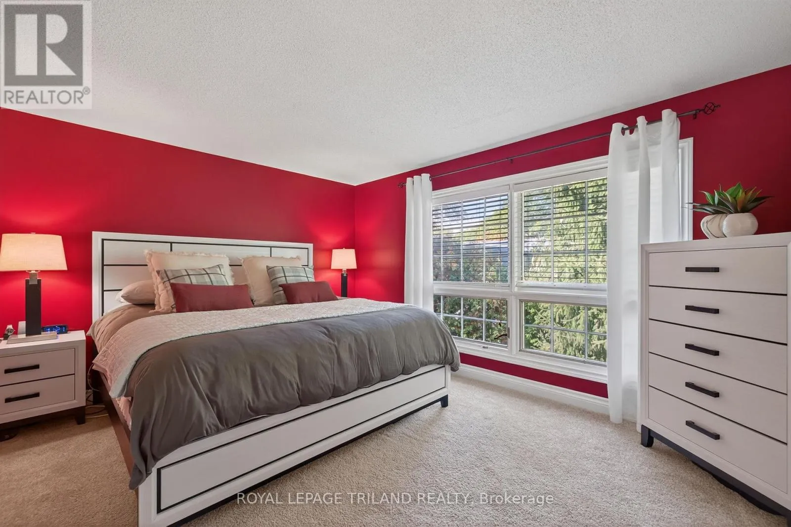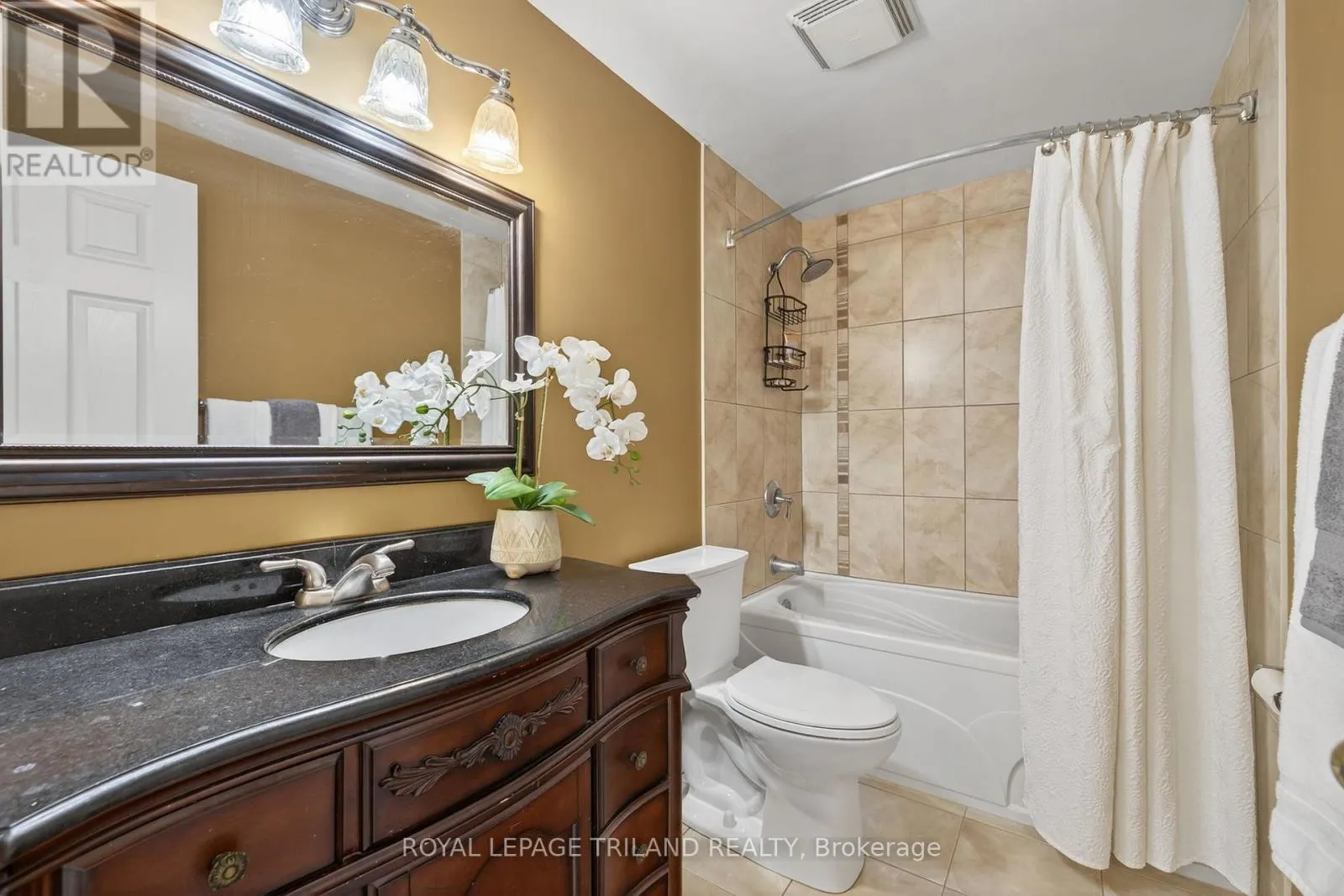 Commissioners and Reynolds Rd. Welcome to this bright and inviting 3-bedroom, 2-bathroom townhouse condo with three levels of comfortable living all in the heart of Byron, offering a warm chalet-style vibe. Head up to the main level, where you'll find an open-concept living and dining area featuring hardwood flooring, fresh paint, and an electric fireplace. The updated kitchen boasts newer stainless steel appliances, while two separate balconies one off the kitchen and another off the living room offer perfect spots for your morning coffee or evening unwind. A convenient 2-piece bath completes this level. The upper floor includes three bedrooms and a4-piece bath, with the primary bedroom featuring a walk-in closet for added storage and comfort. The ground-level walkout leads to a cozy back patio, perfect for enjoying the quiet surroundings, while inside, a wood-burning fireplace adds warmth and charm. Additional highlights include a Lennox furnace (2019),A/C (2016), and an owned water heater (2019), plus an attached garage for added convenience. Ideally located within walking distance to Springbank Park, close to Boler Mountain, and near great schools and local amenities, this move-in-ready home combines warmth, style, and an unbeatable Byron location. Book your showing today! (id:27476)