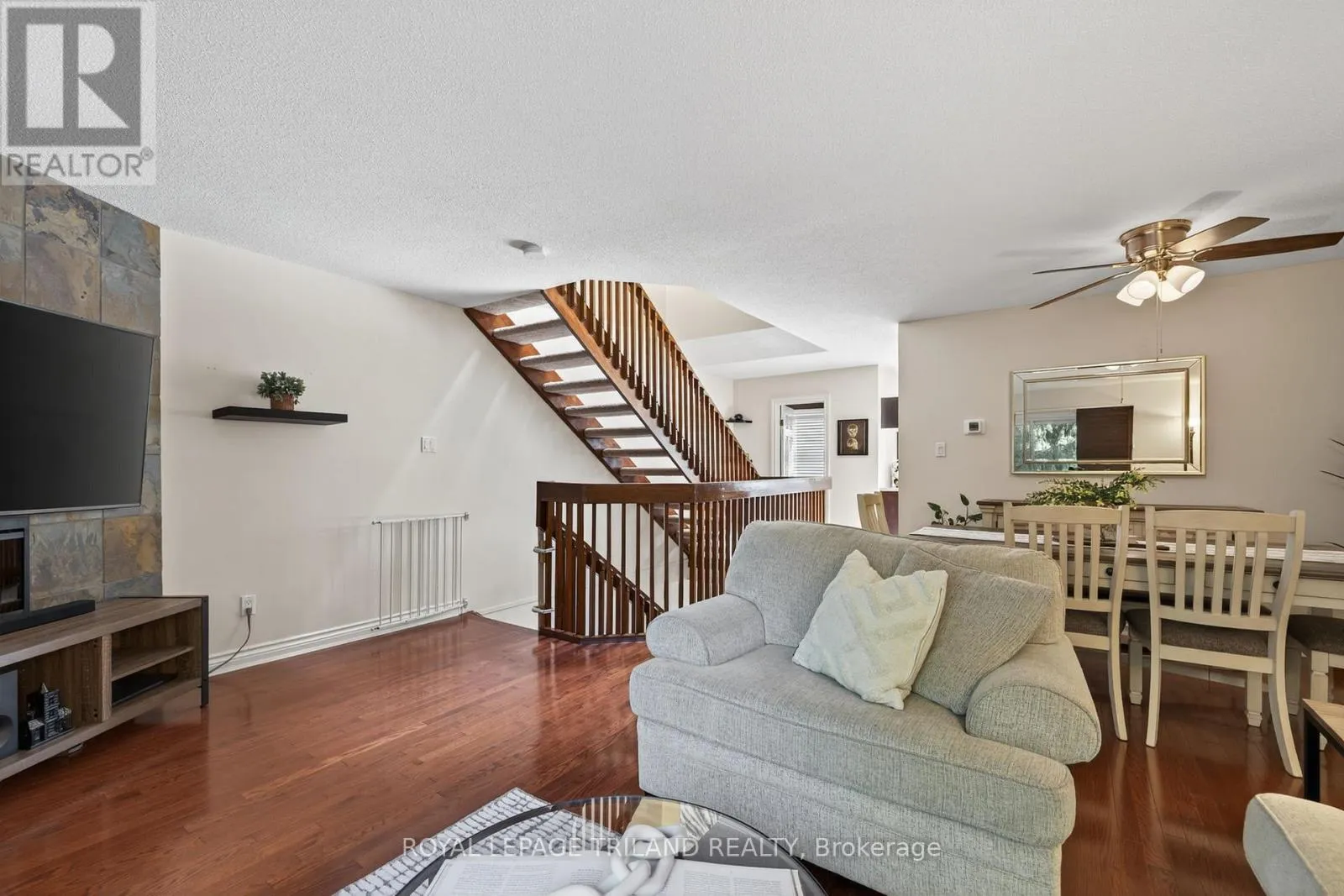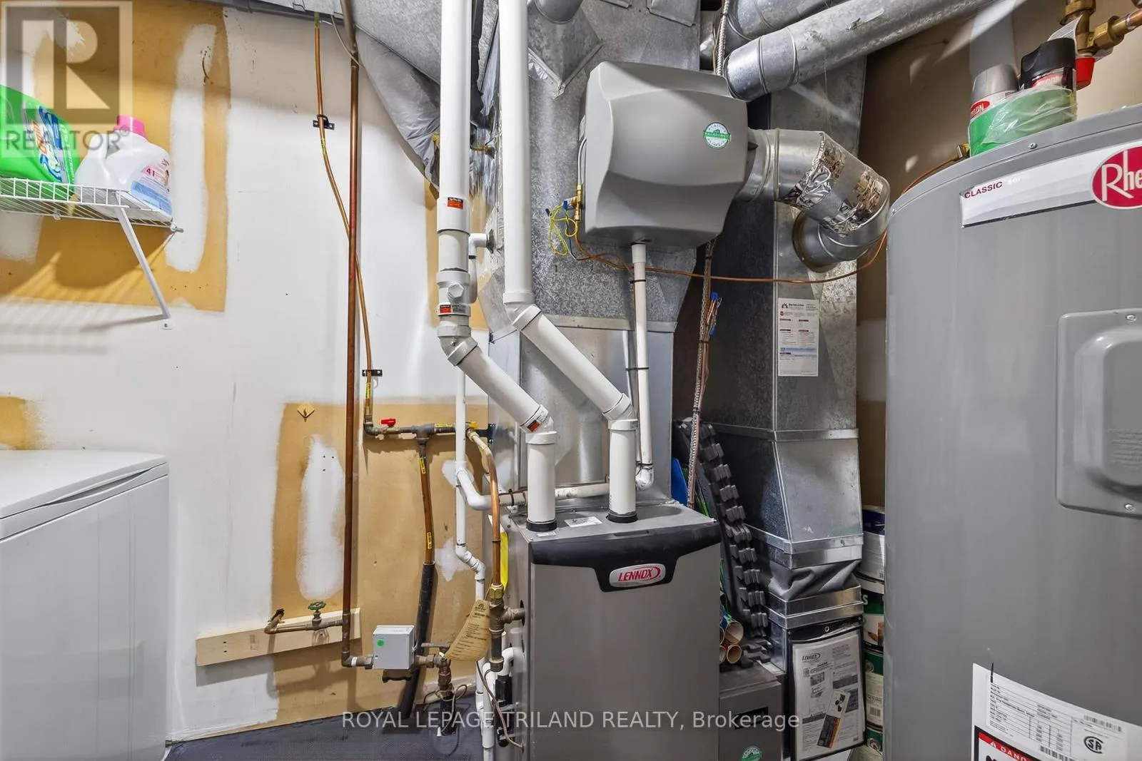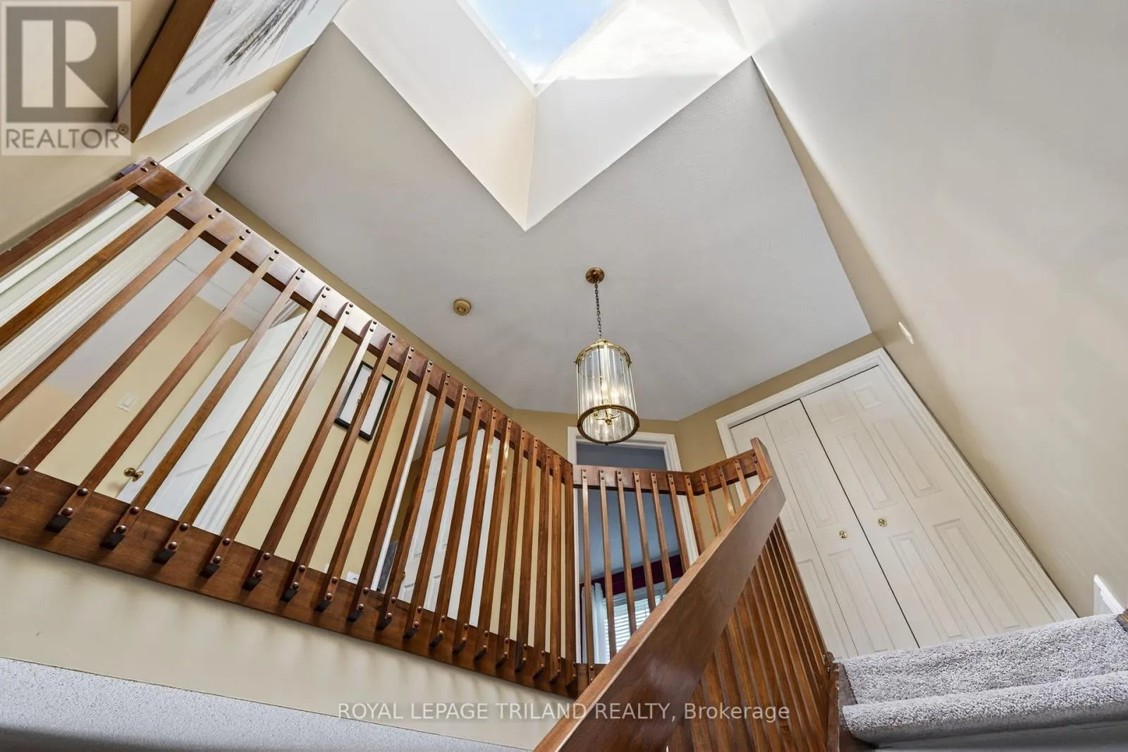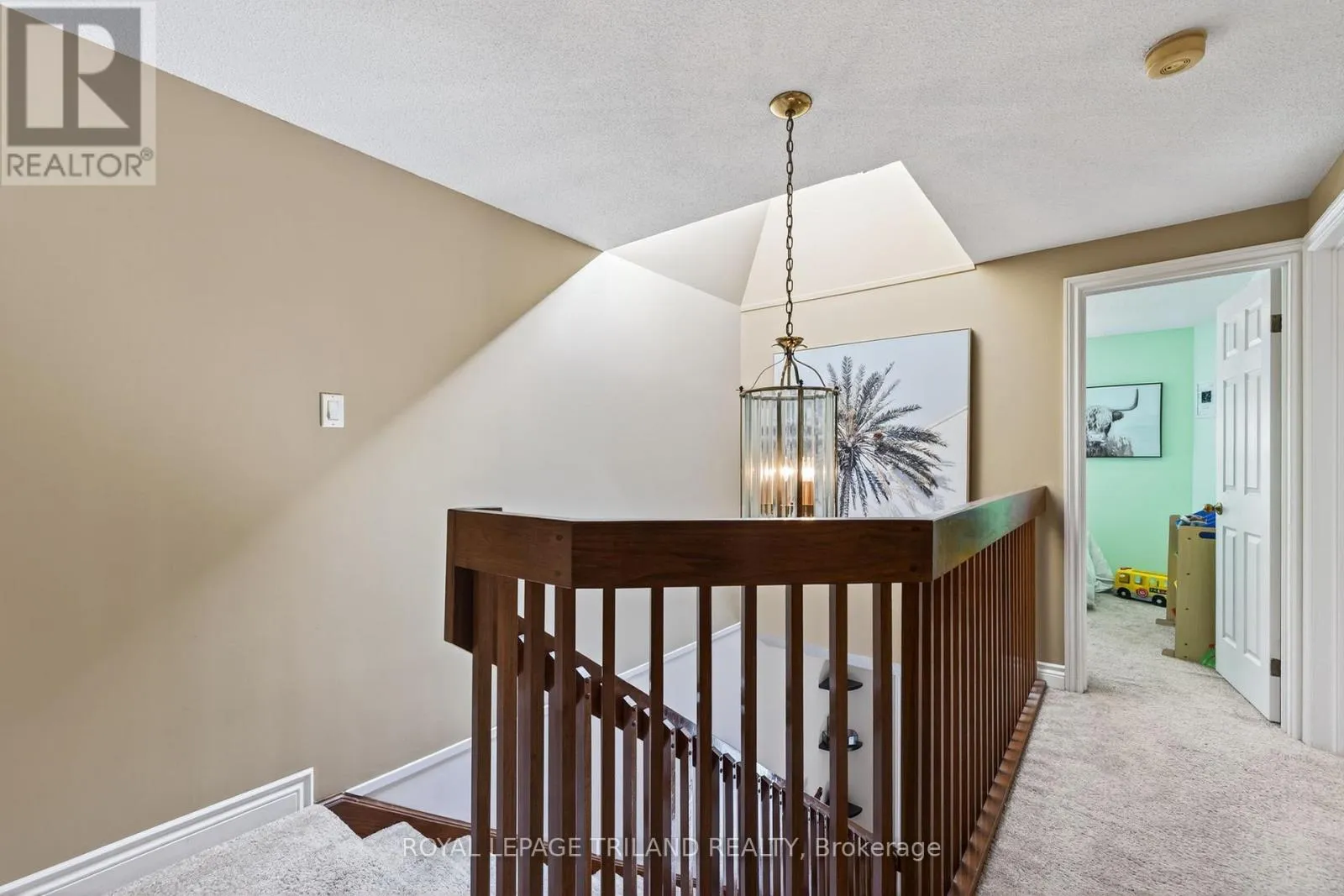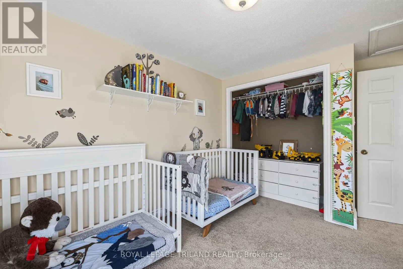 Commissioners and Reynolds Rd. Welcome to this bright and inviting 3-bedroom, 2-bathroom townhouse condo with three levels of comfortable living all in the heart of Byron, offering a warm chalet-style vibe. Head up to the main level, where you'll find an open-concept living and dining area featuring hardwood flooring, fresh paint, and an electric fireplace. The updated kitchen boasts newer stainless steel appliances, while two separate balconies one off the kitchen and another off the living room offer perfect spots for your morning coffee or evening unwind. A convenient 2-piece bath completes this level. The upper floor includes three bedrooms and a4-piece bath, with the primary bedroom featuring a walk-in closet for added storage and comfort. The ground-level walkout leads to a cozy back patio, perfect for enjoying the quiet surroundings, while inside, a wood-burning fireplace adds warmth and charm. Additional highlights include a Lennox furnace (2019),A/C (2016), and an owned water heater (2019), plus an attached garage for added convenience. Ideally located within walking distance to Springbank Park, close to Boler Mountain, and near great schools and local amenities, this move-in-ready home combines warmth, style, and an unbeatable Byron location. Book your showing today! (id:27476)
