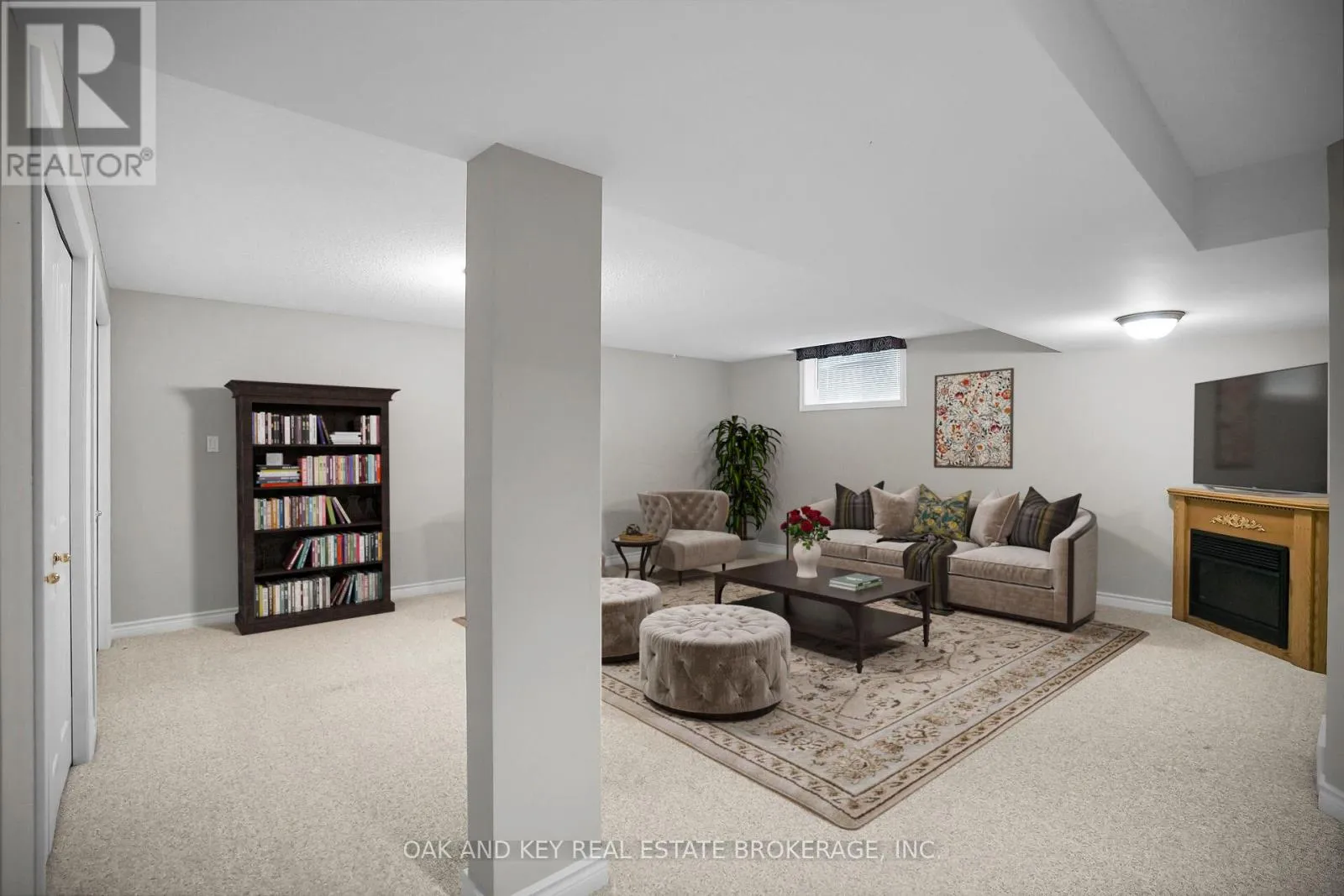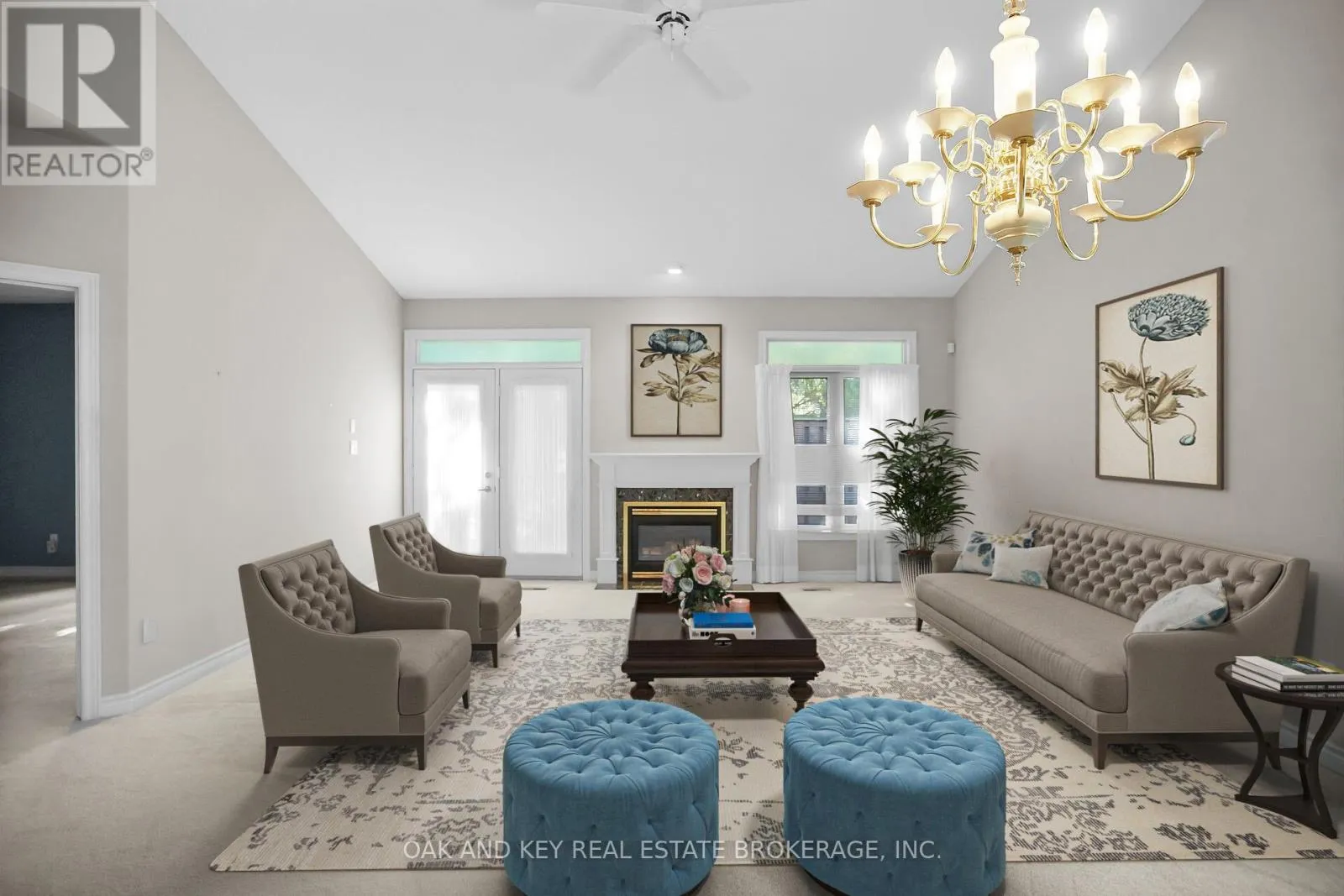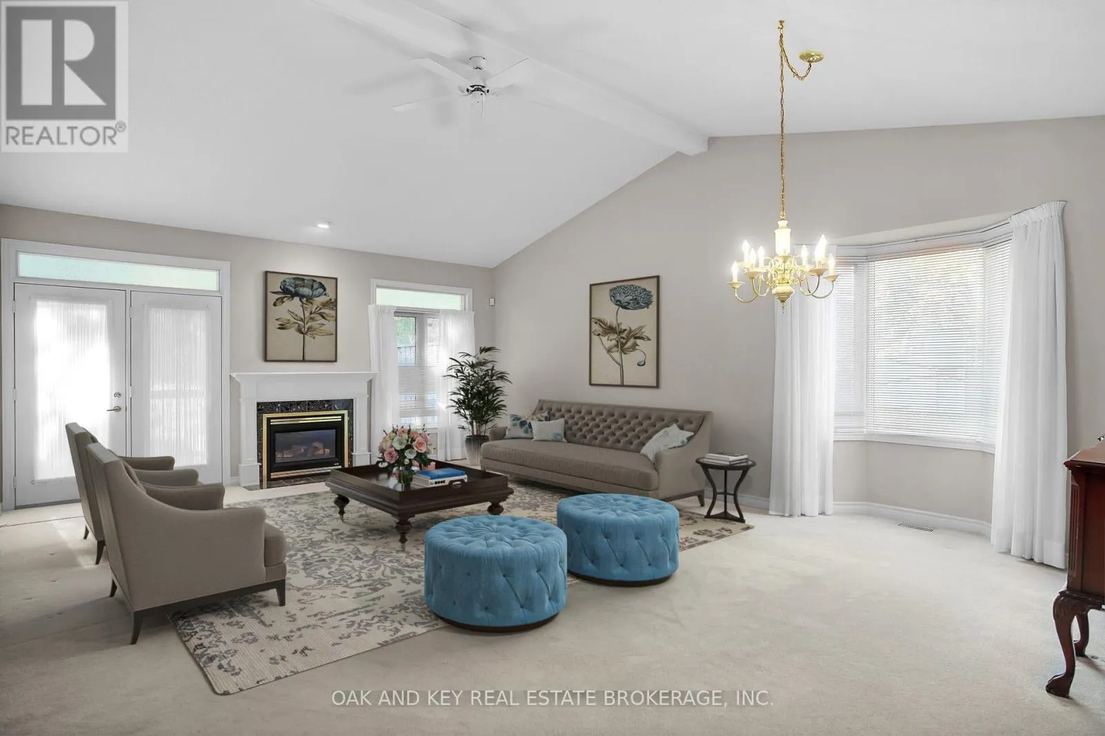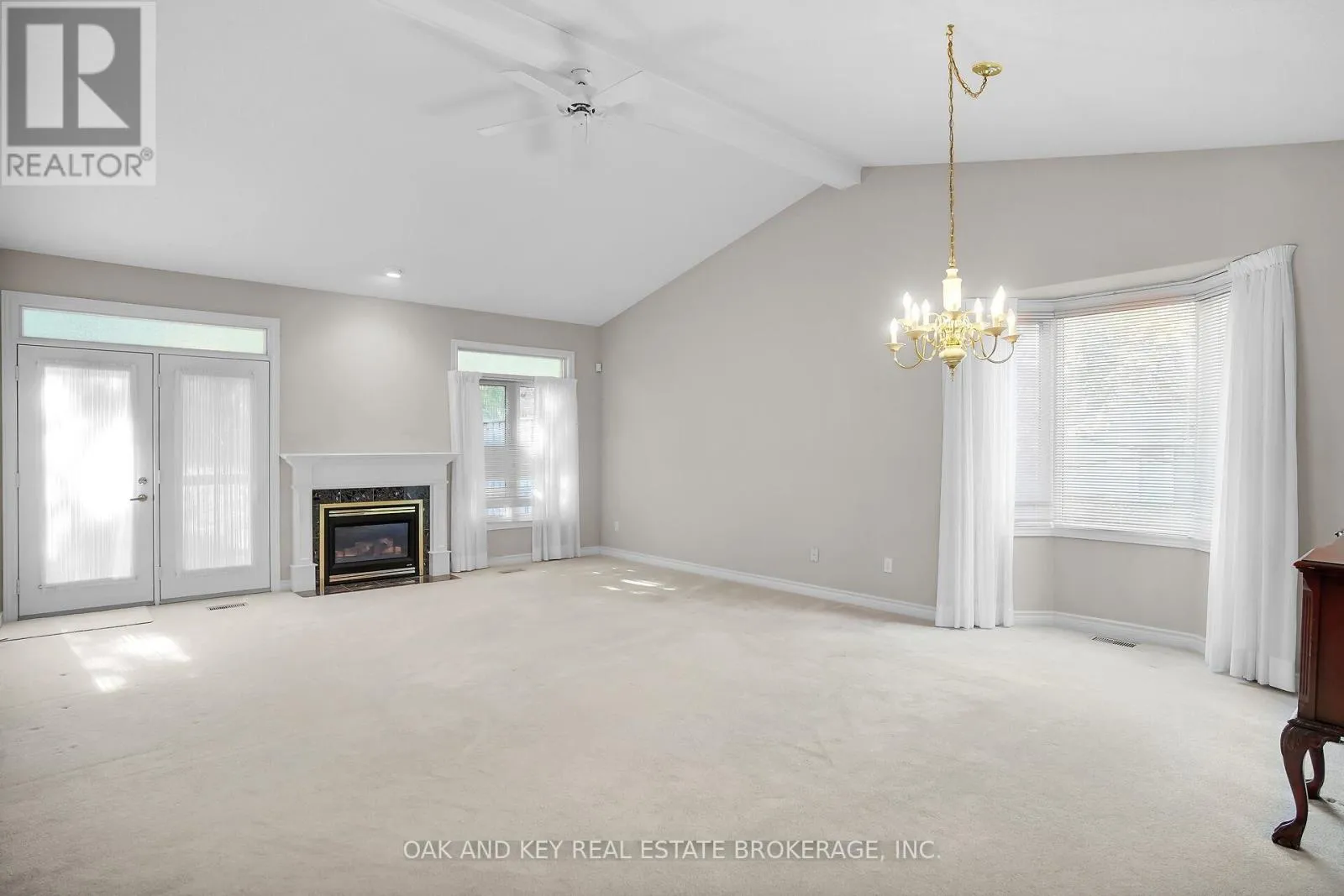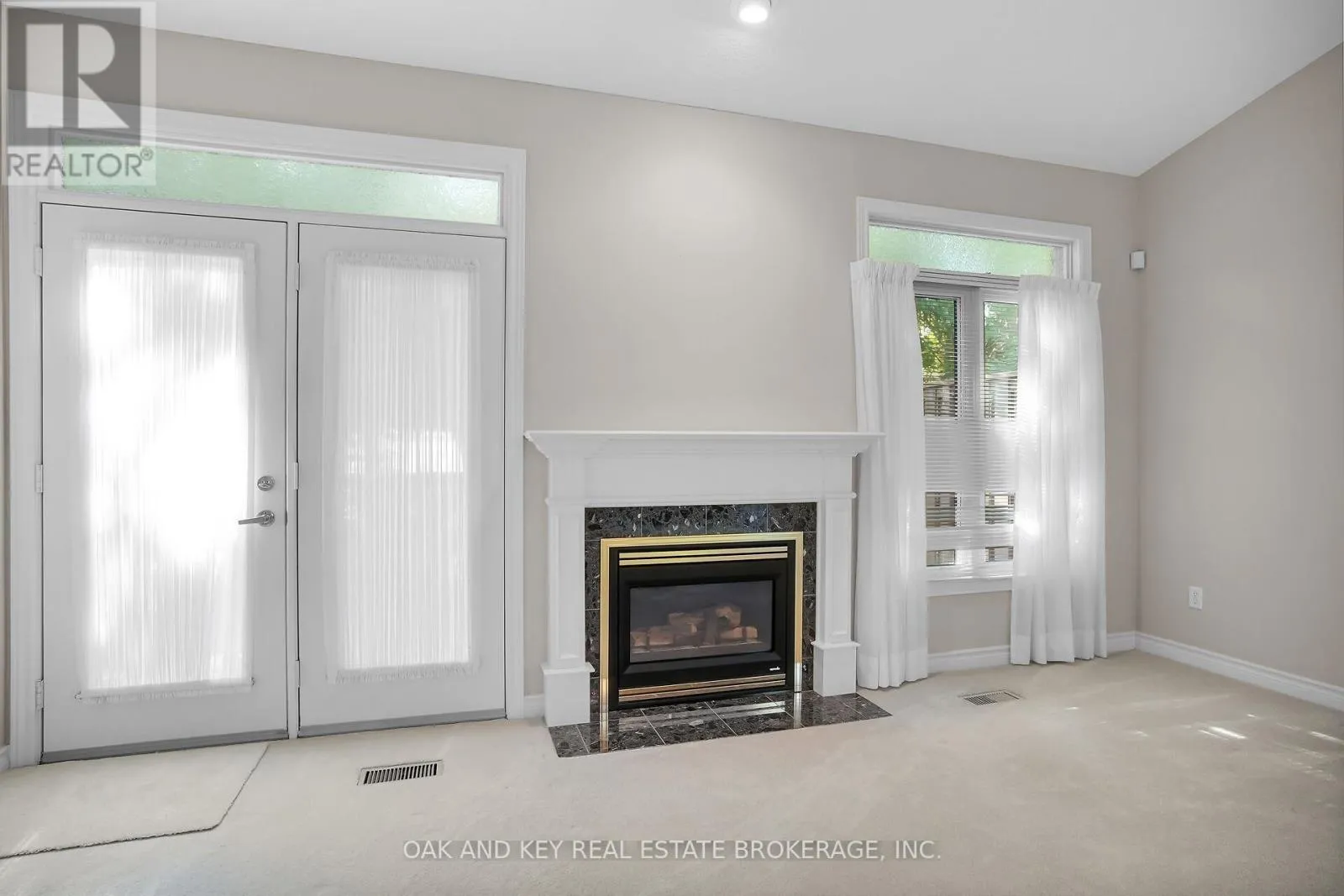 Quinella Drive to Quinella Place Welcome to 38 Quinella Place, a beautifully maintained bungalow townhouse tucked away on a quiet, tree-lined street in one of London's most desirable communities. Nestled in sought-after Rosecliffe Park, this 3-bedroom, 3-bath residence offers effortless one-floor living with a bright, open layout designed for comfort and convenience. The spacious living and dining area features vaulted ceilings, a cozy gas fireplace, and French doors that open to a private deck surrounded by mature trees, perfect for morning coffee or evening relaxation. The kitchen is filled with natural light and offers abundant cabinetry, counter space, and a clean, functional design. The primary suite includes a large walk-in closet and a beautifully updated ensuite with a walk-in shower. A second bedroom and convenient 2-piece bath complete the main floor, along with laundry and ample storage. The finished lower level adds tremendous value with a generous recreation area, third bedroom, full bath, and plenty of additional storage ideal for guests or extended family. Outside, enjoy a serene and low-maintenance setting with a freshly built deck and landscaped surroundings. The double-car garage offers ample parking and storage with easy access from the driveway. Located just minutes from Springbank Park, Byron Village, shopping, dining, hospitals, and walking trails, this home perfectly blends quiet suburban living with unmatched access to everyday amenities rare opportunity to enjoy one-floor living in a prestigious and peaceful neighbourhood. Come and see why 38 Quinella Place feels like home. (id:27476)