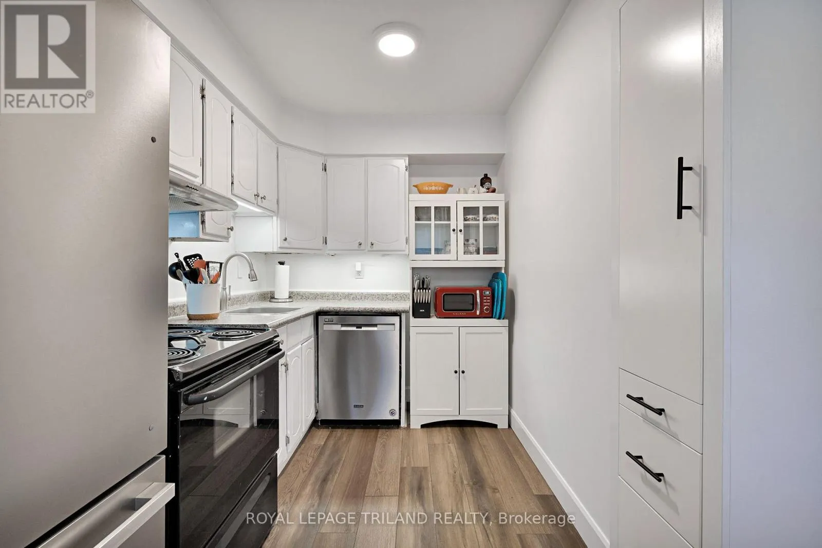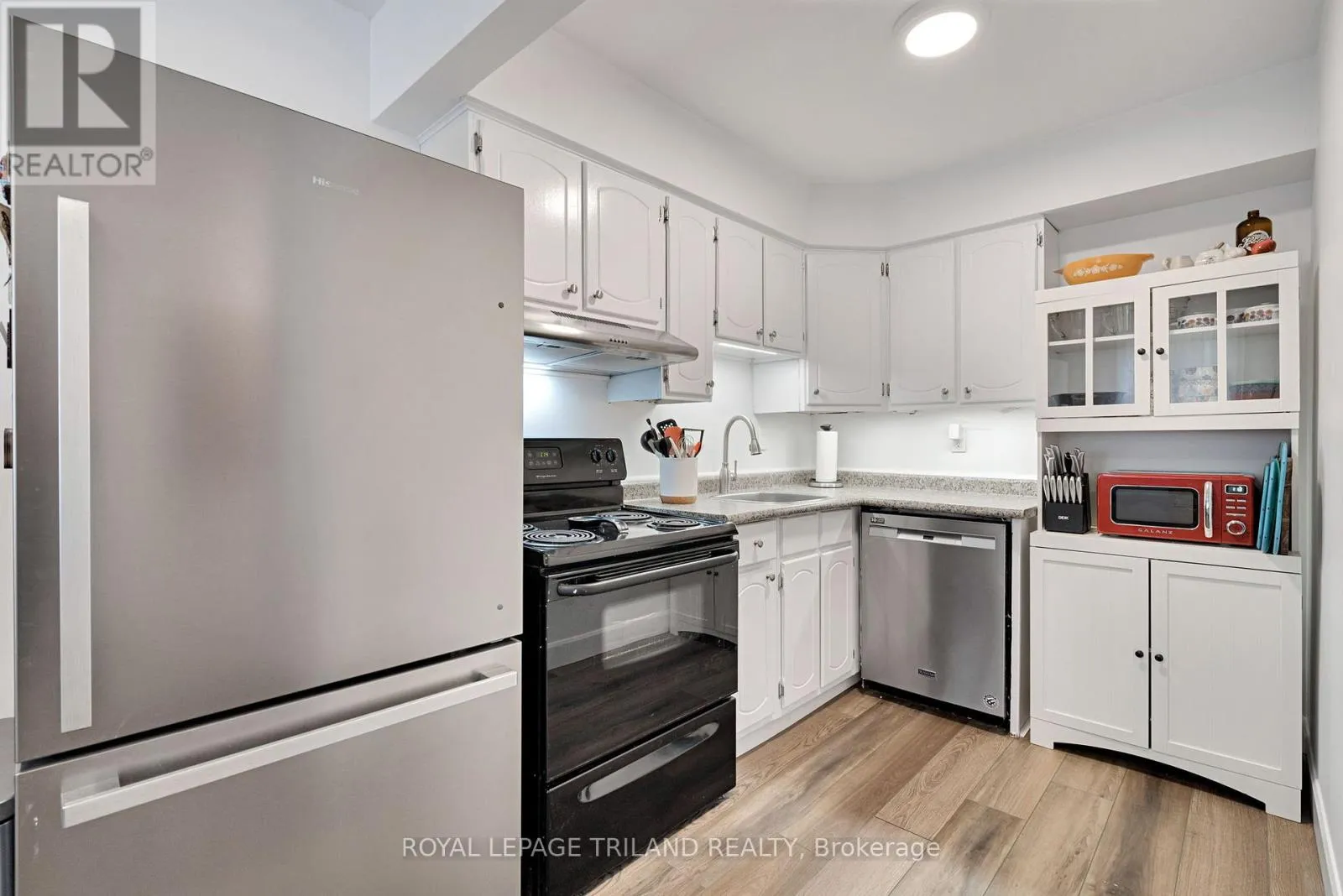 Cross Streets: Upper Queen St. ** Directions: Upper Queen St to Wilkins Street. Located close to hospitals and shopping. Property has been updated, finished basement with car park access from basement to the car, exclusive use only. Lots of guest parking surrounding the condos. Sliding door from the living room to the private fenced patio. There are two spacious bedrooms on the second floor with a 4 piece bath. The main floor has a 2 piece bath and down by the lower family room is an updated 4 piece bath. Unit has been freshly painted in neutral colour. The dishwasher is from 2022, yes a dishwasher! Underground parking at your basement door, freshly painted, open concept kitchen, lots of bathrooms and a bright living room. This place has it all for a first time buyer or someone who works at the hospitals. This will be a treat and it is well priced for a quick move in. Updated breaker panel 2025. Updated flooring throughout. Updated fencing throughout complex. (id:27476)