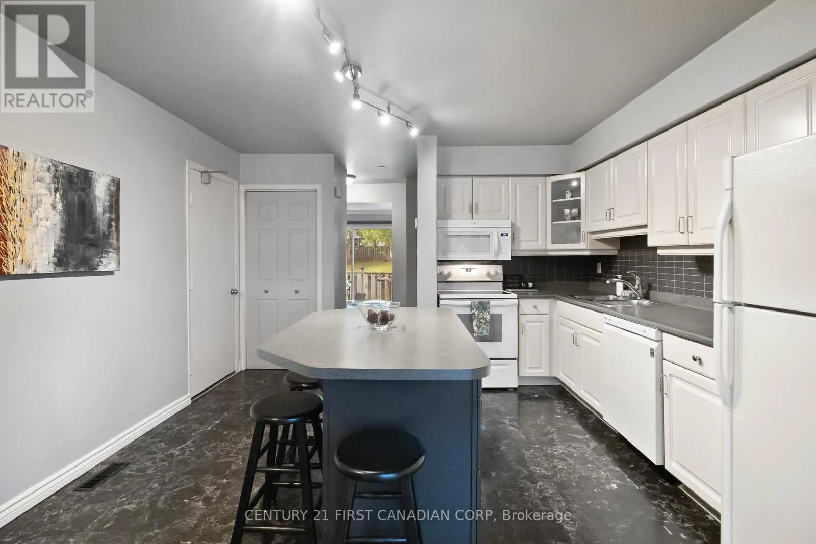 Cross Streets: Wharncliffe. ** Directions: Turn West off Wharncliffe onto Centre Street (at Craft Farmacy). Welcome to Hillside Heights! This desirable Condo Community is well managed, well maintained, has low maintenance fees and is family and pet friendly. Unit #85 is a west facing unit that backs onto a parklike open green space that is accessible from the private fenced patio. The main floor has inside access from the garage, a large eat in kitchen, dining room, living room and 2pc bathroom. Upstairs the large primary bedroom easily fits a king sized bed, a bureau/desk and has a walk in closet. The generous second bedroom also has a walk in closet and the third bedroom has a double closet. The second floor bathroom is a 4pc with new tub with modified access. (id:27476)