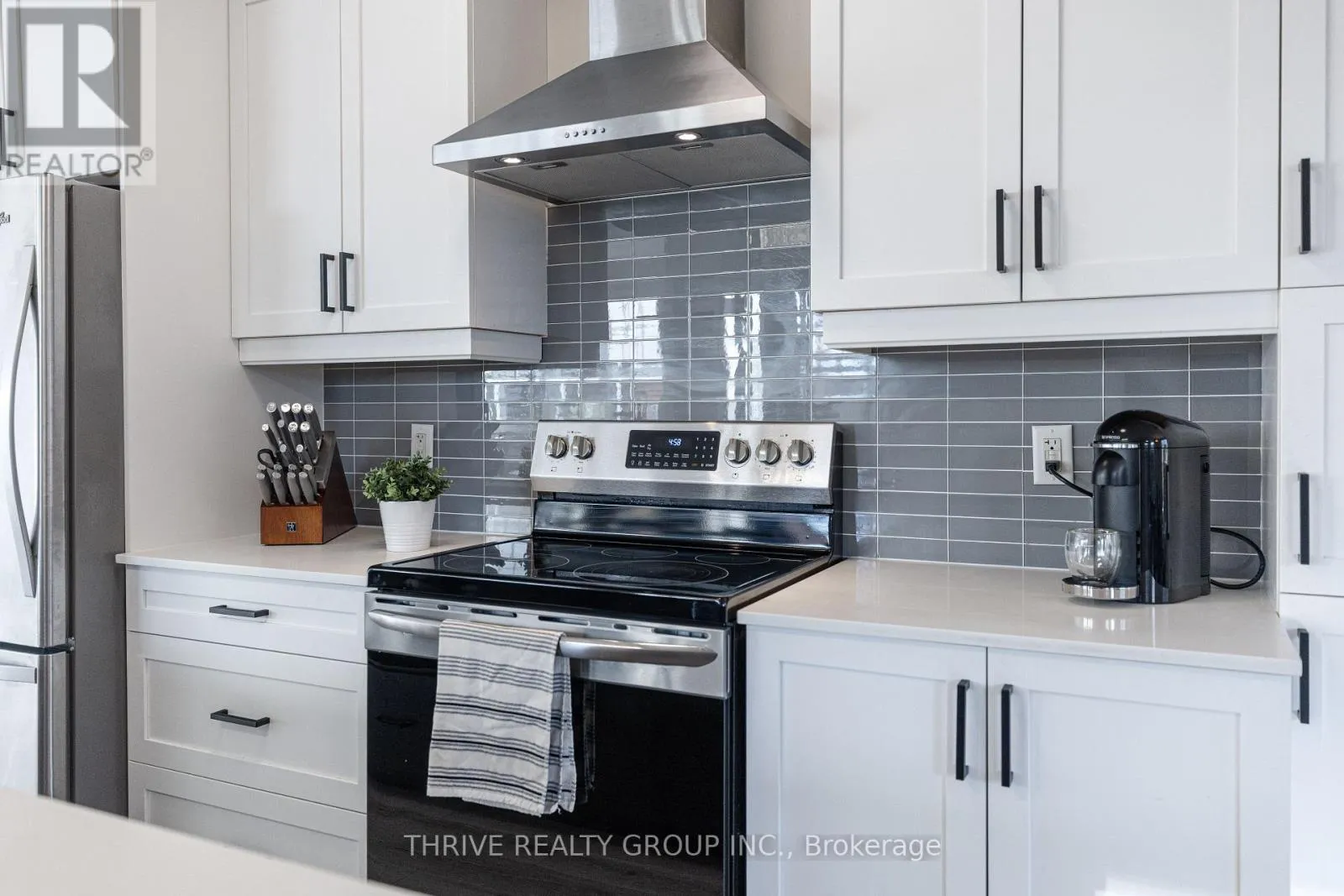 Cross Streets: Southdale and Wonderland. ** Directions: Head West on Southdale Road towards Wonderland Road, turn left onto Singleton. Gorgeous 3 bed, 2.5 bath end unit offering beautiful modern upgrades, this three storey urban townhouse is sure to impress! Bright open concept living area features a gourmet kitchen with oversized bar (quartz countertops) and stainless appliances, separate dining room, 2pc powder room and living room ready for entertaining with access to your private balcony. The upper level features three generously sized bedrooms including master suite with walk in closet and 3pc ensuite, plus convenient laundry. The ground floor features a large foyer, hall closet, utility room with plenty of storage plus access to the 2-car (tandem) garage with access to the backyard. Excellent location, walking distance to all amenities including shopping, restaurants, gym/YMCA, LCBO. Steps to public transit and easy access to HWY (401 & 402). (id:27476)