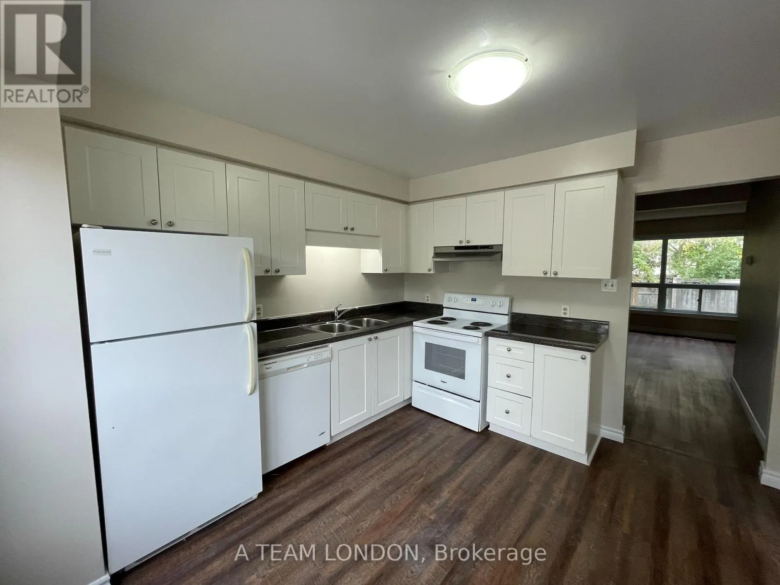 Cross Streets: Wharncliffe Road South. ** Directions: Wharncliffe Road South to Belmont Drive. This bright and inviting 3-bedroom, 1.5-bathroom townhome is ready for you to call home. Featuring a crisp white kitchen with new flooring, new lighting and hardware. The main floor offers a spacious layout with an eat-in kitchen, powder room, and combined living/dining area perfect for entertaining, enhanced by a fireplace. Upstairs, you'll find three comfortable bedrooms and a full bathroom. The finished lower level adds valuable living space, ideal for a home office, rec room, or gym, plus convenient laundry and storage areas. Gas heated unit. Enjoy your own private patio out back and dedicated parking right out front. Located in a desirable South London neighbourhood, close to schools, shopping, and transit. (id:27476)