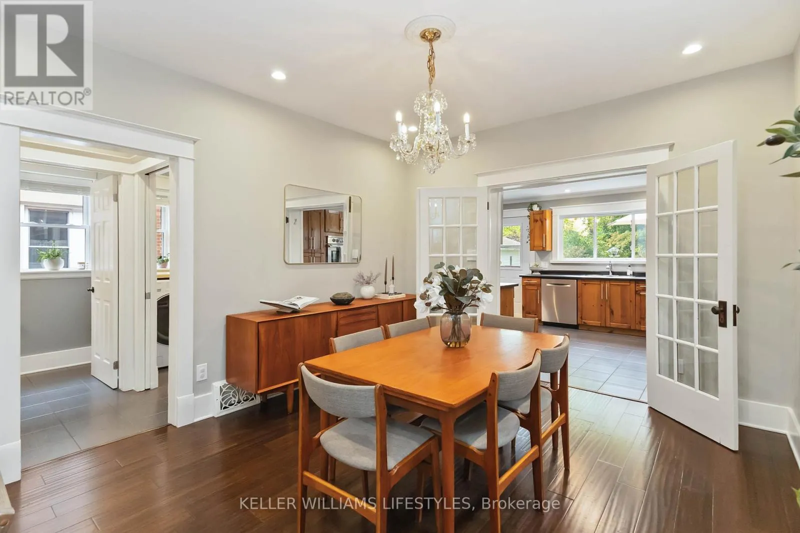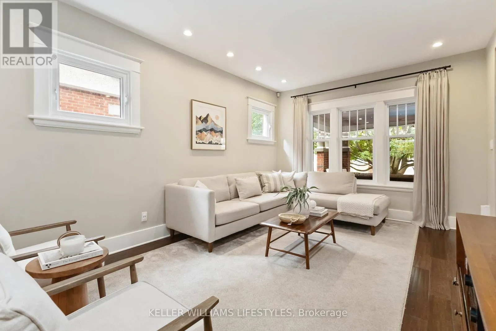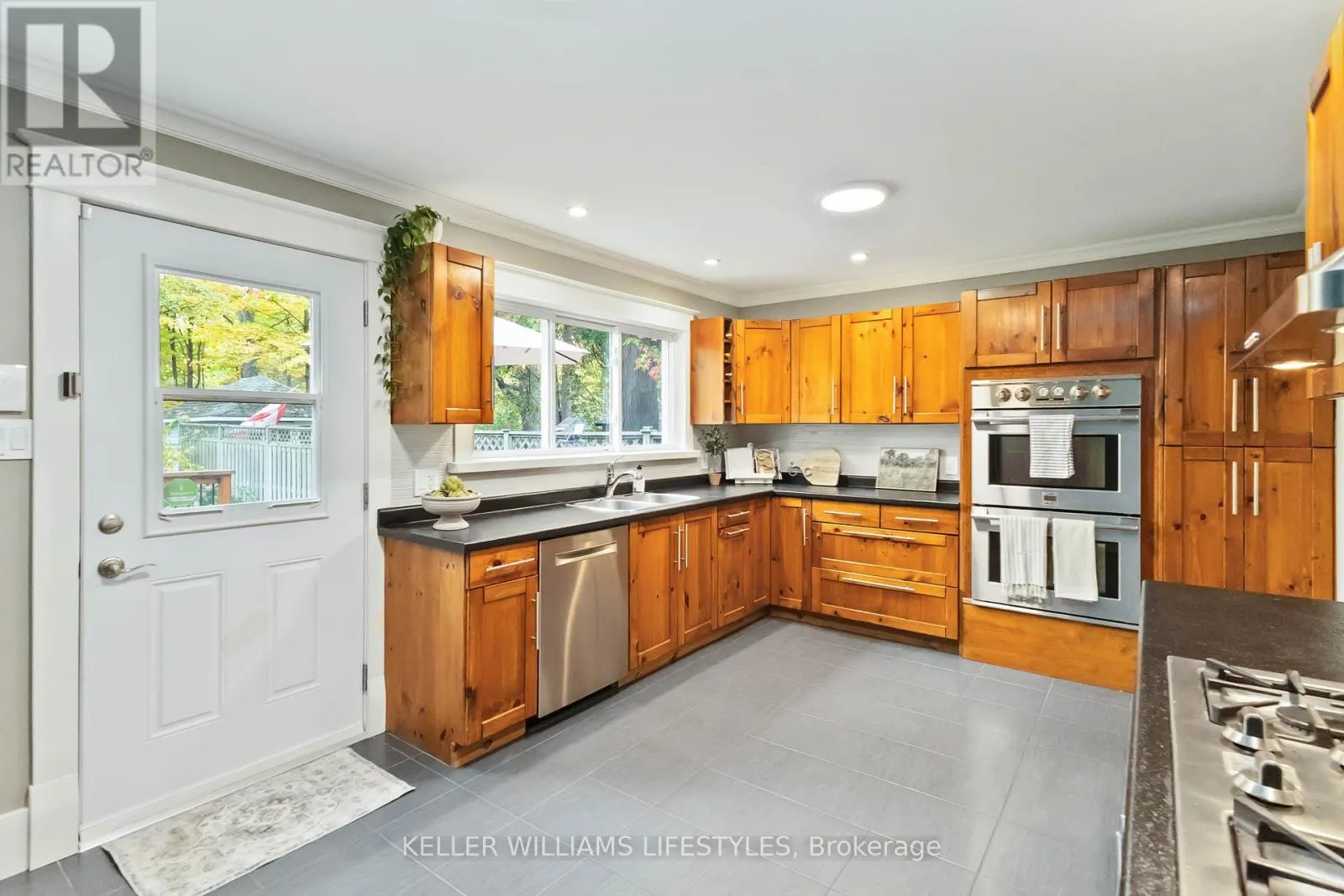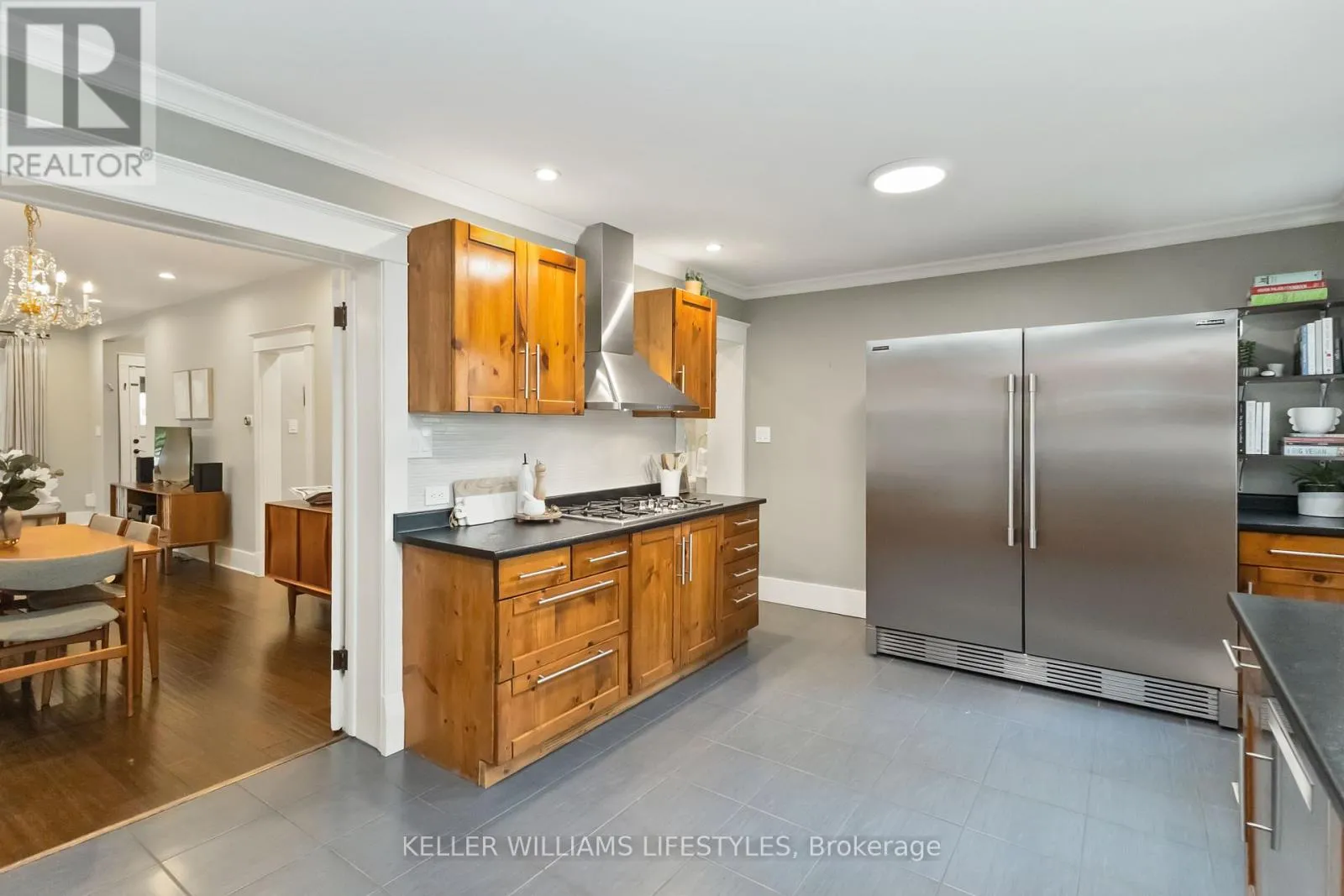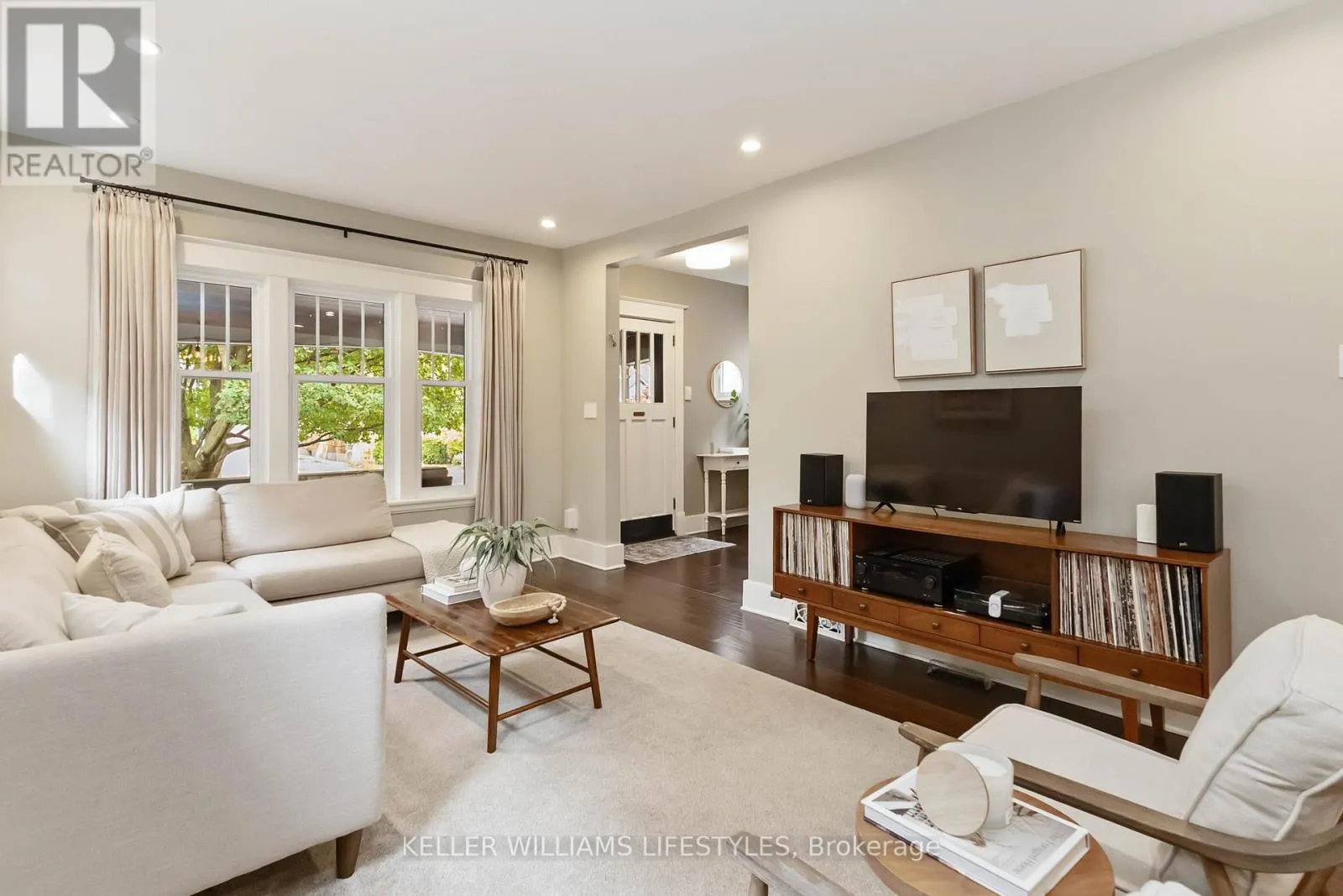 Cross Streets: Wharncliffe/Horton. ** Directions: Wharncliffe to Erie. Welcome to 17 Erie Avenue - A Hidden Gem in the Heart of London. Nestled on a quiet, tree-lined cul-de-sac just steps from Wortley Village and downtown, this lovingly updated century red-brick home blends timeless character with modern comfort. Step inside to discover bright, open-concept living and dining areas with warm bamboo flooring and abundant natural light. The spacious designer kitchen is a chef's dream, featuring double wall ovens, a gas range, a Frigidaire fridge/freezer, and generous storage. A convenient main-floor laundry and powder room complete this thoughtfully designed level. Upstairs, you'll find three inviting bedrooms and an updated four-piece bath with new hardwood floors that add classic charm. The fully finished basement offers exceptional versatility with three distinct spaces - including a cozy theatre room with projector, plus flexible areas perfect for a home office, gym, or creative studio - along with an additional four-piece bath.Enjoy morning coffee on the covered front porch or unwind on the private back deck overlooking lush green space that connects directly to The Coves hiking trails - your own nature retreat right in the city.What truly sets this home apart is its wonderful community. Erie Avenue is a close-knit, welcoming street where neighbours look out for one another, share in seasonal gatherings, and create a sense of warmth that's rare to find. Whether it's kids playing together, friendly chats on the porch, or spontaneous block get-togethers, life here feels both peaceful and connected - a place where you can truly put down roots.With quality updates throughout and an unbeatable location, 17 Erie Avenue perfectly balances historic charm, modern amenities, and a strong sense of community. Don't miss your chance to make this exceptional home your own. (id:27476)