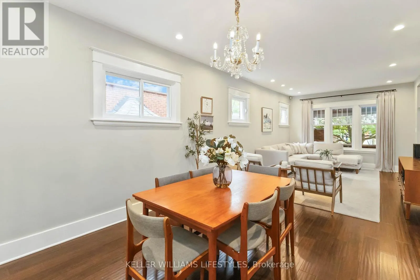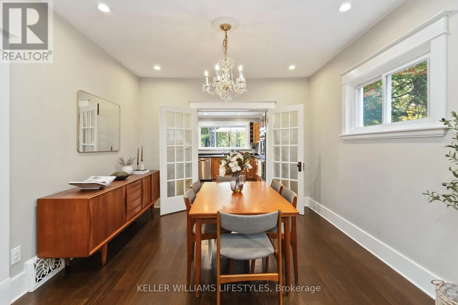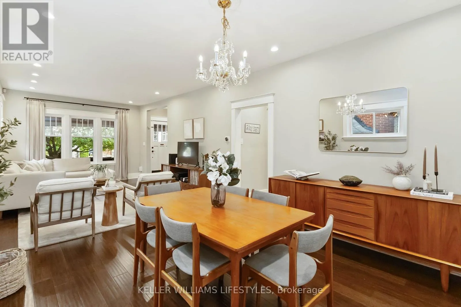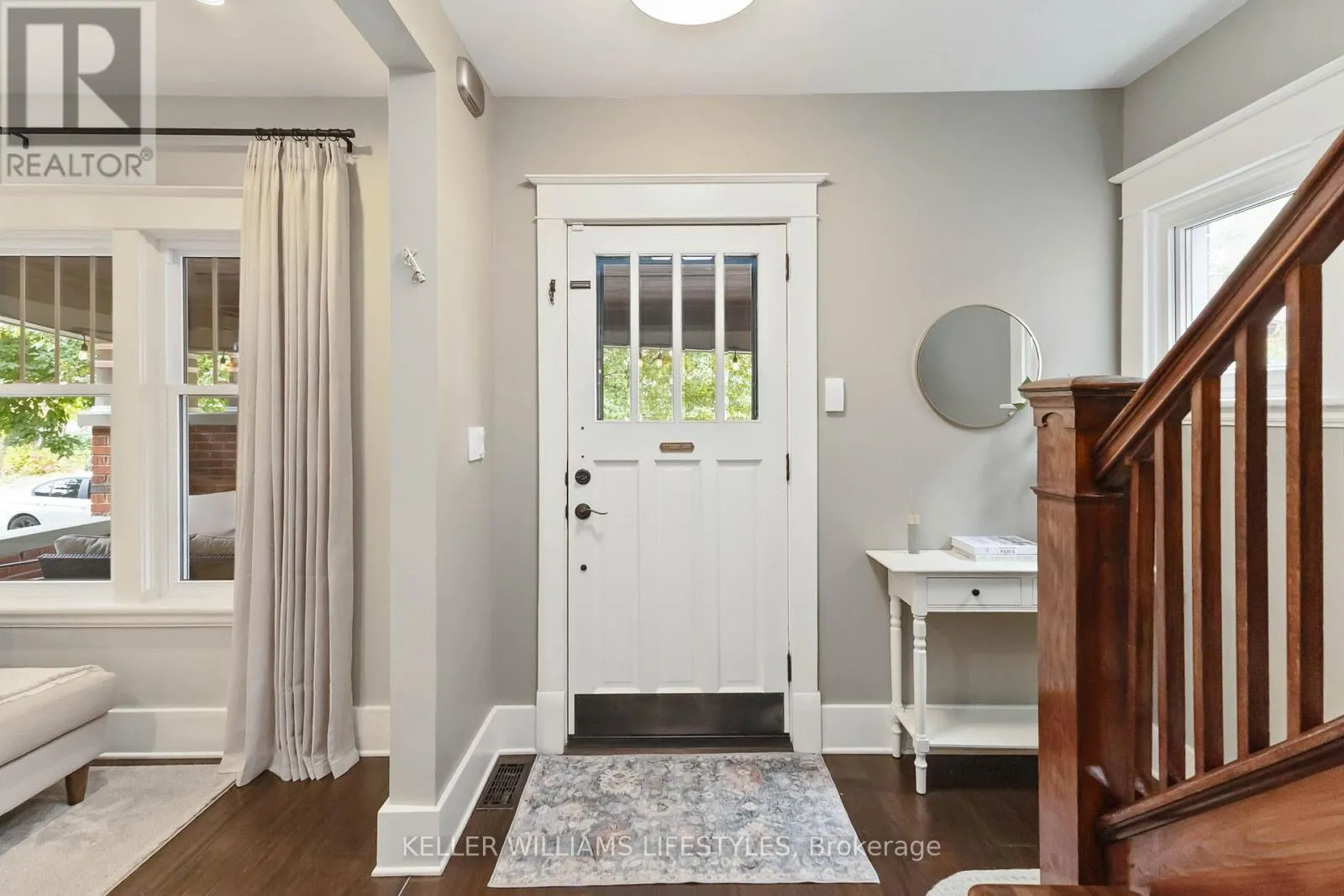 Cross Streets: Wharncliffe/Horton. ** Directions: Wharncliffe to Erie. Welcome to 17 Erie Avenue - A Hidden Gem in the Heart of London. Nestled on a quiet, tree-lined cul-de-sac just steps from Wortley Village and downtown, this lovingly updated century red-brick home blends timeless character with modern comfort. Step inside to discover bright, open-concept living and dining areas with warm bamboo flooring and abundant natural light. The spacious designer kitchen is a chef's dream, featuring double wall ovens, a gas range, a Frigidaire fridge/freezer, and generous storage. A convenient main-floor laundry and powder room complete this thoughtfully designed level. Upstairs, you'll find three inviting bedrooms and an updated four-piece bath with new hardwood floors that add classic charm. The fully finished basement offers exceptional versatility with three distinct spaces - including a cozy theatre room with projector, plus flexible areas perfect for a home office, gym, or creative studio - along with an additional four-piece bath.Enjoy morning coffee on the covered front porch or unwind on the private back deck overlooking lush green space that connects directly to The Coves hiking trails - your own nature retreat right in the city.What truly sets this home apart is its wonderful community. Erie Avenue is a close-knit, welcoming street where neighbours look out for one another, share in seasonal gatherings, and create a sense of warmth that's rare to find. Whether it's kids playing together, friendly chats on the porch, or spontaneous block get-togethers, life here feels both peaceful and connected - a place where you can truly put down roots.With quality updates throughout and an unbeatable location, 17 Erie Avenue perfectly balances historic charm, modern amenities, and a strong sense of community. Don't miss your chance to make this exceptional home your own. (id:27476)