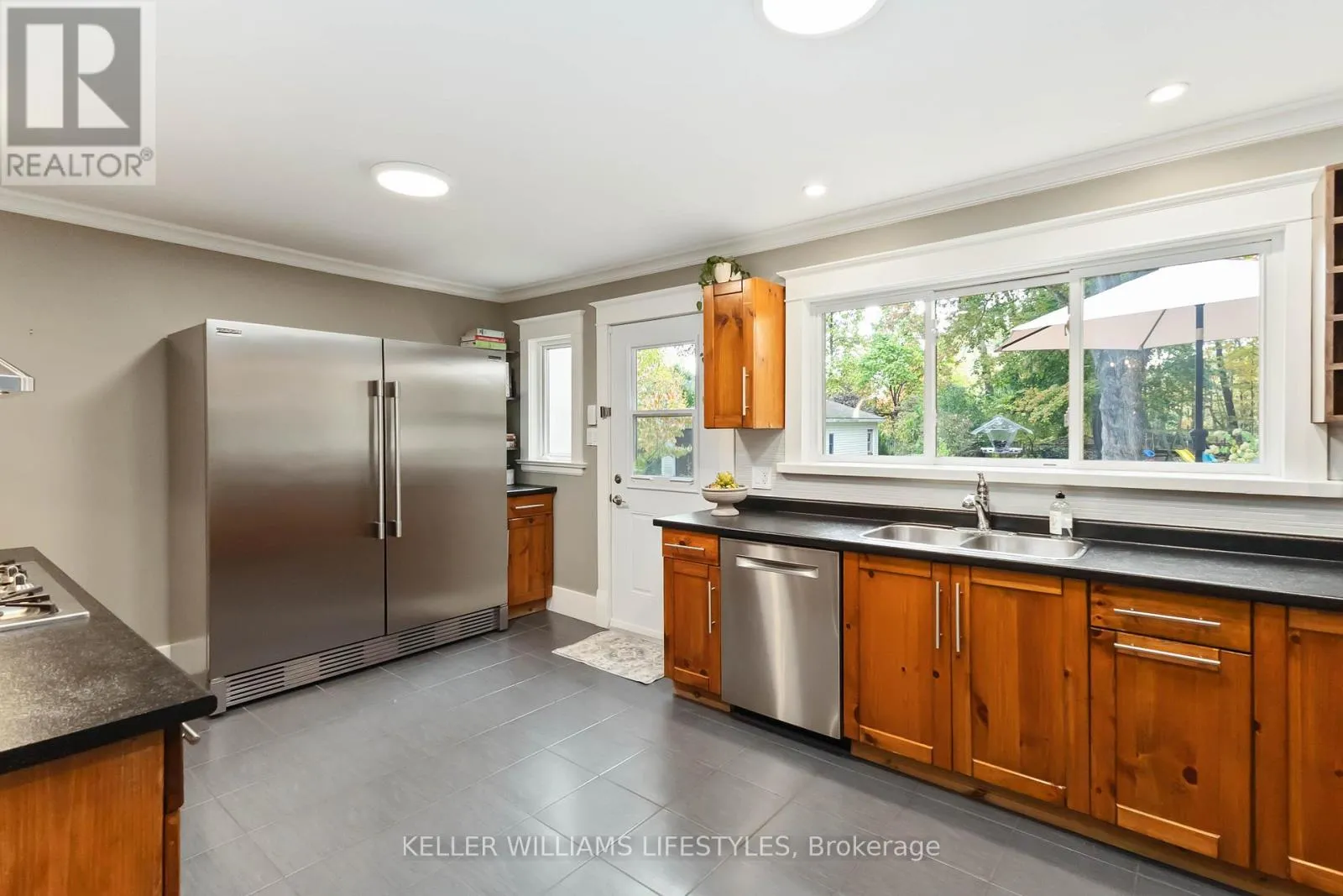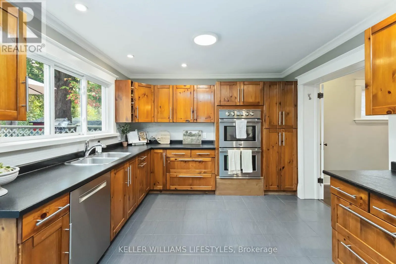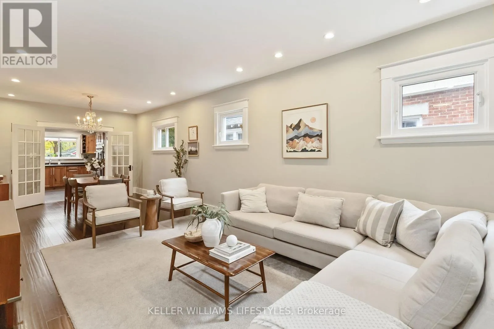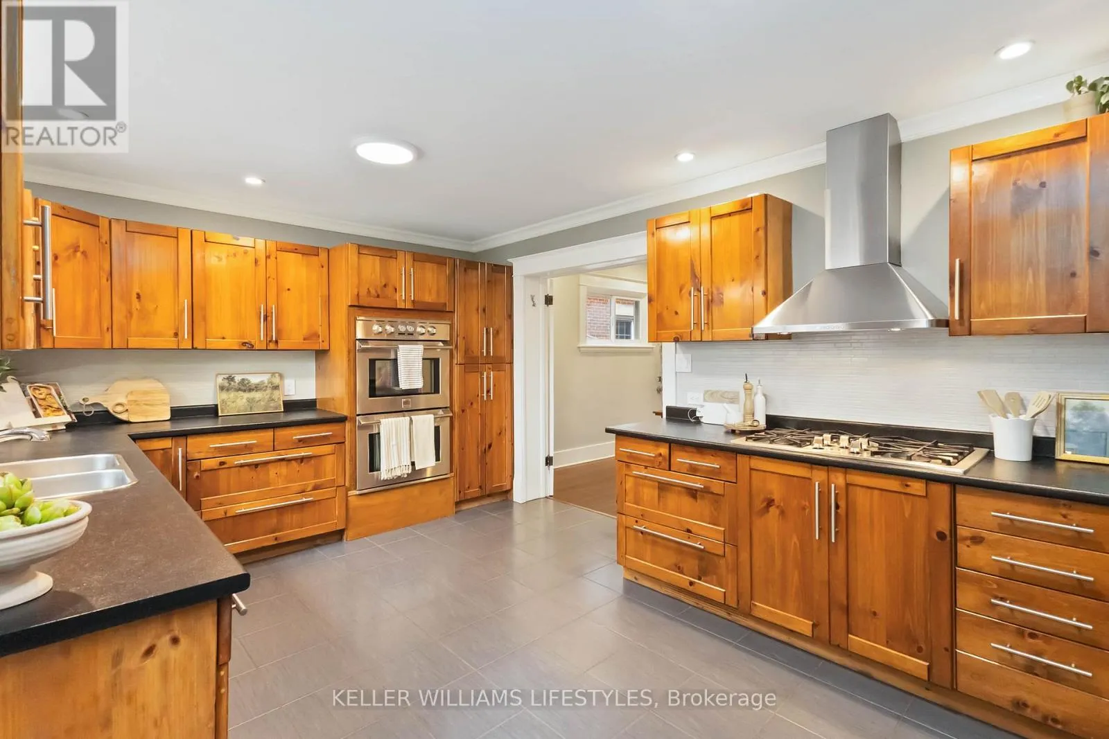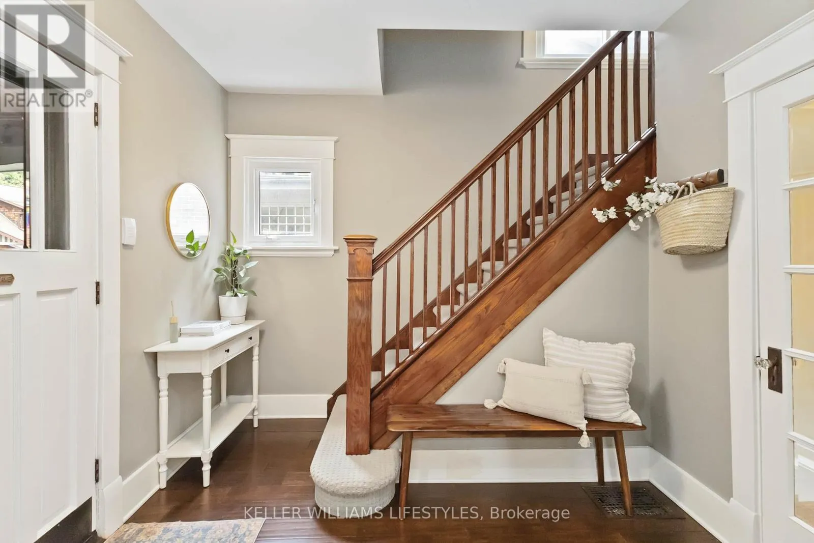 Cross Streets: Wharncliffe/Horton. ** Directions: Wharncliffe to Erie. Welcome to 17 Erie Avenue - A Hidden Gem in the Heart of London. Nestled on a quiet, tree-lined cul-de-sac just steps from Wortley Village and downtown, this lovingly updated century red-brick home blends timeless character with modern comfort. Step inside to discover bright, open-concept living and dining areas with warm bamboo flooring and abundant natural light. The spacious designer kitchen is a chef's dream, featuring double wall ovens, a gas range, a Frigidaire fridge/freezer, and generous storage. A convenient main-floor laundry and powder room complete this thoughtfully designed level. Upstairs, you'll find three inviting bedrooms and an updated four-piece bath with new hardwood floors that add classic charm. The fully finished basement offers exceptional versatility with three distinct spaces - including a cozy theatre room with projector, plus flexible areas perfect for a home office, gym, or creative studio - along with an additional four-piece bath.Enjoy morning coffee on the covered front porch or unwind on the private back deck overlooking lush green space that connects directly to The Coves hiking trails - your own nature retreat right in the city.What truly sets this home apart is its wonderful community. Erie Avenue is a close-knit, welcoming street where neighbours look out for one another, share in seasonal gatherings, and create a sense of warmth that's rare to find. Whether it's kids playing together, friendly chats on the porch, or spontaneous block get-togethers, life here feels both peaceful and connected - a place where you can truly put down roots.With quality updates throughout and an unbeatable location, 17 Erie Avenue perfectly balances historic charm, modern amenities, and a strong sense of community. Don't miss your chance to make this exceptional home your own. (id:27476)