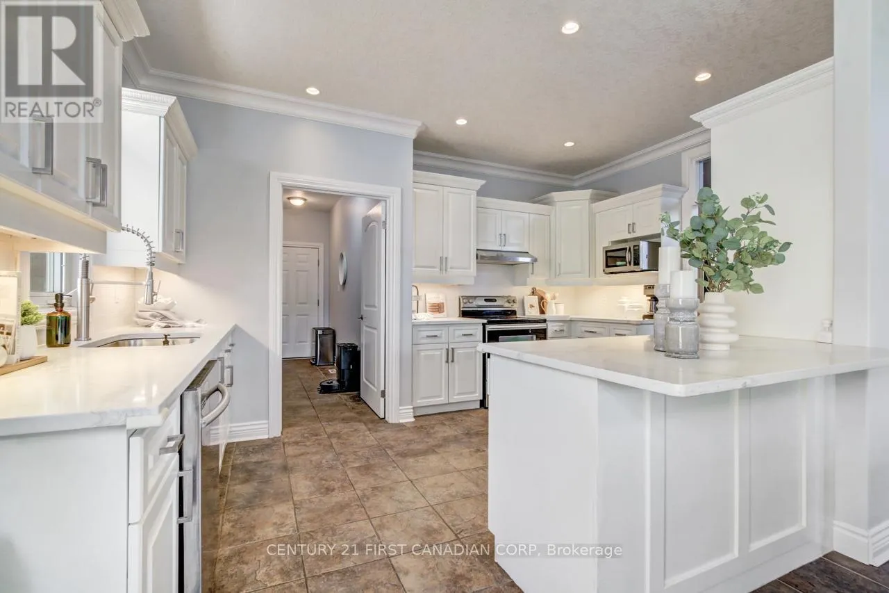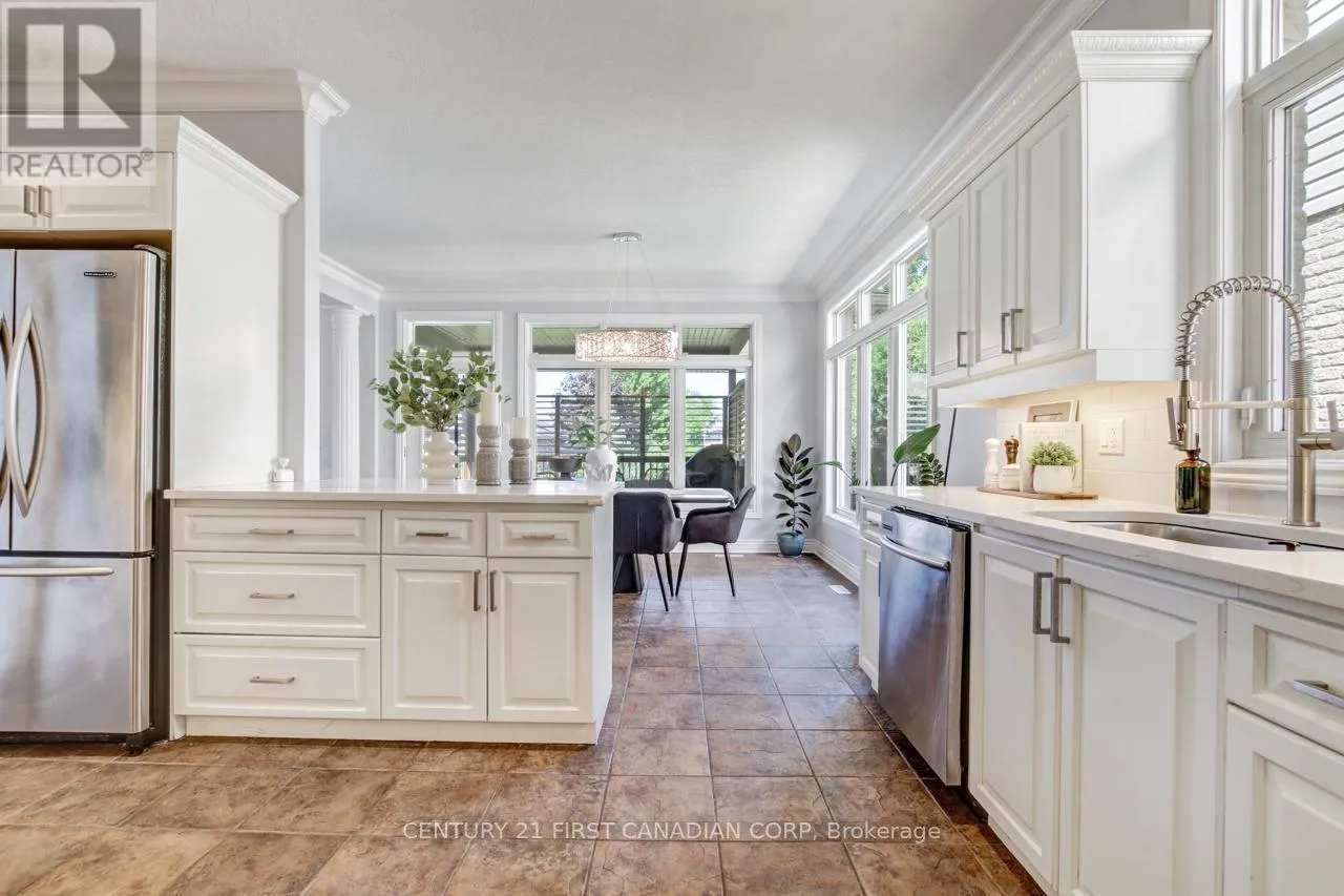 Cross Streets: Shore Road. ** Directions: Off Shore Road. One-of-a-Kind Custom Brick Home Spacious, Stylish, and Full of Character! Amazing home in the Riverbend community off of Shore Road, walking distance to West Five, and great schools for your kids. This exceptional all-brick home offers over 3,000 sq ft of beautifully finished living space designed for comfort, function, and family gatherings. The main level features gleaming hardwood and ceramic flooring, an elegant dining room, an updated kitchen with quartz countertops, and a sun-filled breakfast area with custom blinds that opens onto a stunning custom-built covered deck with louvered privacy shades, built-in gas line, and additional lower deck perfect for entertaining. Vaulted ceilings enhance the grandeur of the great room and the front bedroom/den. The upper-level loft is a private retreat, featuring a spacious primary bedroom with a luxury ensuite and a secondary bedroom with its own private bath. The main floor also includes two additional bedrooms and a full bath ideal for multigenerational living. The fully finished lower level offers incredible versatility with a second kitchen, generous living space, and a separate entrance ideal for an in-law suite or extended family. Custom trim work and thoughtful details throughout elevate this home well above the ordinary, all priced below replacement value. (id:27476)