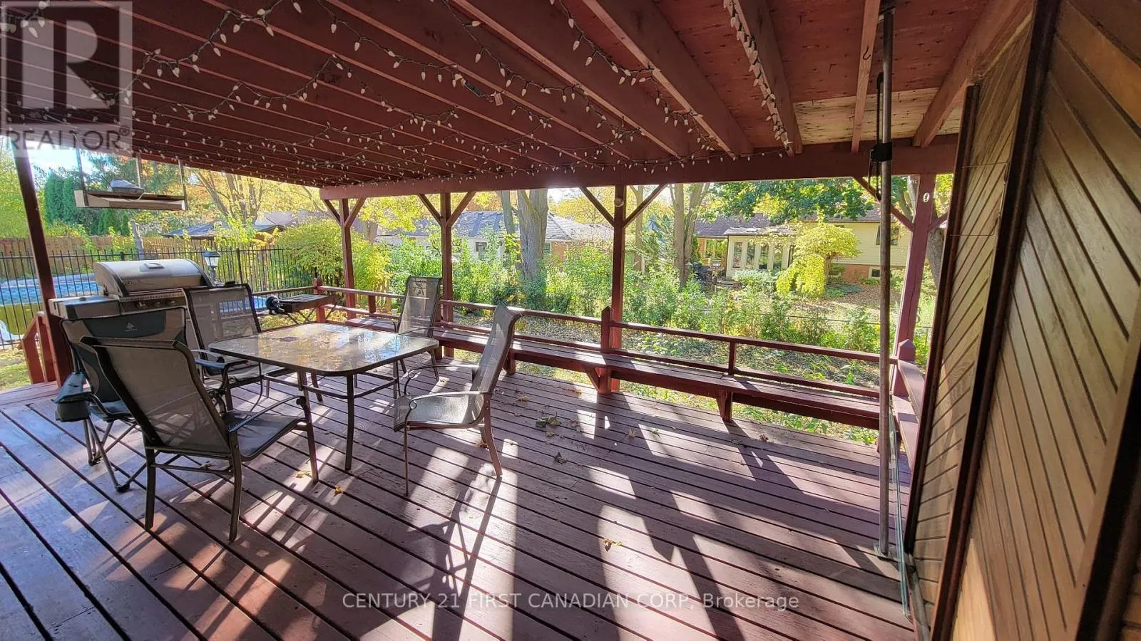 NOTRE DAME DR & NOTRE DAME CRES. Tucked away on a quiet cul-de-sac in the heart of Westmount, this charming 4-bedroom, 2-bathtwo-storey home offers both space and potential. Set on a generous lot, the backyard is a private retreat featuring a large covered deck and a durable steel roof that extends from the home - perfect for outdoor gatherings, rain or shine. Inside, you'll find a functional layout ready for your personal touch, with ample room for a growing family. The double car garage and concrete driveway add convenience, while thoughtfully done upgrades in the house add to the aesthetics. Located steps from schools, parks, and public transit, and just minutes to Westmount Shopping Centre, major highways, and downtown London, this home truly blends comfort, convenience, and opportunity. (id:27476)