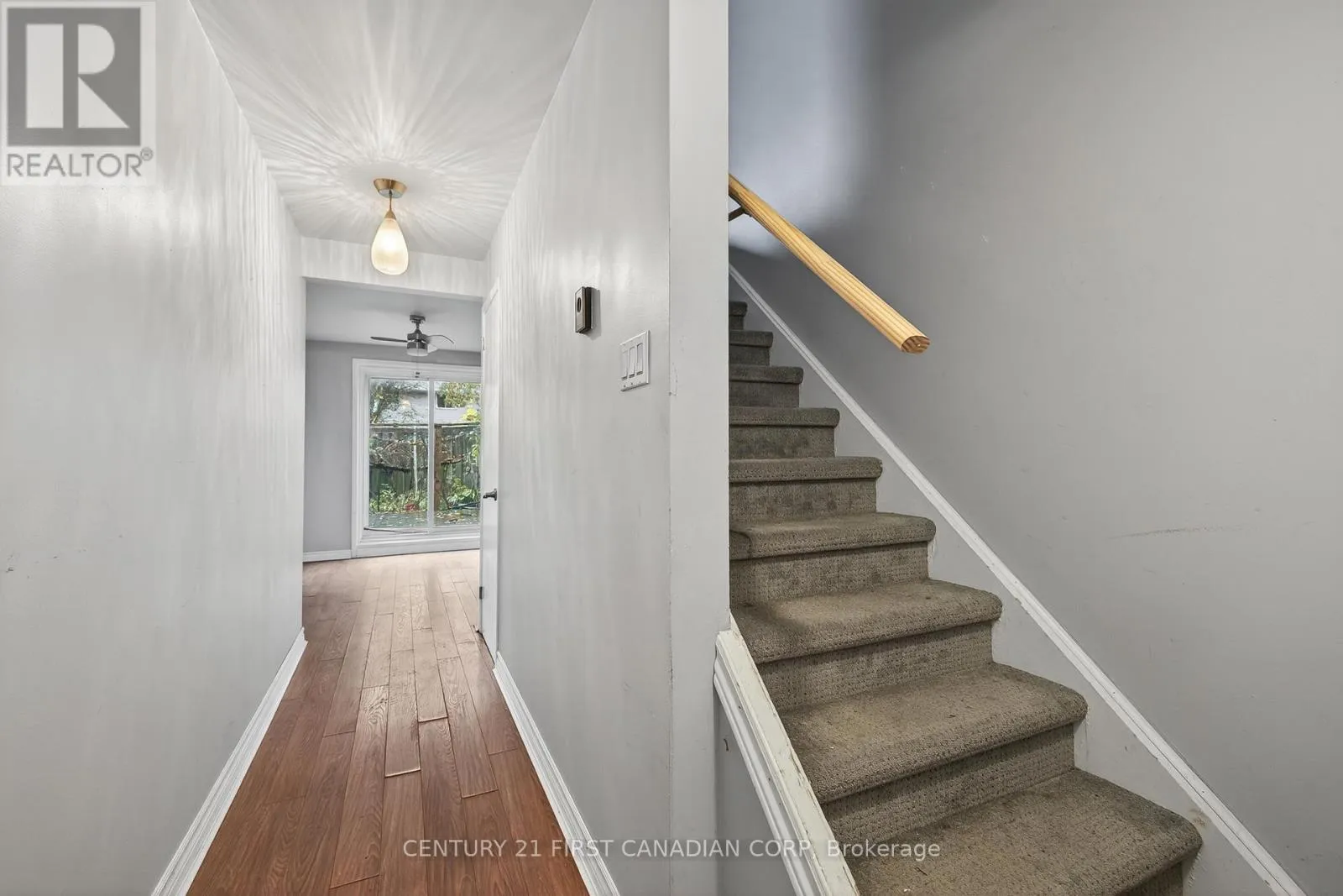 Cross Streets: Upper Queen Street & Wilkins Street. ** Directions: From Commissioners Road East, head south on Upper Queen Street, then turn onto Wilkins Street. The property is located at 636 Wilkins. Well-located 3-level townhome in the quiet and welcoming Lockwood Park neighbourhood! The main floor offers laundry/utility space with a walkout to a private patio and yard backing onto green space. The second level features open-concept living, dining, and kitchen with a convenient powder room. Upstairs, enjoy 3 bedrooms and a full 4-piece bathroom. Single-car garage and visitor parking right out front. Close to parks, schools, transit, and shopping, everything you need is within easy reach! (id:27476)