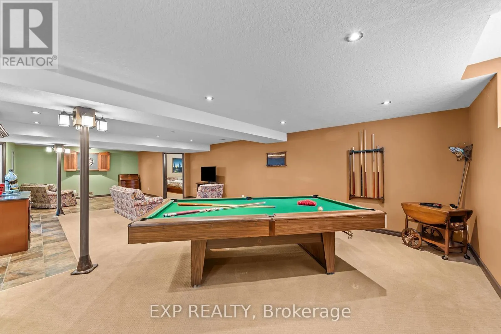 Sandy Somerville Dr/Jack Nash Dr This home stands out for more than its beauty - it carries one of the lowest land-lease fees in RiverBend ($430.97/month), offering unmatched value in London's most exclusive 50+ gated golf community. Set around an 18-hole championship course and 160 acres of protected forest along the Thames River, RiverBend blends resort-style amenities with small-town warmth. Residents enjoy a 28,000 sq. ft. clubhouse featuring a restaurant, lounge, verandah overlooking the greens, indoor heated pool, fitness centre, and over 20 active social clubs. Add 24-hour concierge service and forested walking trails, and you get a lifestyle that's social, secure, and maintenance-free. This Westchester model bungalow offers over 3,000 sq. ft. of finished living space, surrounded by mature trees and lush gardens. The covered screened in back porch spans the rear of the home, overlooking a patio feeling like a private, park-like retreat. Curb appeal shines with manicured landscaping, a double garage, wide drive with plenty of parking, and dedicated golf-cart bay with interior access. Inside, the Great Room features vaulted ceilings, hardwood floors, and a gas fireplace. The upgraded kitchen includes granite counters, a large island, pantry, and breakfast nook. The primary suite showcases garden views, a walk-in closet, and a spa-style ensuite. A second bedroom has its own ensuite, and a third makes a perfect office or den. The finished lower level adds a large recreation area with wet bar, 3rd/4th bedroom, full bath, and workshop. Updates include an updated roof, fresh paint, select new windows, central vac, and owned 60-gallon water heater. Maintenance fee ($633.31/month) covers concierge, lawn care, snow removal, and full clubhouse privileges. 2137 Jack Nash Drive is more than a home - it's right-sized living in London's most desirable adult community. The absence of sidewalks at the end of the laneway creates a retreat-like atmosphere. (id:27476)