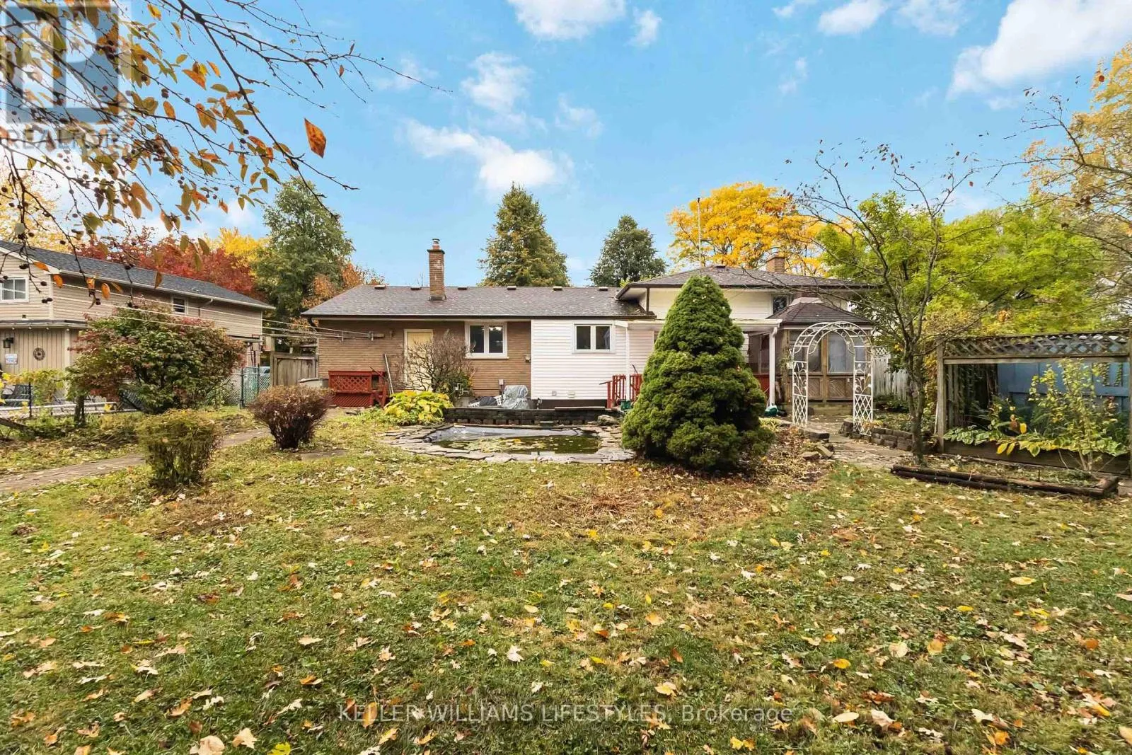 Cross Streets: Notre Dame Drive & Norton Avenue. ** Directions: Head East on Southdale Rd and Turn on Notre Dame Dr head North - Turn onto Norton Ave & turn onto Norton Crescent. Welcome to 935 Norton Crescent in the desirable Norton Estates neighbourhood of southwest London! This original-owner 4-level side-split sits on a rare pie-shaped lot over a quarter acre - true acreage in the city. Offering about 1850 sq. ft. of finished living space, this solid and well-cared-for home provides comfort, functionality, and room to grow. The bright main level features a spacious living room and dining area flowing into an eat-in kitchen that overlooks the yard. Upstairs you'll find three generous bedrooms and a 3-piece bath with a walk-in shower. The lower level adds a large family room, an extra bedroom or office, and a convenient half bath, with additional laundry and storage space below.Step outside to your private backyard retreat featuring a concrete in-ground pool with a 2021 safety cover, landscaped gardens, a peaceful pond, two garden sheds, and a covered front porch. The attached single garage and long driveway provide parking for up to four vehicles. Set on a quiet crescent lined with mature trees, this property combines the tranquility of a suburban retreat with the convenience of city living. Enjoy nearby St. Lawrence Park and Belmont Park, or walk to respected schools including Sir Isaac Brock Public School, Kensal Park French Immersion, Lester B. Pearson School for the Arts, and Saunders Secondary School. Homes like this are rarely available - an original-owner residence on a rare large city lot in a sought-after mature neighbourhood close to shopping, parks, and commuter routes. Discover why Norton Estates remains one of London's most loved communities and make this special property your own! (id:27476)