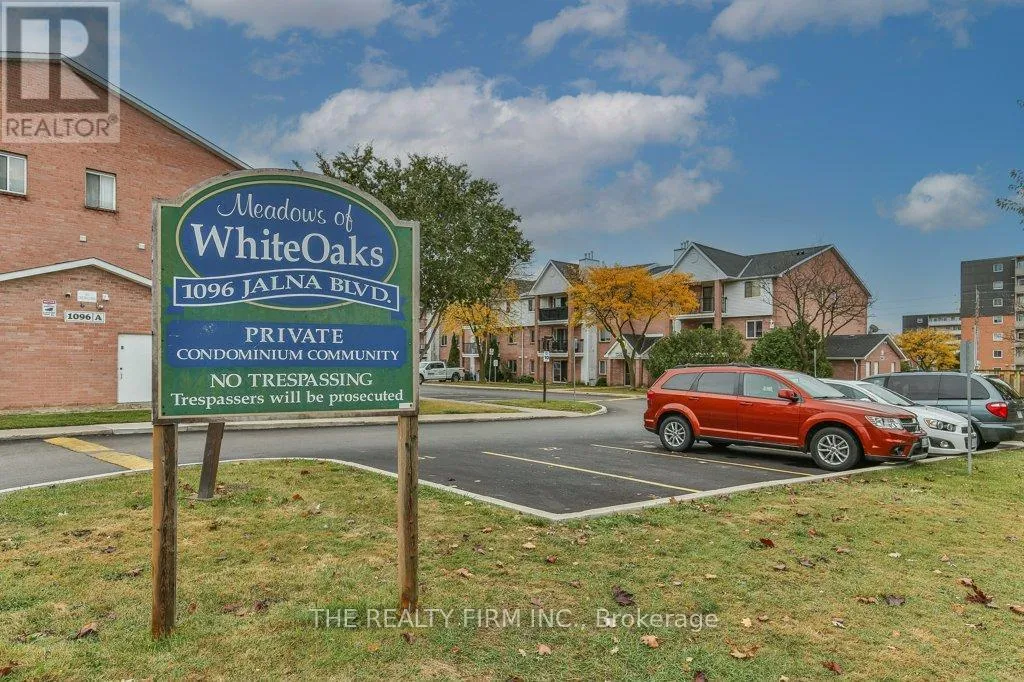Cross Streets: BRADLEY AVE. ** Directions: NORTH ON WELLINGTON RD FROM HIGHWAY, LEFT ON BRADLEY AVE, RIGHT ON JALNA, RIGHT INTO COMPLEX. BUILDING \"1096 A\", SECOND FLOOR, UNIT 16. Welcome to 1096 Jalna Blvd, Unit 16 - freshly updated and move-in ready! This bright and inviting second-floor, 2-bedroom condo has been beautifully refreshed from top to bottom. Enjoy convenient front-row parking, a private balcony, in-suite laundry, a welcoming foyer, and a large in-unit storage room.The well-maintained complex offers ample visitor parking and a sparkling outdoor pool for residents to enjoy. Inside, Unit 16 features a brand-new, bright white kitchen with excellent sight lines to the dining area, which flows seamlessly into the cozy living room - complete with a gas fireplace and direct access to a private balcony overlooking a peaceful path, mature trees, and detached residential properties, rather than other units or the parking lot - the perfect spot to relax and unwind.Recent updates (all completed in 2025) include new vinyl plank flooring in the kitchen and bath, new carpet in both bedrooms (per condo regulations), a new bathroom vanity, fresh paint throughout, and updated light fixtures - creating a clean, modern feel throughout. All appliances are included, so you can move right in and start enjoying your new home.Located directly across from White Oaks Mall, with quick access to Highway 401 and a wide range of shopping, dining, and amenities, this condo offers incredible convenience in a desirable south-end location. A perfect choice for first-time buyers, downsizers, or investors seeking a turnkey property. Water tank is approximately 1 year old. (id:27476)