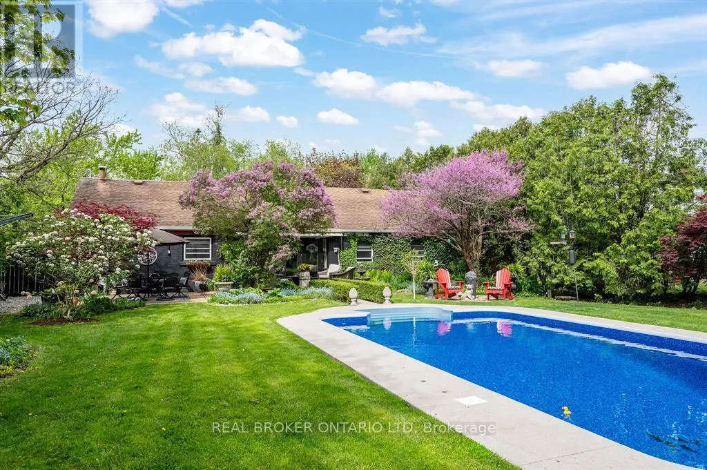 Cross Streets: Commissioners Road East. ** Directions: off Commissioners Road East. Welcome to your own private oasis in Old South - where cottage charm meets city convenience! Tucked well back from the road on a massive, park-like lot that backs onto a picturesque ravine, this property offers rare peace and privacy just minutes from Wortley Village, LHSC Victoria Hospital, and Highland Golf Course, with quick access to the 401. Step outside and fall in love with the stunning backyard retreat, featuring a sparkling pool with a new liner and heater, surrounded by lush landscaping and tranquil views. It's the perfect setting for morning coffee, weekend barbecues, or quiet evenings under the stars.Inside, this charming one-floor home delivers easy living for first-time buyers, downsizers, or anyone craving simplicity without compromise. Thoughtfully updated throughout - every space has been designed for comfort and style. Bonus: the oversized garage includes stair access to a huge upper attic, offering exceptional storage or hobby space. Cottage living in the city-this is the retreat you've been waiting for. Homes like this don't come along often! (id:27476)