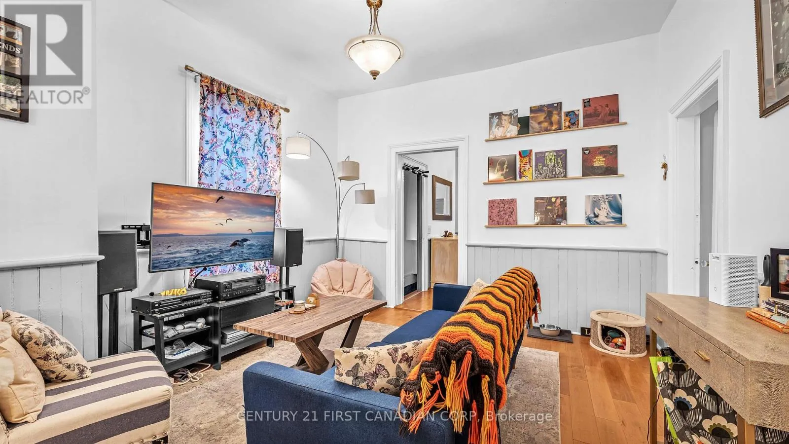 CRAIG & WORTLEY Welcome to this delightful 3-bedroom, 1-bath charming bungalow nestled in the heart of Wortley Village. This gem of a home offers the perfect blend of modern updates and timeless character, making it a truly special place to call your own. One of the standout features of this property is its prime location. Situated within walking distance to all amenities, including restaurants, cafes, schools, the scenic Thames River, downtown, and various stores, you'll have everything you need at your fingertips. As you step inside, you'll immediately be captivated by the home's high ceilings, tall baseboards, hardwood flooring and stained-glass accents in just the right places/ These charming details add a touch of elegance to the living space. The spacious living areas are perfect for hosting gatherings with friends and family. For those who love the outdoors, the large, deep backyard is a dream come true. 1 year lease $2,590 + utilities. Newly installed vanity & freshly painted throughout! (id:27476)