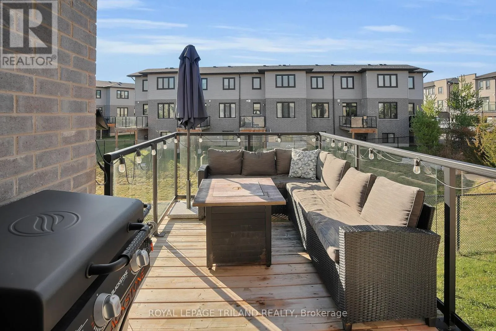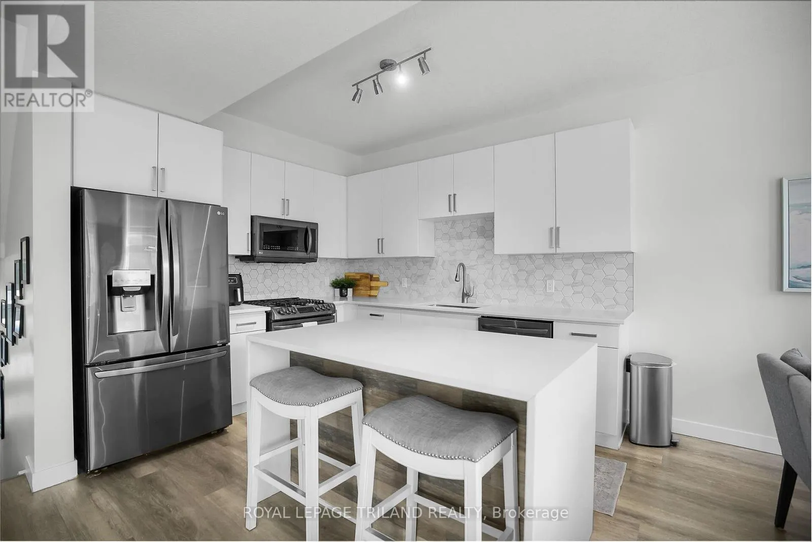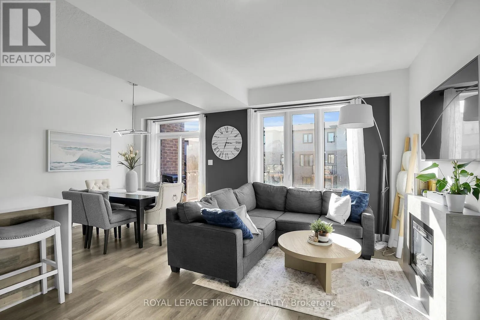 Cross Streets: SINGLETON NEAR JINNIES WAY. ** Directions: From Southdale Rd W, turn South on Singleton Ave turn into the complex once you pass the park. Welcome to this beautifully designed vacant land condo in a prime southwest London location! This home sits on a premium lot backing onto peaceful green space, offering a lovely natural view. Step inside to a bright, modern open-concept kitchen and living room featuring a cozy fireplace and patio doors leading to an outdoor deck, perfect for relaxing or entertaining. Upstairs, you'll find a spacious primary bedroom with ensuite, convenient second level laundry, and an extra wide staircase adding to the home's sense of space. The garage with inside entry provides comfort and convenience. The lower level features high ceilings and a large window, ideal for finishing to your personal taste. With many windows throughout, this home is filled with natural light and exudes modern style. Located close to shopping, restaurants, schools, hospital, recreation centre, and major highways, this move-in-ready property offers the perfect blend of comfort, style, and location, with very low condo fees to top it off! (id:27476)