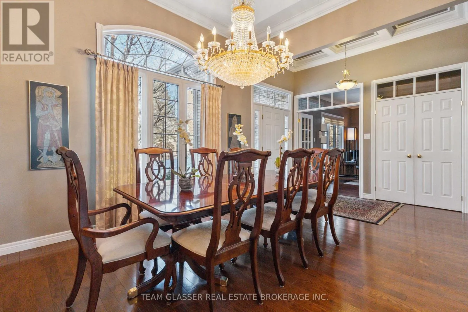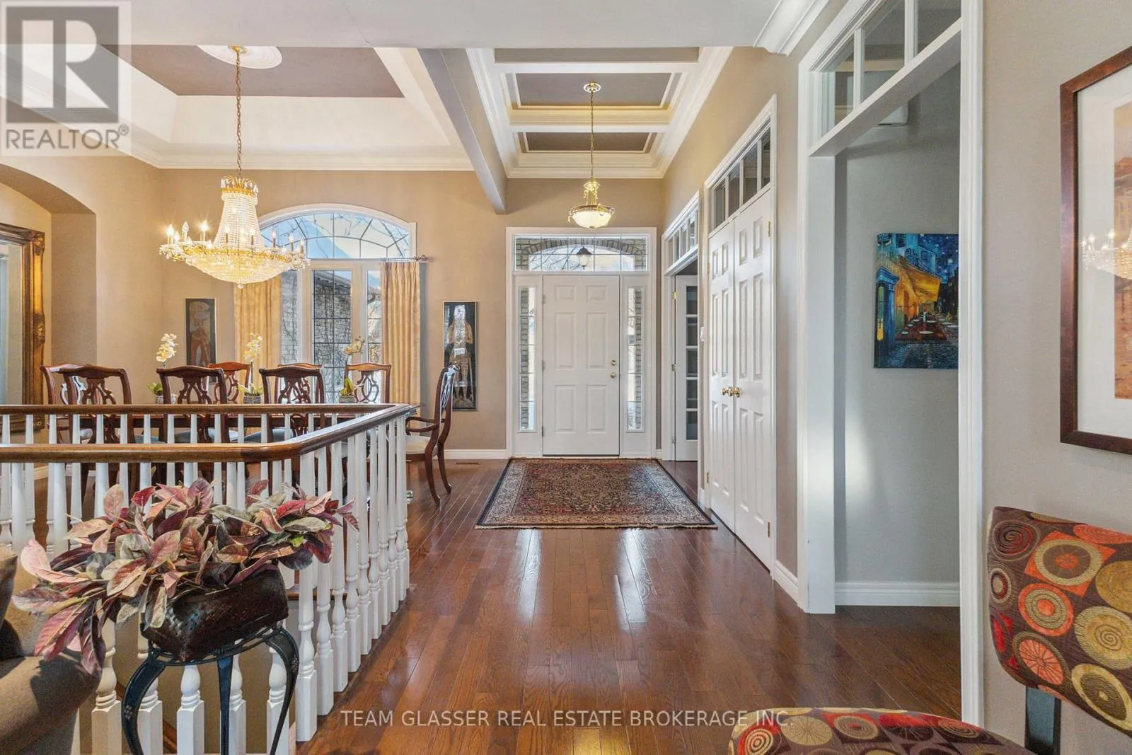 Near Commissioners and Oxford Incredible value with full basement suite - an executive custom built ranch bungalow in Warbler Woods, with the well-deserved reputation as a best location in London. Approx. 4000 Sqft finished space, tucked away on a whisper quiet 6-house cul-de-sac with almost no traffic. 2 beds plus den on main, 2 beds in the fully finished basement with a second kitchen and laundry suite. Secondary interior staircase leading up to the oversized 2-car garage, private and perfect for every family from kids to in-laws. Gorgeous inside out and year-round, with wrap-around brick exterior, large deck with glass railings, beautifully landscaped with sprinkler system, and complete privacy with mature trees and cedar hedge surrounding the large lot. Beautiful hardwood, stones and glass interior finishes, coffered and cathedral ceilings, transom windows throughout, crown moldings, French doors, numerous and bright windows with California shutters offering tons of natural afternoon lighting from the east-facing backyard. So much to offer, book an in-person experience, welcome home. (id:27476)