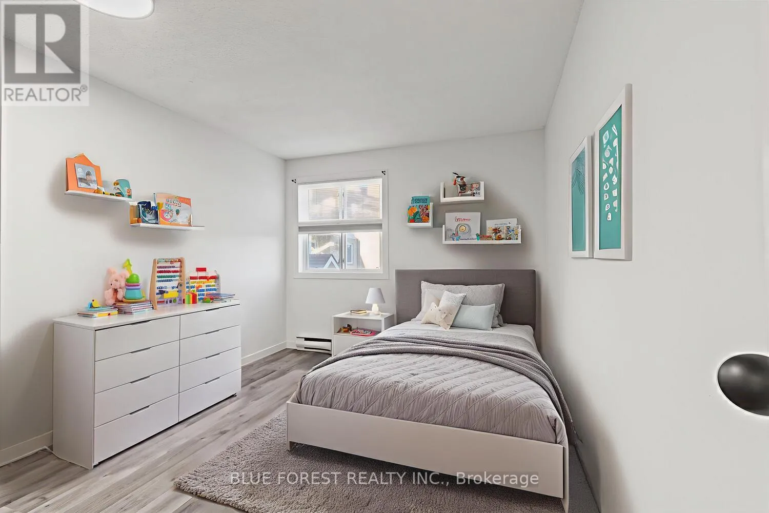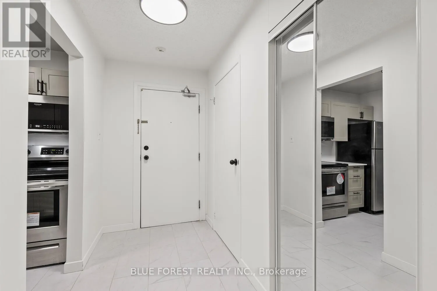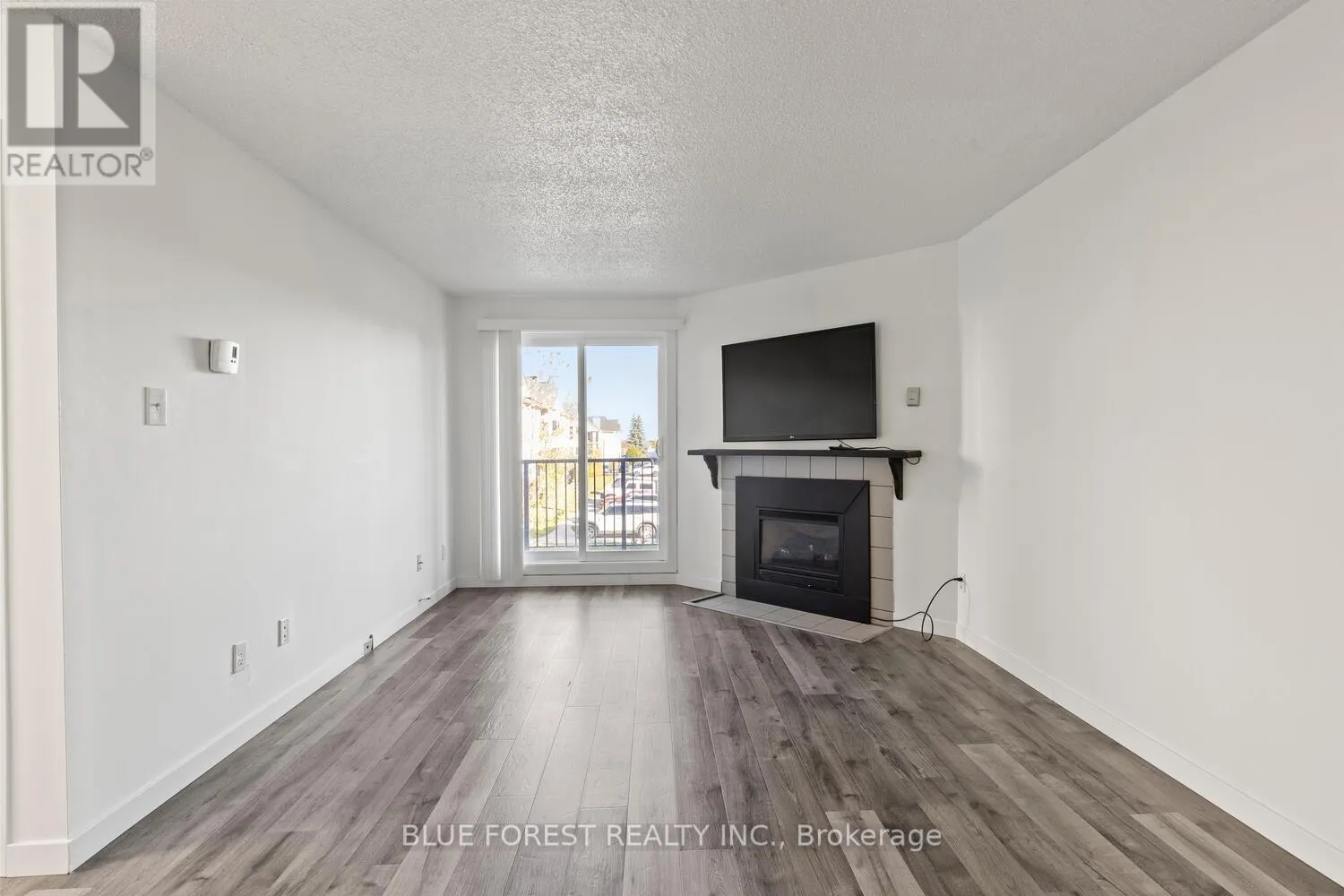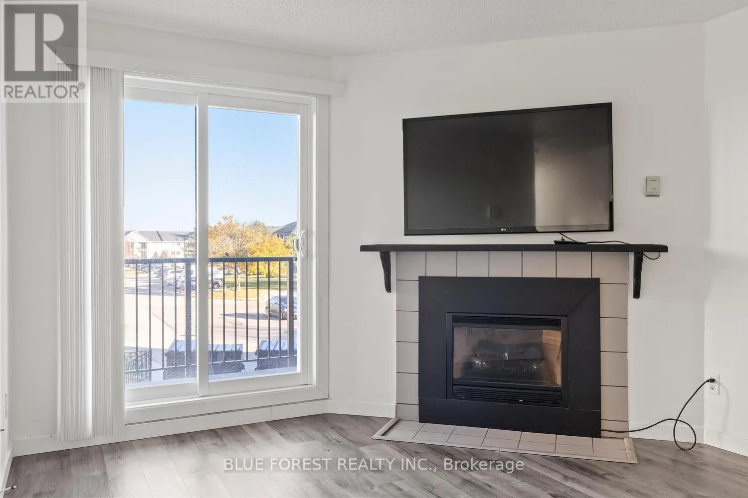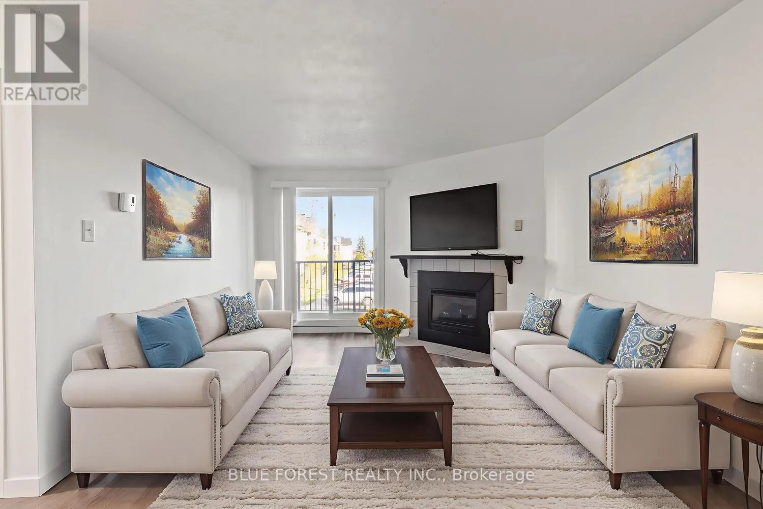 Cross Streets: Deveron & Commissioners. ** Directions: Commissioners Rd E to Deveron Cresc Unit is second building on the left from Deveron. Welcome to Pond Mills! This beautiful and bright renovated 2 bedroom 1 bath condo unit is move in ready! Tucked away from the busy road, enjoy a morning coffee on your north facing balcony. Featuring an updated kitchen with all new appliances, a large living room with a gas fireplace to keep heating costs low, and a 55" television, as well as two large bedrooms and a bright 4 piece bathroom. Enjoy in suite laundry in your new stacked washer & dryer, as well as plenty of room in your large pantry/storage closet. Water is included in your low condo fees, and plenty of parking in the large open lot. Enjoy summers by the pool, a workout in the gym, or host gatherings in the communal party room. Freshly painted, new flooring, closet doors and recently updated balcony! The nearby shopping, restaurants, schools and the newly renovated Pond Mills library make this family friendly neighbourhood perfect for first time buyers, families or investors. Come and see it today! (id:27476)