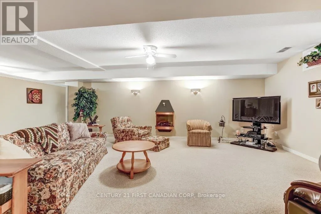 Cross Streets: Pond Mills. ** Directions: Pond Mills then east of Shelborne. A fabulous and spacious one floor condo in the growing south London location. Just 5 minutes to access the 401 and you're on your way! This is a bright, and well maintained END UNIT property with a fabulous layout. A front patio greets you out as you arrive and a rear patio for outdoor entertaining. Entering the home you have a spacious living room with a gas fireplace with a door leading to the patio. The kitchen has plenty of counter and cupboard space and a large pantry, two good size bedrooms with the primary master having two double closets and there are three baths, two on the main and one in the lower level and main floor laundry. Lower level has a very large finished family room with gas fireplace, another bedroom for when company comes. Close to public transit, banking, groceries and many other shopping and convenient amenities. Easy to show and property is being sold AS-IS. Book your showing today. (id:27476)