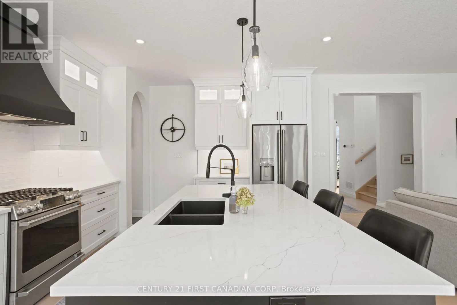 Cross Streets: RIVERBEND & BOARDWALK WAY. ** Directions: OXFORD ST WEST; LEFT ON RIVERBEND RD; AT THE ROUNDABOUT TAKE THE 2ND EXIT TO STAY ON RIVERBEND RD;. Royal Oak built 3+1 beds, main floor office; 3.5 baths; saltwater pool; concrete surround; hot tub; custom putting green; two-tier deck; covered patio; professionally landscaped front & back; custom trim and Quartz counters throughout; Butlers pantry; gas fireplace; custom glass-door main floor office; second floor laundry for everyday ease. 9ft lower level with gym & bar, guest room, and tiled shower with glass door. Smart home features throughout including full security system. This Riverbend beauty checks all the boxes with the perfect blend of luxury + lifestyle! (id:27476)