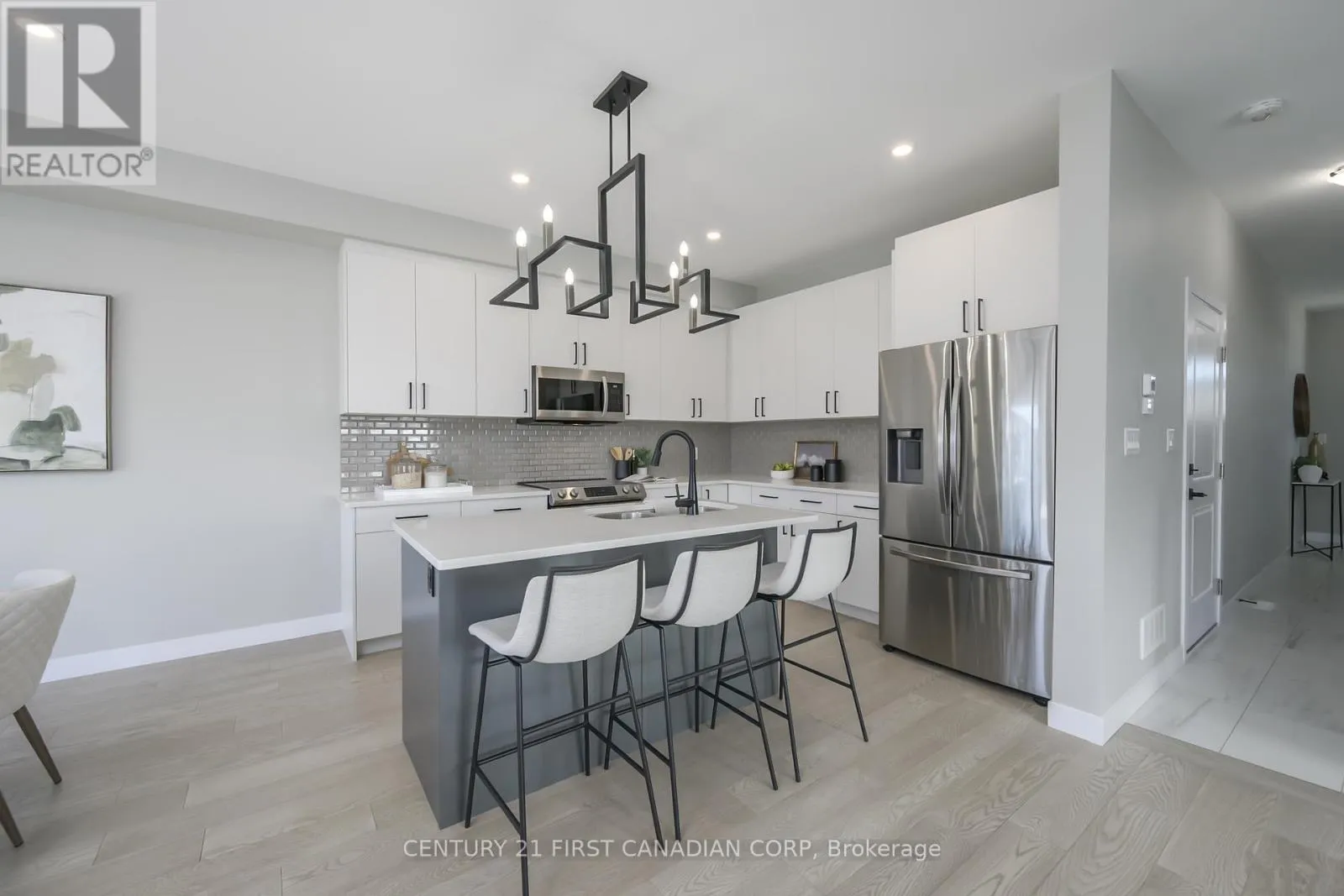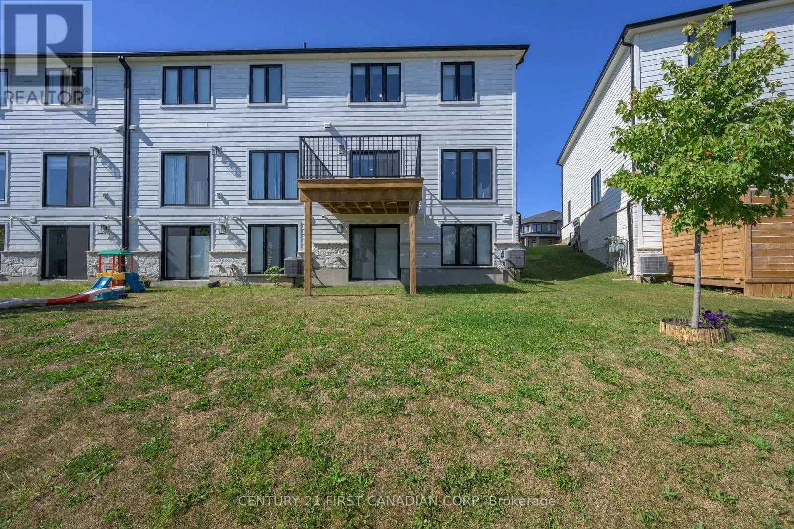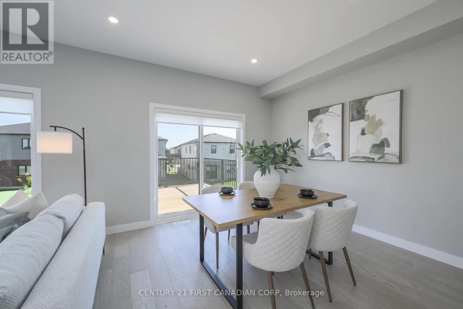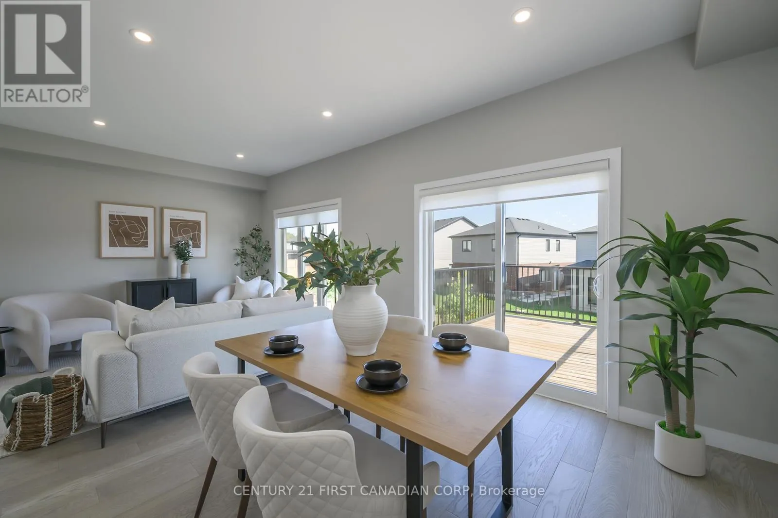 Cross Streets: Wharncliffe Rd S & Middleton Ave. ** Directions: Turn left from Middleton Avenue onto Southbridge Avenue. The townhome is the end unit on the righthand side of the second townblock. Welcome to 3612 Southbridge Avenue, located in the Middleton neighbourhood of South London. These award-winning townhomes are renowned for their stunning stonework and thoughtful interior design, boasting upgraded finishes inside and out! This property is a rare walkout, end-unit lot for additional access and tranquility. You'll notice how large the home feels, with all 1,796 square feet built with intention for where people spend their time most. The 9-foot ceilings and large rear windows expand the open main level to feature the engineered hardwood flooring, upgraded kitchen cabinets and tiled backsplash, and poplar-stained staircase. Enjoy the added natural light through the main level with the extra side-windows, or step out to the raised deck overlooking the rear yard and trees. Upstairs, you will find three spacious bedrooms and two full baths, plus a large laundry room for functional living. Each bathroom features quartz countertops, and the primary ensuite has a stepless-entry, fully tiled shower and niche. Middleton offers quick access to major shopping plazas, highway 401 & 402, and nearby parks, golf courses, and Boler Mountain. Contact the Listing Agent for your private showing today! (id:27476)