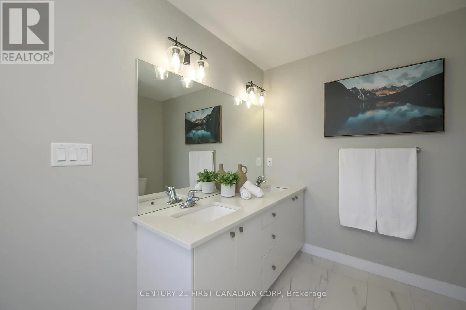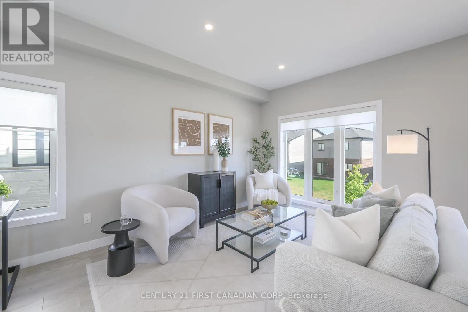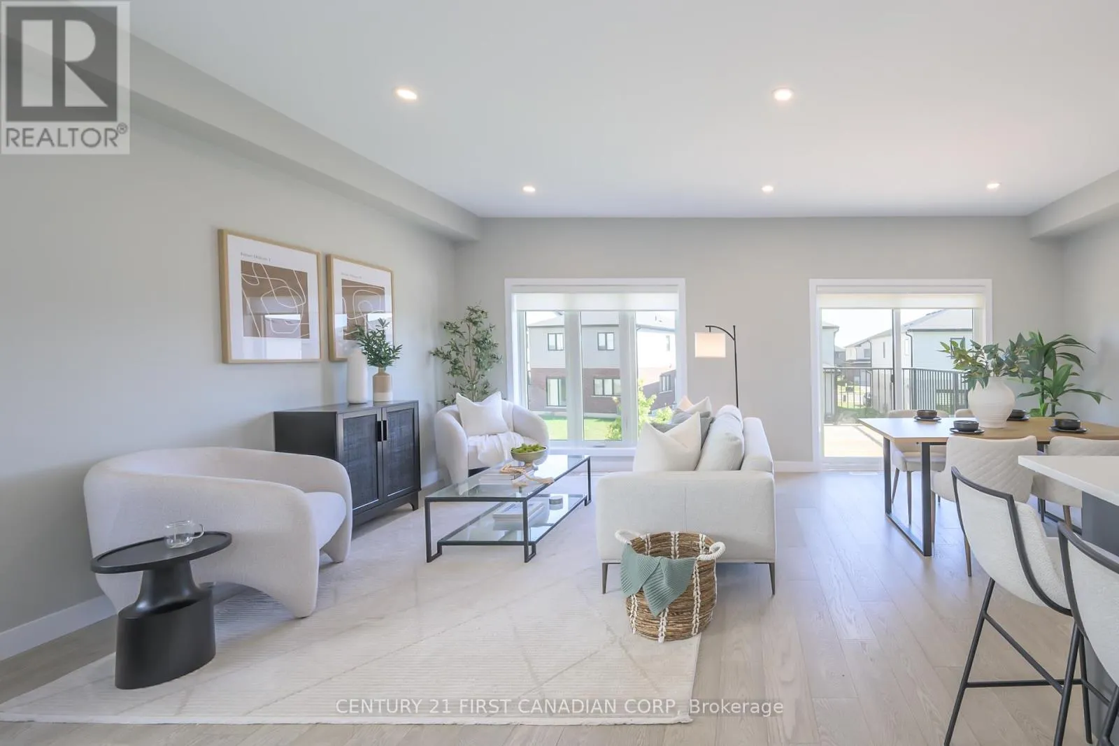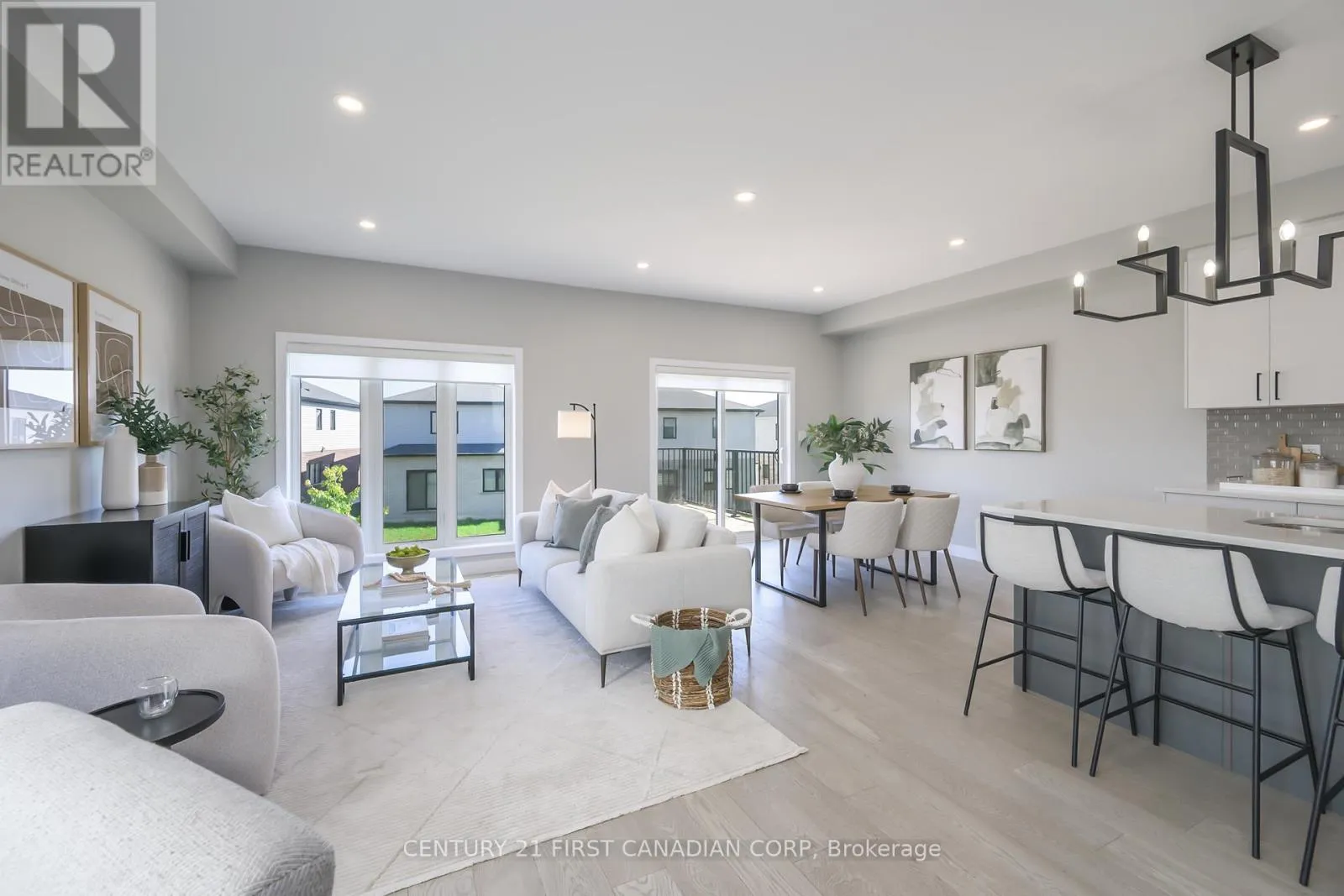 Cross Streets: Wharncliffe Rd S & Middleton Ave. ** Directions: Turn left from Middleton Avenue onto Southbridge Avenue. The townhome is the end unit on the righthand side of the second townblock. Welcome to 3612 Southbridge Avenue, located in the Middleton neighbourhood of South London. These award-winning townhomes are renowned for their stunning stonework and thoughtful interior design, boasting upgraded finishes inside and out! This property is a rare walkout, end-unit lot for additional access and tranquility. You'll notice how large the home feels, with all 1,796 square feet built with intention for where people spend their time most. The 9-foot ceilings and large rear windows expand the open main level to feature the engineered hardwood flooring, upgraded kitchen cabinets and tiled backsplash, and poplar-stained staircase. Enjoy the added natural light through the main level with the extra side-windows, or step out to the raised deck overlooking the rear yard and trees. Upstairs, you will find three spacious bedrooms and two full baths, plus a large laundry room for functional living. Each bathroom features quartz countertops, and the primary ensuite has a stepless-entry, fully tiled shower and niche. Middleton offers quick access to major shopping plazas, highway 401 & 402, and nearby parks, golf courses, and Boler Mountain. Contact the Listing Agent for your private showing today! (id:27476)