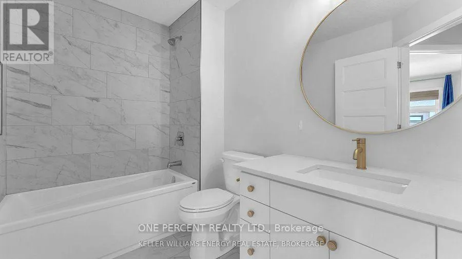 SOUTH ON SPRINGMEADOW, LEFT ON SINGLETON, LEFT INTO 3380 COMPLEX SPECTACULAR!!! MODEL HOME QUALITY 3 bedroom, 3.5 baths, PLUS fully finished lower level located quietly in one of Andover Trails latest developments! Open concept kitchen/great room boasting soft close cabinetry, large breakfast bar island with waterfall quartz countertops. 2pc powder room. Upper floor laundry for added convenience with washer and dryer included. Master bedroom features large walk in closet and luxury 3pc ensuite with over sized shower and quartz tops. 2 other nicely sized bedrooms w/main bath also with quartz tops. Quality tile and upgraded vinyl plank flooring throughout. Note: Added sound proofing. Upgraded lighting, faucets and bathroom mirrors. Lower level is finished with large window acceptable for use as a 4th bedroom space for teen with a full bath and potlighting! It's all here! Put this one on the top of your list. Walking distance to Park and close to shopping and schools. Green space area directly behind unit. (id:27476)