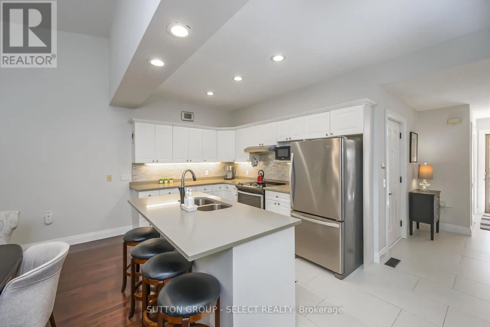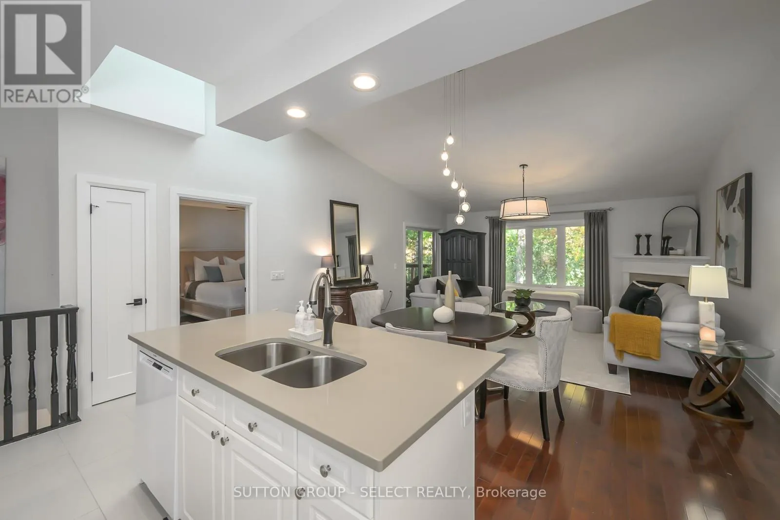 Cross Streets: Boler. ** Directions: Boler Road - Head West on Commissioners Rd W. Tucked quietly at the. back of the coveted Byron Woods enclave, this forest-backed bungalow feels like a secret escape in the heart of the village. Morning light filters through the trees, birds chatter in the canopy, and the only other sound you'll hear from the covered deck is the breeze moving through the leaves. It's hard to believe you're just a short walk to Byron's shops, cafés, and the trails of Springbank Park along the Thames River. Inside, over $120,000 in thoughtful upgrades have transformed the space with timeless style including upgraded interior doors, baseboards and casings, hardwood and tile floors, updated lighting, and three beautifully renewed bathrooms. The kitchen shines with quartz counters, an iridescent porcelain mosaic backsplash, stainless appliances, and a skylight that floods the space with sunshine. The open-concept living and dining area centers around a romantic gas fireplace and lush forest views, creating a sense of calm that continues throughout the home. The main level offers a tranquil primary bedroom with walkout access to the deck, a beautifully renovated ensuite with walk-in shower, a versatile second bedroom or office, a second renovated full bath, and convenient main-floor laundry. Downstairs, the walkout lower level feels equally inviting with large windows, a family room wrapped in custom built-ins, an integrated projector and screen for movie nights, a bright guest bedroom, an updated 3-piece bath with tile walk-in shower, and plenty of storage. Step outside to your private patio and enjoy the dappled light of the woods. With an attached garage and carefree condo living, this rare forest-side home offers the best of Byron, steps from Springbank Park, minutes to Boler Mountain, Riverbend Golf, and the London Hunt & Country Club. A lifestyle as peaceful as it is connected. (id:27476)