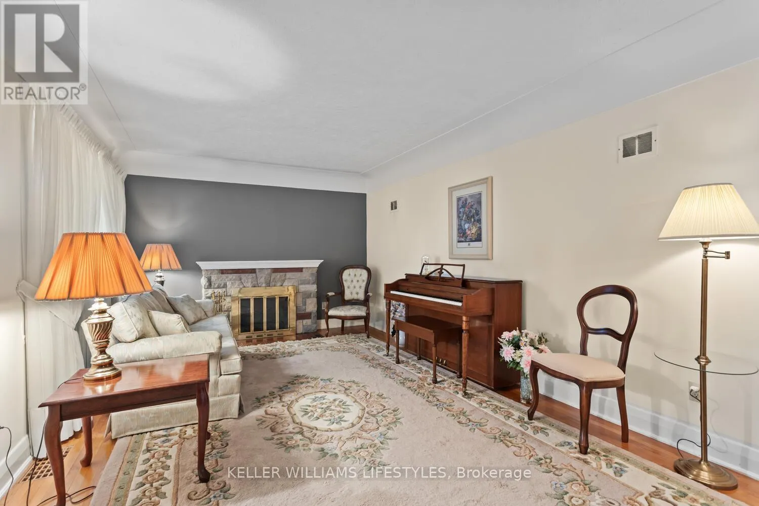 Cross Streets: LYNNE AVE. ** Directions: BROADWAY AVE TO MARTIN ST TO DAVID ST. Nestled in the heart of Lambeth, known for its charming village atmosphere and tree-lined streets, this 3 bedroom, 1 bathroom brick home is perfect for families! Starting with the inviting covered front porch to the living room with its large picture window and wood-burning fireplace, this home provides comfort. The eat-in kitchen offers convenience for casual meals, and the dining room provides a welcoming space for family gatherings. Ample sized bedrooms, including a primary with a large window overlooking the expansive yard. The partly finished lower level with large windows presents many possibilities. An attached garage with double drive giving ample parking convenience. With parks, trails, boutique shops, and easy highway access nearby, this highly sought-after area is perfect for families and professionals alike. (id:27476)