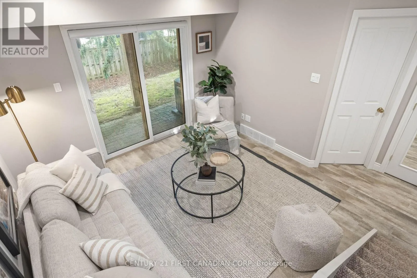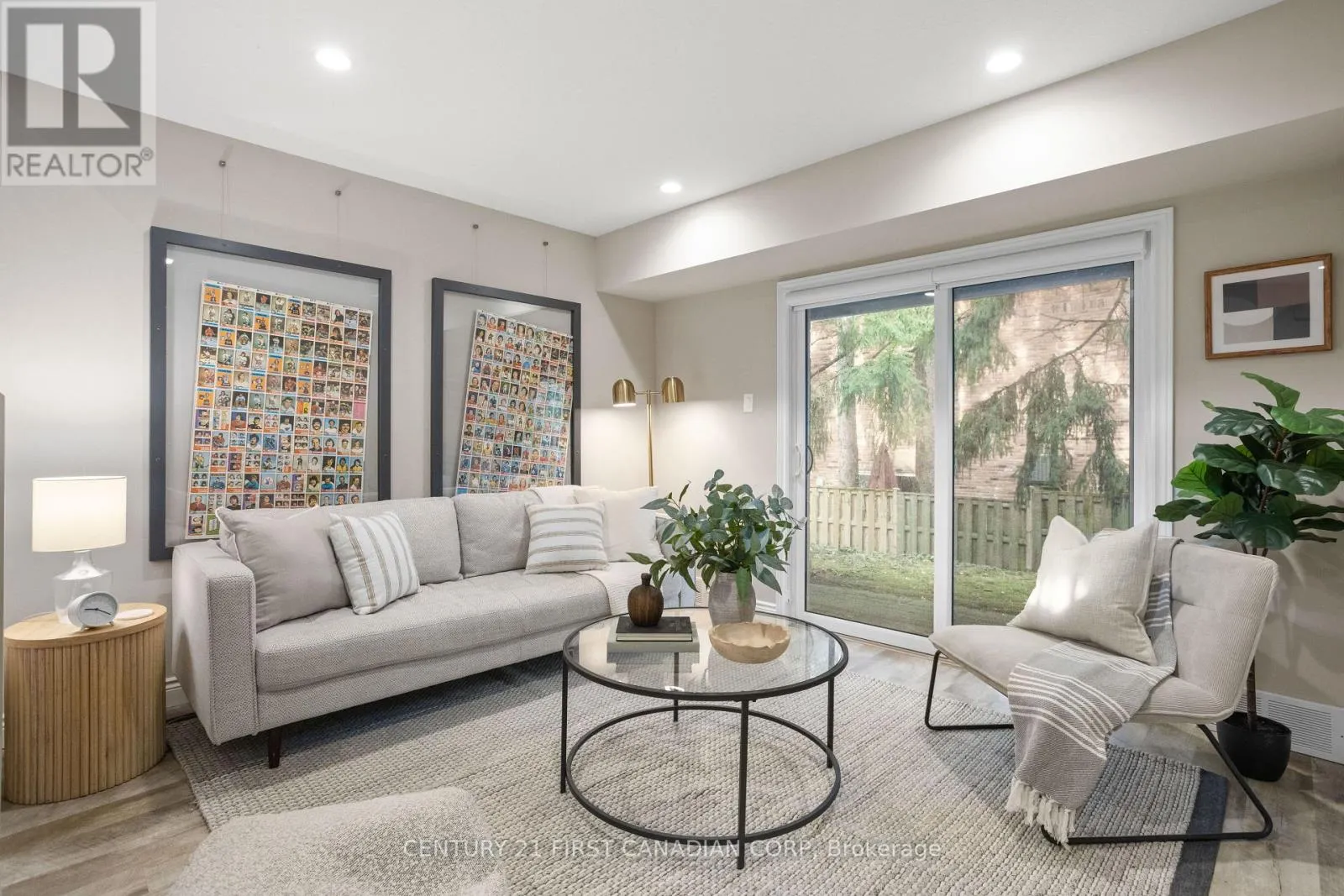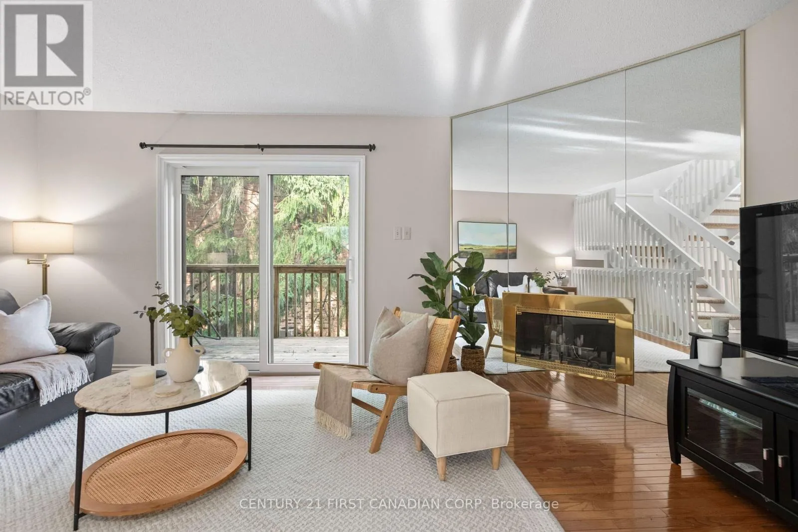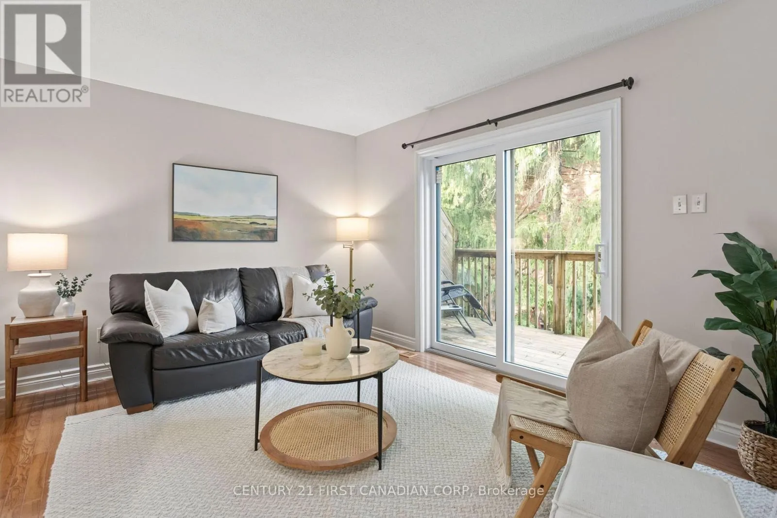 Cross Streets: Reynolds Road and Commissioners Road W. ** Directions: Heading west on Commissioners Road W., continue past Reynolds Road and the entrance to the property will be on your right. Welcome to 1399 Commissioners Road W., Unit 30, in the sought-after Byron neighbourhood of London. This three-storey townhome offers two spacious bedrooms, 1.5 bathrooms, and a single-car garage. The entry level features a versatile den or office space finished with luxury vinyl plank and provides access to a private patio through updated patio doors. The main floor showcases an open-concept design with hardwood flooring, a gas fireplace, and a private outdoor balcony space through updated patio doors off the living room. A central open staircase with a skylight from the third floor, combined with an abundance of windows throughout, fills the home with natural light. Upstairs, you'll find two generously sized bedrooms and a beautifully renovated three-piece bathroom completed with heated floors, tiled walls and floors, Grohe fixtures, and a 20 rainfall shower. The half bathroom on the main floor also includes Grohe fixtures and a gorgeous tile feature wall. The second and third floors are finished with hardwood, while the furnace room floor has been epoxied to match the luxury vinyl plank flooring. The home is further enhanced by an owned tankless water heater, increasing efficiency and comfort. The garage is finished with Gladiator Garage slat walls, baseboards, and an epoxy floor, offering excellent storage and durability. This condo community backs onto the Thames River and is just minutes on foot to Springbank Park and the heart of Byron, making it the perfect combination of nature, convenience, and lifestyle. (id:27476)