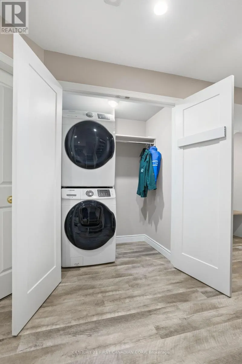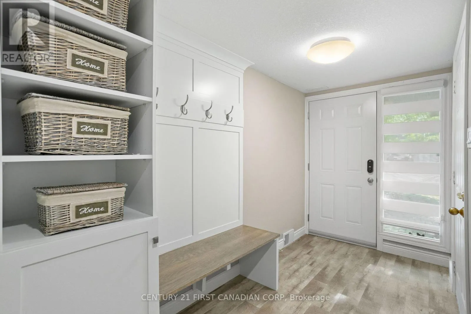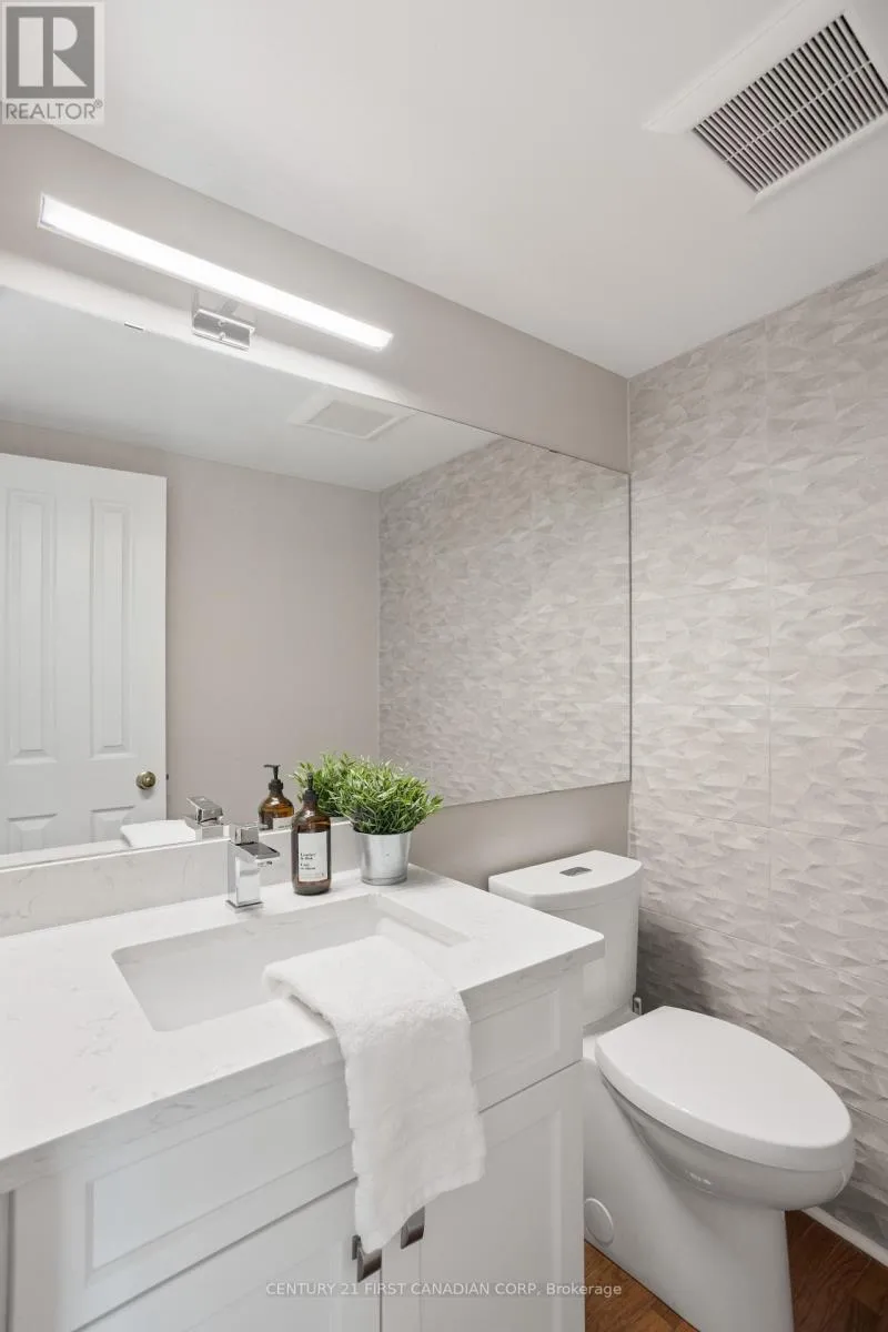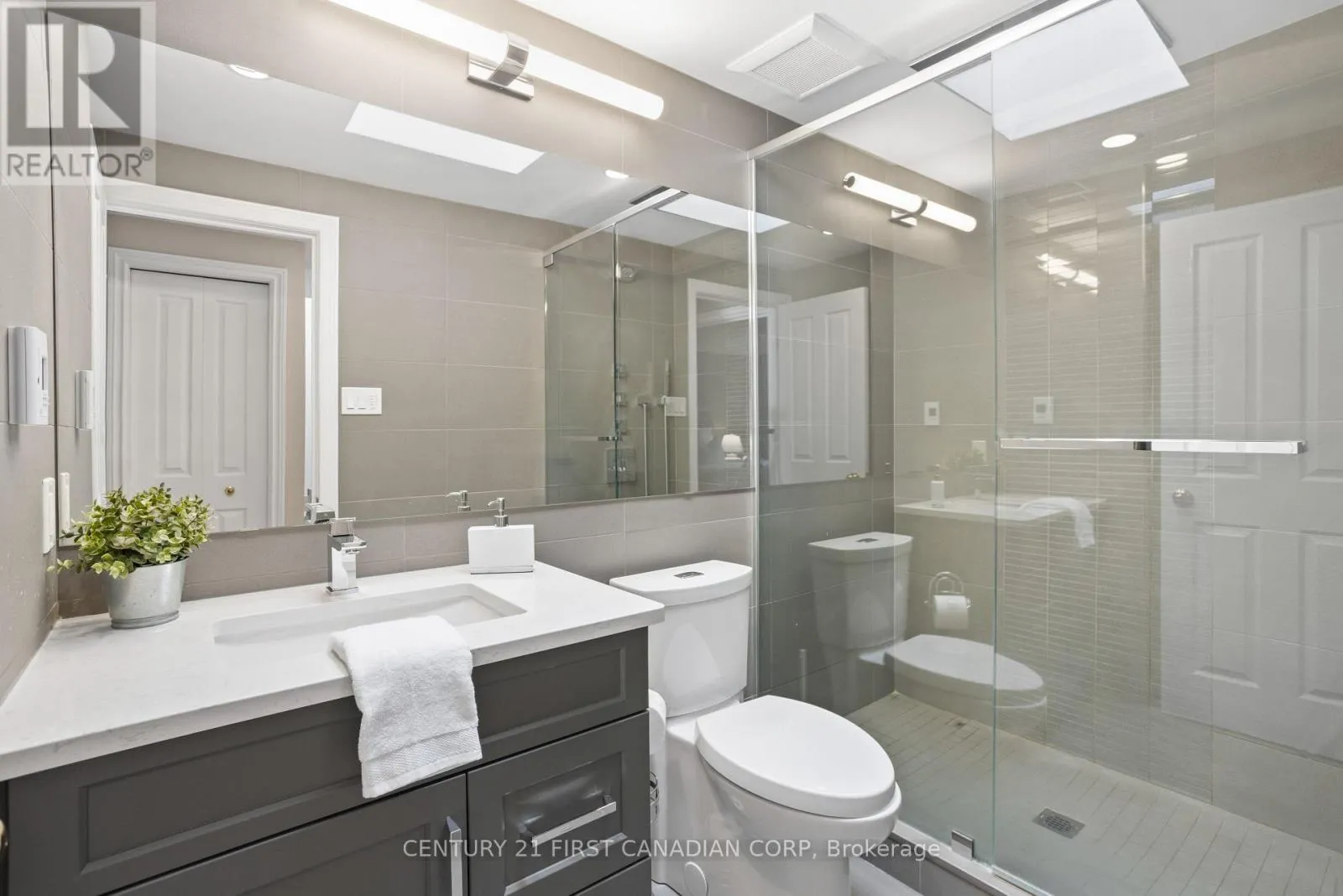 Cross Streets: Reynolds Road and Commissioners Road W. ** Directions: Heading west on Commissioners Road W., continue past Reynolds Road and the entrance to the property will be on your right. Welcome to 1399 Commissioners Road W., Unit 30, in the sought-after Byron neighbourhood of London. This three-storey townhome offers two spacious bedrooms, 1.5 bathrooms, and a single-car garage. The entry level features a versatile den or office space finished with luxury vinyl plank and provides access to a private patio through updated patio doors. The main floor showcases an open-concept design with hardwood flooring, a gas fireplace, and a private outdoor balcony space through updated patio doors off the living room. A central open staircase with a skylight from the third floor, combined with an abundance of windows throughout, fills the home with natural light. Upstairs, you'll find two generously sized bedrooms and a beautifully renovated three-piece bathroom completed with heated floors, tiled walls and floors, Grohe fixtures, and a 20 rainfall shower. The half bathroom on the main floor also includes Grohe fixtures and a gorgeous tile feature wall. The second and third floors are finished with hardwood, while the furnace room floor has been epoxied to match the luxury vinyl plank flooring. The home is further enhanced by an owned tankless water heater, increasing efficiency and comfort. The garage is finished with Gladiator Garage slat walls, baseboards, and an epoxy floor, offering excellent storage and durability. This condo community backs onto the Thames River and is just minutes on foot to Springbank Park and the heart of Byron, making it the perfect combination of nature, convenience, and lifestyle. (id:27476)