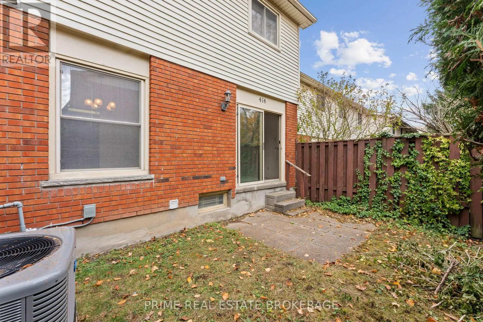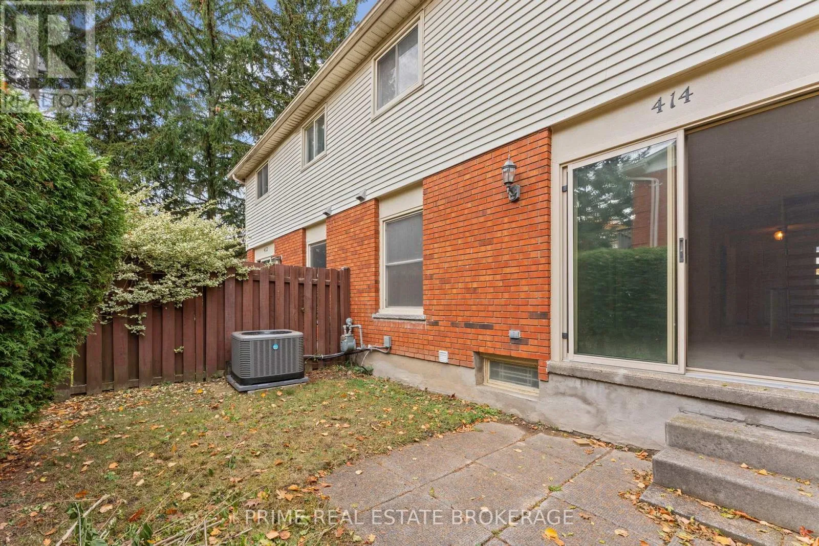 Wilkins and Upper Queens St Welcome to 414 Wilkins. A rare opportunity in one of South London's most established and well cared for communities.Set within a quiet, tree-lined complex admired for its curb appeal and sense of community, this original owner townhome offers exceptional potential for those with an eye for design. The main level features a bright, functional layout with generous living and dining spaces that flow naturally together. It's the perfect foundation for a modern refresh.While the finishes remain largely original, the home's solid construction and timeless floor plan provide a blank canvas to create something truly special. Upstairs, the spacious primary bedroom includes cheater ensuite access and a private upper terrace - a peaceful spot for morning coffee or evening unwinding. Two additional bedrooms offer space for family, guests, ora dedicated home office.The lower level extends the living space with laundry, storage, and an open area ready to be reimagined as a recreation room. A private fenced yard and attached single-car garage complete the package.Ideally located minutes from shopping, parks, and major amenities, 414 Wilkins is perfect for buyers seeking great bones, a desirable location, and the freedom to make it their own.Condo fees include Water, Snow Removal, Building Insurance and Lawn Care of Common Elements Area. (id:27476)