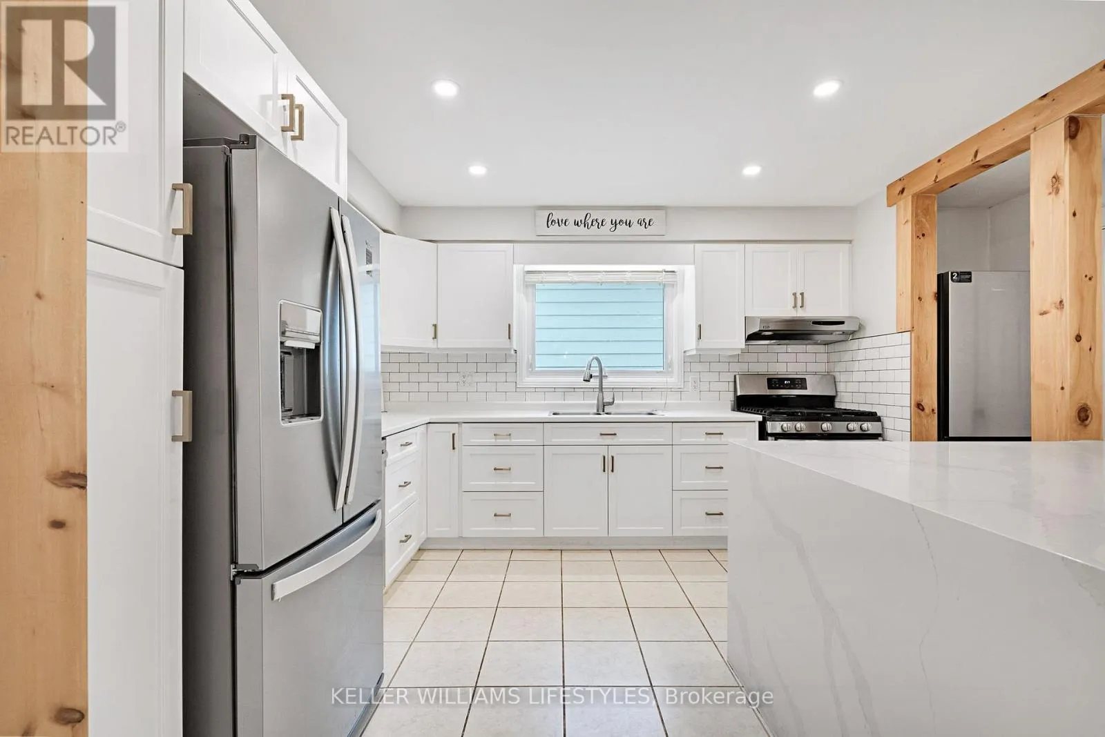 Cross Streets: Byron Baseline Rd/Grand View Ave. ** Directions: Traveling west on Byron Baseline Rd, turn left(south) onto Grand View Ave. Welcome to 575 Grand View in the heart of beautiful Byron! This meticulously maintained and smartly updated raised bungalow is the perfect house for a growing or multi-generational family. The home offers over 2100sf of finished living space, including a basement in-law suite with a separate entrance. Once inside, take in the open and bright kitchen and living space. The waterfall center island is the perfect gathering spot when entertaining family and friends. The main floor primary bedroom looks out to the backyard and has a 3pc ensuite and double closet. Additionally, the main floor has 2 extra bedrooms with closets, an updated 4pc bathroom and a bonus room that could serve as a nursery, office or fourth bedroom as currently used. Continue downstairs and you will discover an open living space with large windows, a brick fireplace, handy kitchenette and a 3pc bathroom. Around the back of the home is the in-law suite with a separate entrance. A galley kitchen leads to your living room complete with electric fireplace. The spacious bedroom has plenty of storage area, including your very own spa-like 4pc ensuite. The in-laws never had it so good!! Dog owners will appreciate the fully fenced yard, which you can enjoy from under your pergola on your spacious deck. So many other features including new HVAC and heat pump in 2023, 200amp panel, tank-less on-demand water heater, double wide 4 car driveway and attached 2 car garage. Walking distance to Boler Mountain and several parks make this property the perfect location for lovers of the outdoors. Book your showing today for this Byron Beauty! (id:27476)