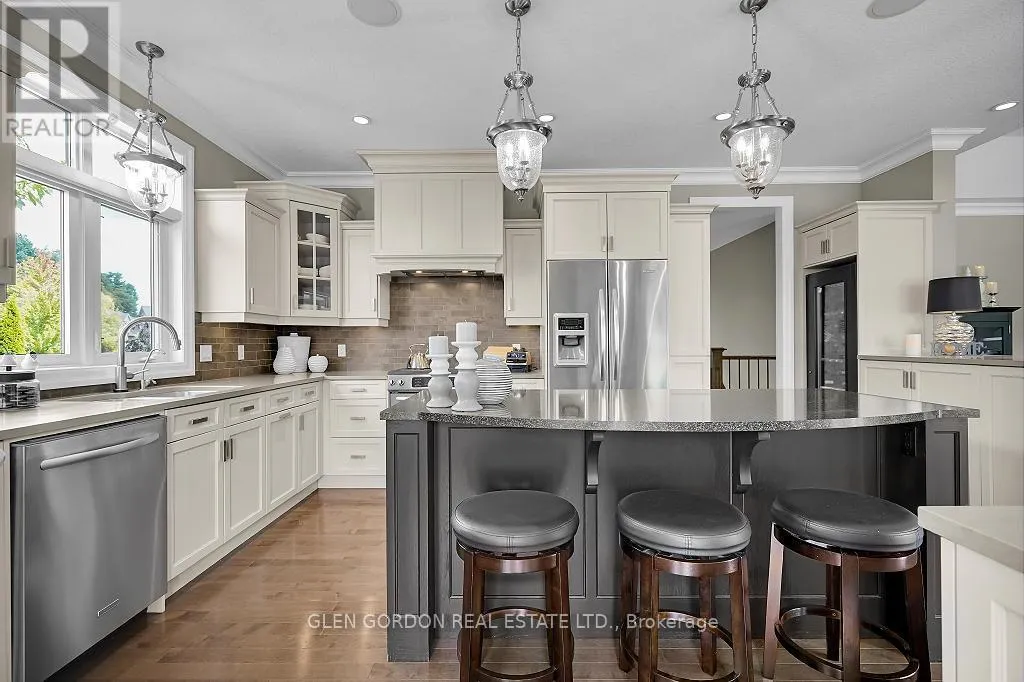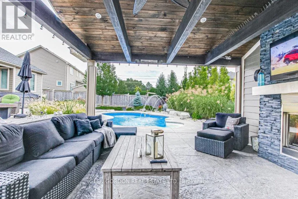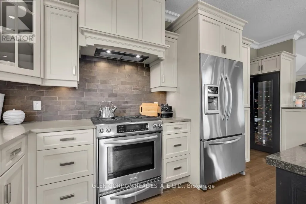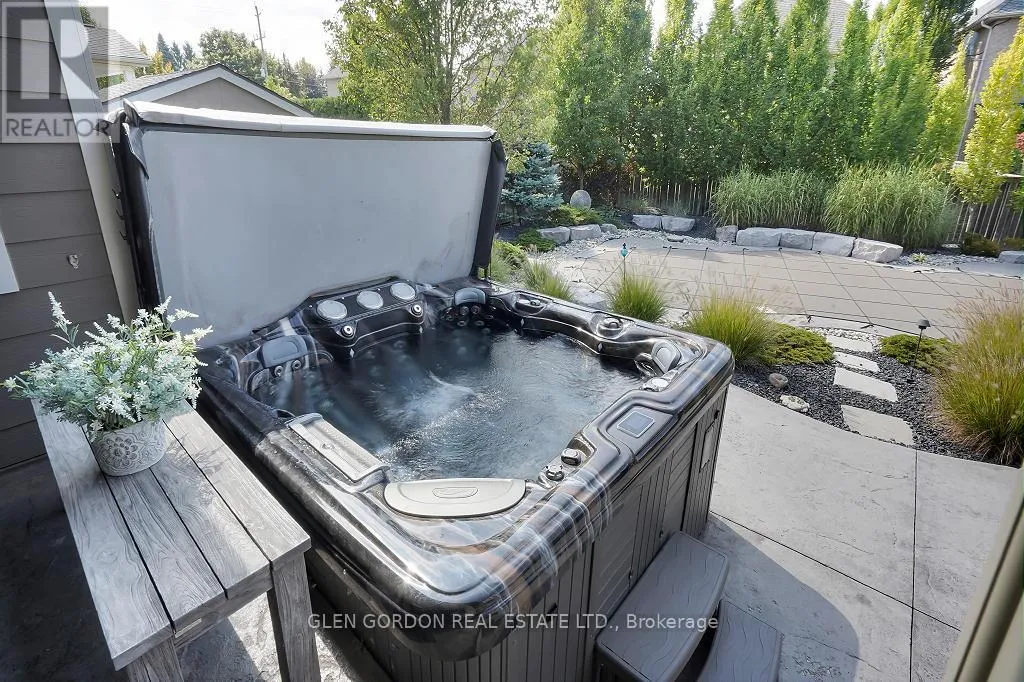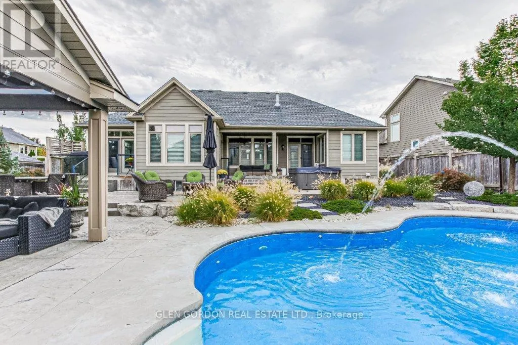Cross Streets: Settlement Trail and Pack Road. ** Directions: South on Colonel Talbot Road from Southdale Road to Pack Rd, Turn east to Settlement Trail, turn left and follow to Settlement Place on right, across from protected green space forest with ponds. Absolutely Stunning Home! -- A Rare Find! This home with timeless design & modern comfort doesn't disappoint with an incredible outdoor living space 2nd to none and a terrific floor plan! Situated on a quiet court steps away from walking trails & protected wetlands - nature at your doorstep -- just one of the highlights of this exceptional home! Beautiful curb appeal - from the newer drive to the welcoming entry that opens to the gorgeous interior with the warmth of hardwood. Natural light dances through the many windows in this home from the Great Room with tray ceiling & fireplace that opens to the gourmet kitchen with awesome work islands, quartz surfaces, full size wine fridge, eating area with coffee bar/banquette. Formal dining room surrounded by windows that look out to the backyard oasis. Primary Bedroom boasting a lounge area with garden door leading to the covered deck and hot tub, 2 walk-in closets, 5 piece luxury ensuite with heated floors! 2 + 3 bedrooms, 4 full baths, 2 powder rooms (1 in the Cabana/Lanai). Lower level features a spacious family room, games room, wet bar, huge bedrooms - one currently an exercise room, large windows and high ceilings. 3 sets of garden doors lead to the covered deck & extensive stamped concrete patios, hot tub, salt-water heated pool, beautiful easy care gardens & an amazing showpiece Lanai (Cabana) with gas fireplace, TV, stainless steel kitchenette, outdoor powder room & bar. Sprinkler system, insulated 2 car garage with storage area extension. You need to see this exceptional home to truly appreciate all it has to offer! (id:27476)