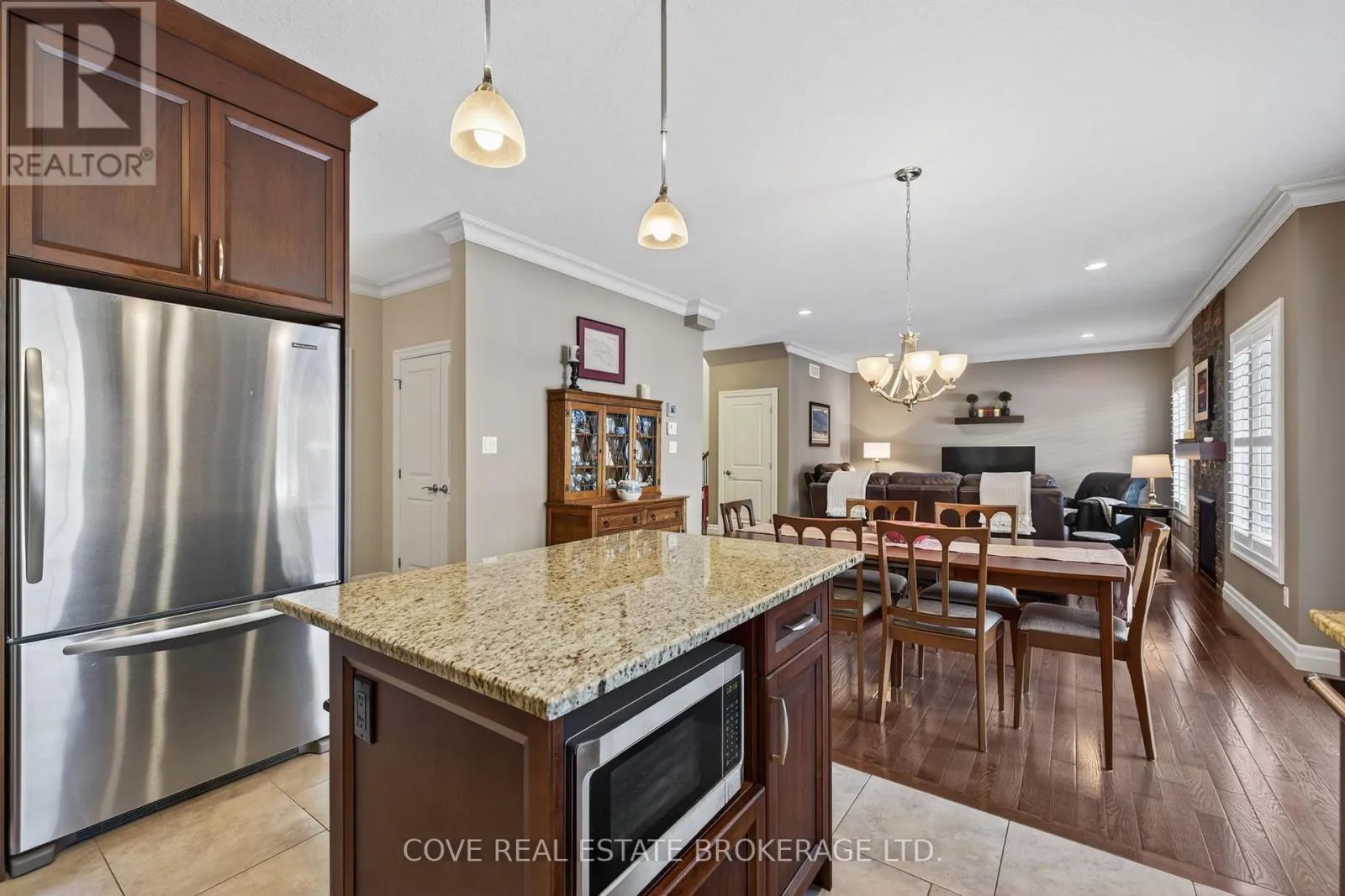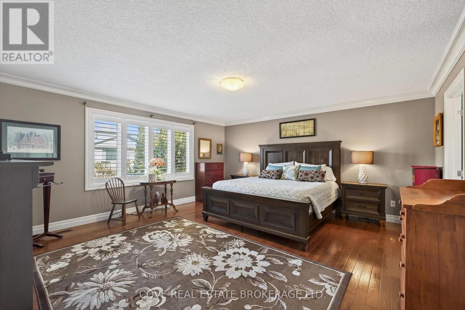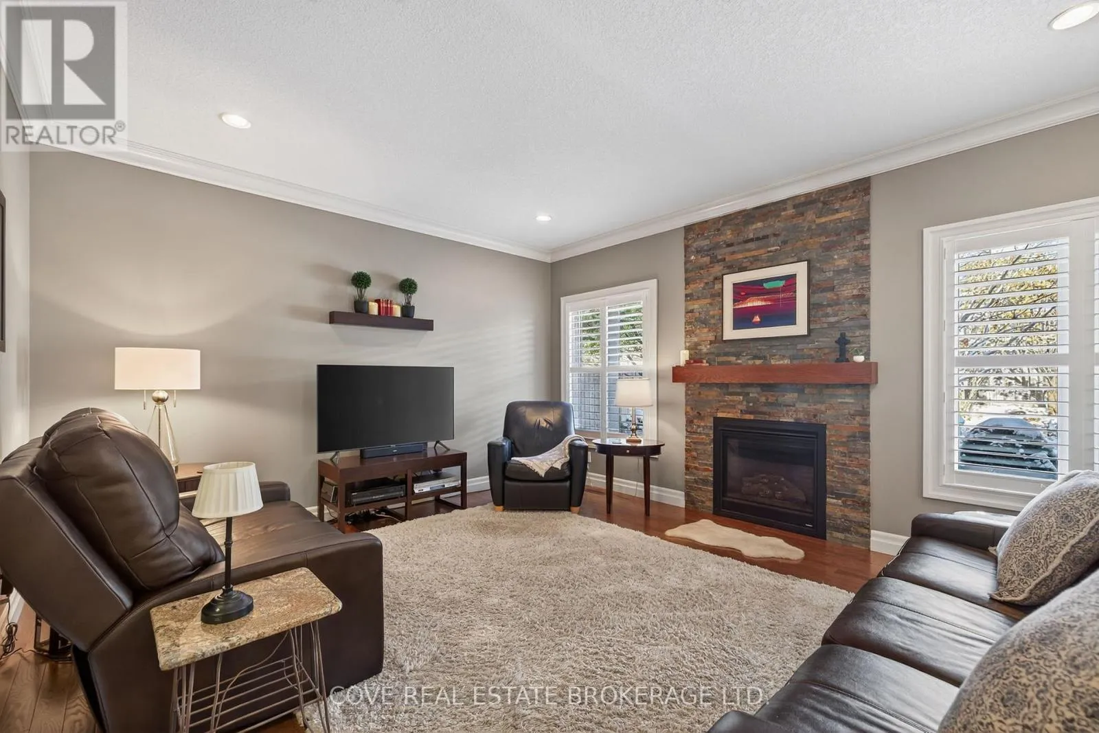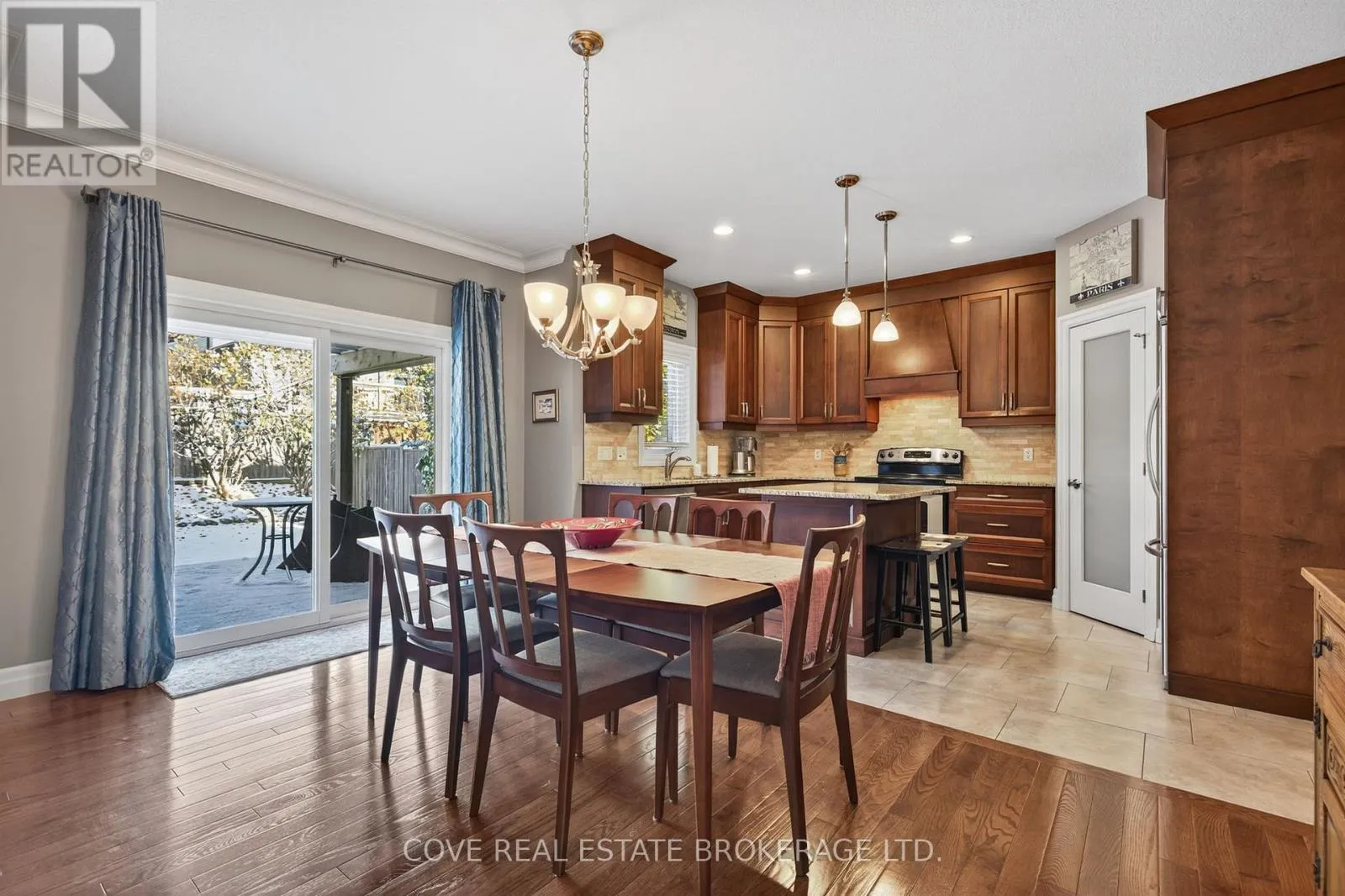 Cross Streets: Raleigh/Tillmann. ** Directions: Southdale Rd. W., South on Tillmann Rd., West on Raleigh Boulevard. Wonderful 2 Storey home with Double Car Garage and fully finished Basement located in Talbot Village. This Highland Homes former model home has many upgrades including crown moulding, hardwood flooring, brick, stone and James Hardie cement board exterior. Conveniently located near Raleigh Parkette, shopping, restaurants, YMCA, Community Centre, Library, Ãcole élémentaire La Pommeraie, White Pine P.S., trails and quick access to the 401. This 5 Bedroom, 4 Bathroom home has been lovingly maintained and features a beautifully landscaped, fully fenced Back Yard with composite deck, stamped concrete patio, custom cedar pergola and flagstone path leading to the charming shed. The Main Level consists of an open-concept Kitchen overlooking the Dinette & Living Room with gas fireplace, 2 piece Bathroom and Den which could be utilized as an Office or Formal Dining Room. The well appointed Kitchen is highlighted by granite countertops, backsplash, centre island, corner pantry, backsplash and stainless steel appliances. There's also a Laundry/Mud Room. Upstairs, there are 3 generously sized Bedrooms and two 5-piece Bathrooms. The Primary Bedroom includes a large walk-in closet and 5-piece Ensuite with double sinks, soaker tub, tiled glass shower with in-floor heat while the Main Bathroom has double sinks, under cabinet lighting and in-floor heat. The Basement is fully finished and includes 2 Bedrooms, a 3-piece Bathroom, Recreation Room with gas fireplace, Cold Room and Utility/Storage Room. Includes 7 appliances, shed, patio string lights and California Shutters. Central vacuum and security system are roughed-in. See multimedia link for 3D walkthrough tour and floor plans. (id:27476)