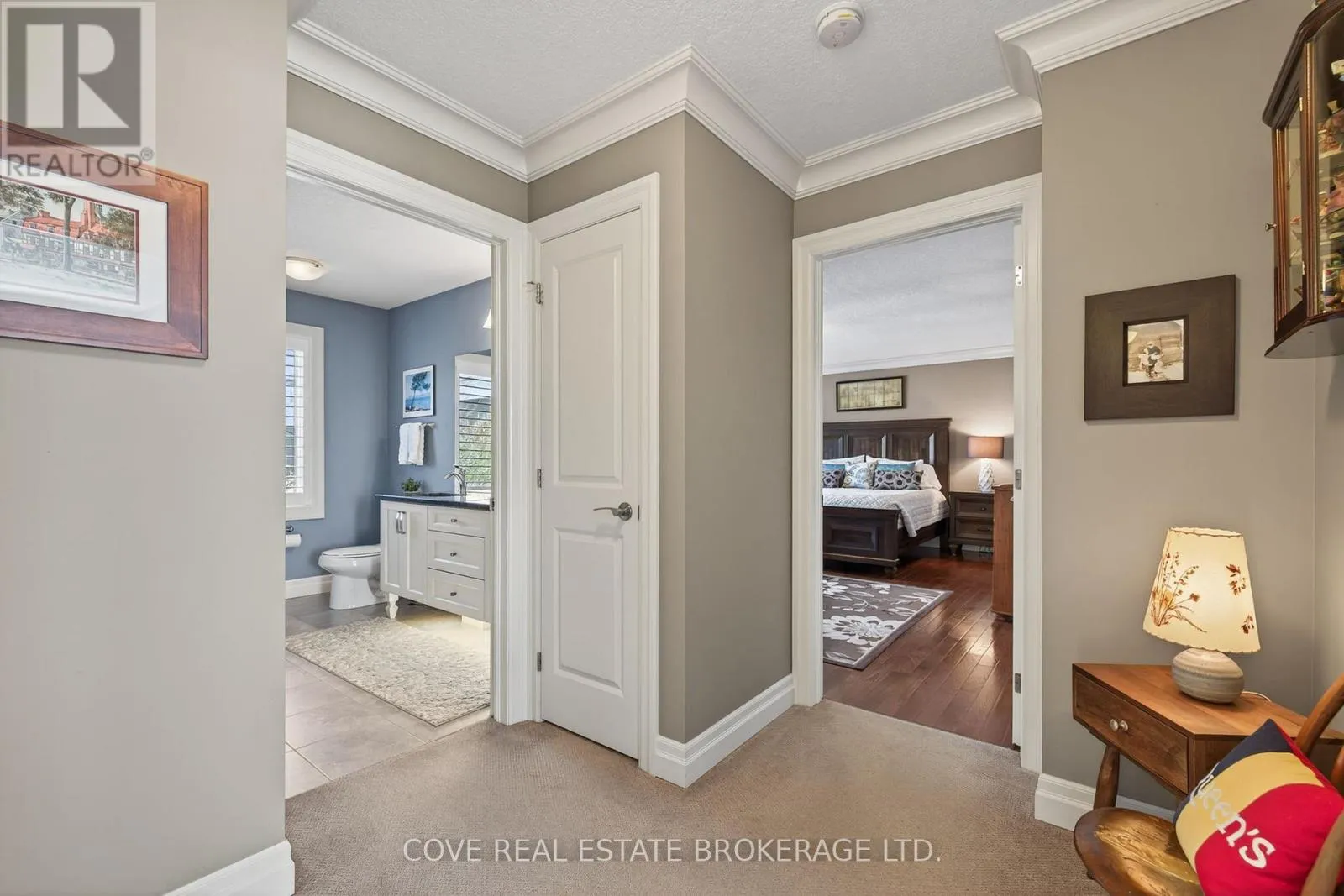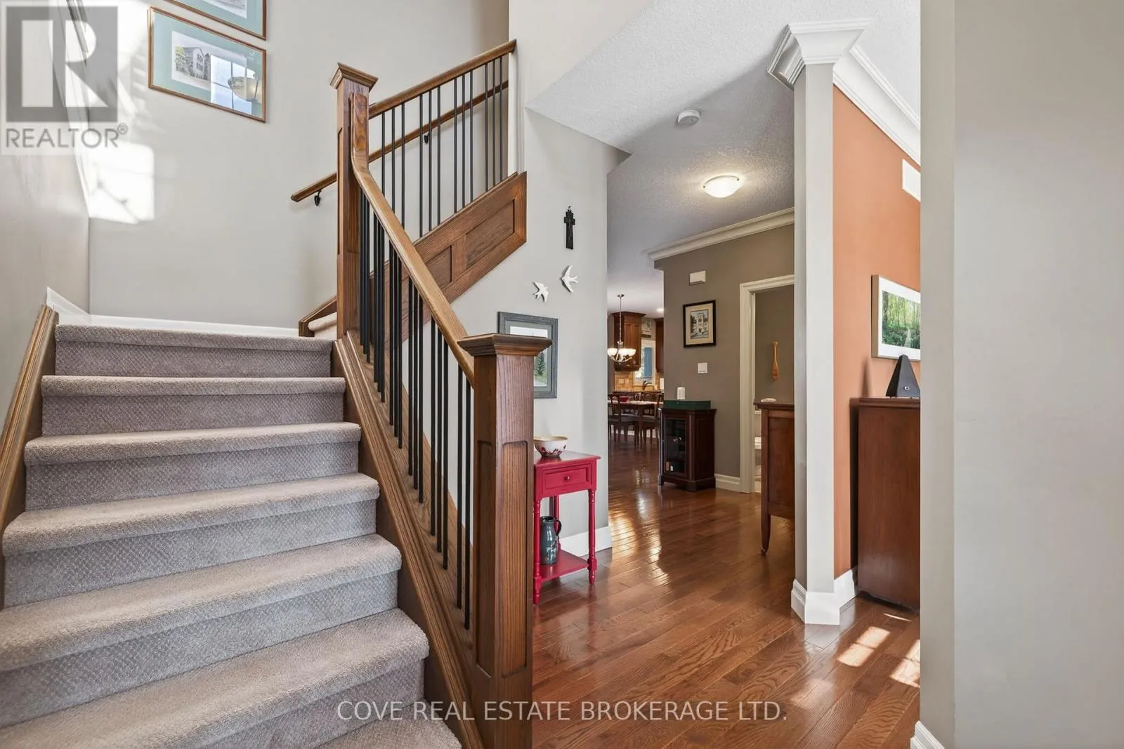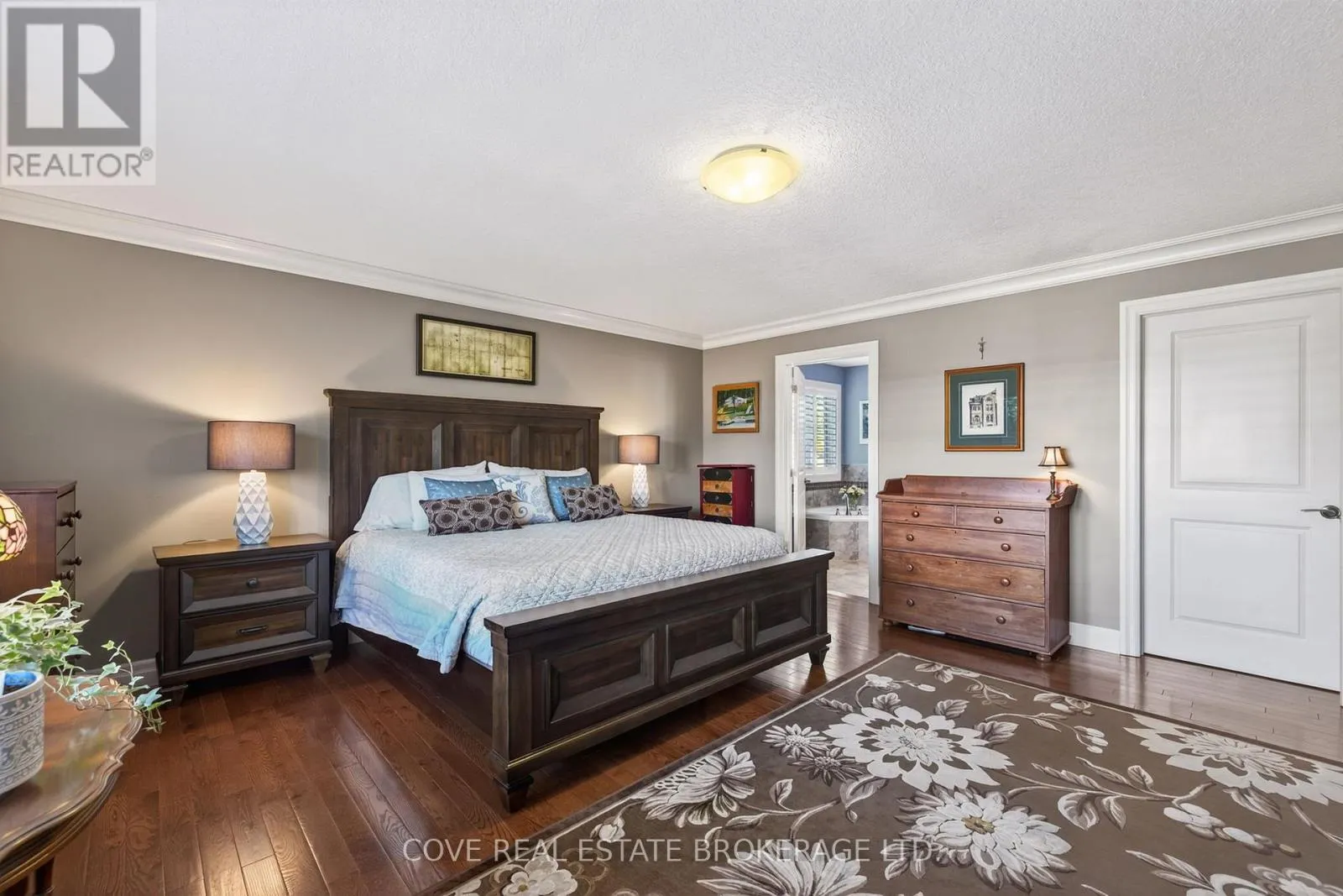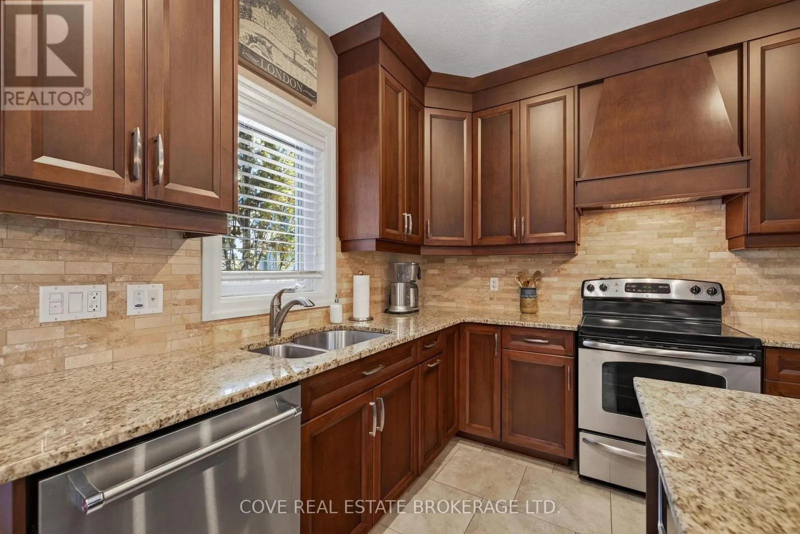 Cross Streets: Raleigh/Tillmann. ** Directions: Southdale Rd. W., South on Tillmann Rd., West on Raleigh Boulevard. Wonderful 2 Storey home with Double Car Garage and fully finished Basement located in Talbot Village. This Highland Homes former model home has many upgrades including crown moulding, hardwood flooring, brick, stone and James Hardie cement board exterior. Conveniently located near Raleigh Parkette, shopping, restaurants, YMCA, Community Centre, Library, Ãcole élémentaire La Pommeraie, White Pine P.S., trails and quick access to the 401. This 5 Bedroom, 4 Bathroom home has been lovingly maintained and features a beautifully landscaped, fully fenced Back Yard with composite deck, stamped concrete patio, custom cedar pergola and flagstone path leading to the charming shed. The Main Level consists of an open-concept Kitchen overlooking the Dinette & Living Room with gas fireplace, 2 piece Bathroom and Den which could be utilized as an Office or Formal Dining Room. The well appointed Kitchen is highlighted by granite countertops, backsplash, centre island, corner pantry, backsplash and stainless steel appliances. There's also a Laundry/Mud Room. Upstairs, there are 3 generously sized Bedrooms and two 5-piece Bathrooms. The Primary Bedroom includes a large walk-in closet and 5-piece Ensuite with double sinks, soaker tub, tiled glass shower with in-floor heat while the Main Bathroom has double sinks, under cabinet lighting and in-floor heat. The Basement is fully finished and includes 2 Bedrooms, a 3-piece Bathroom, Recreation Room with gas fireplace, Cold Room and Utility/Storage Room. Includes 7 appliances, shed, patio string lights and California Shutters. Central vacuum and security system are roughed-in. See multimedia link for 3D walkthrough tour and floor plans. (id:27476)