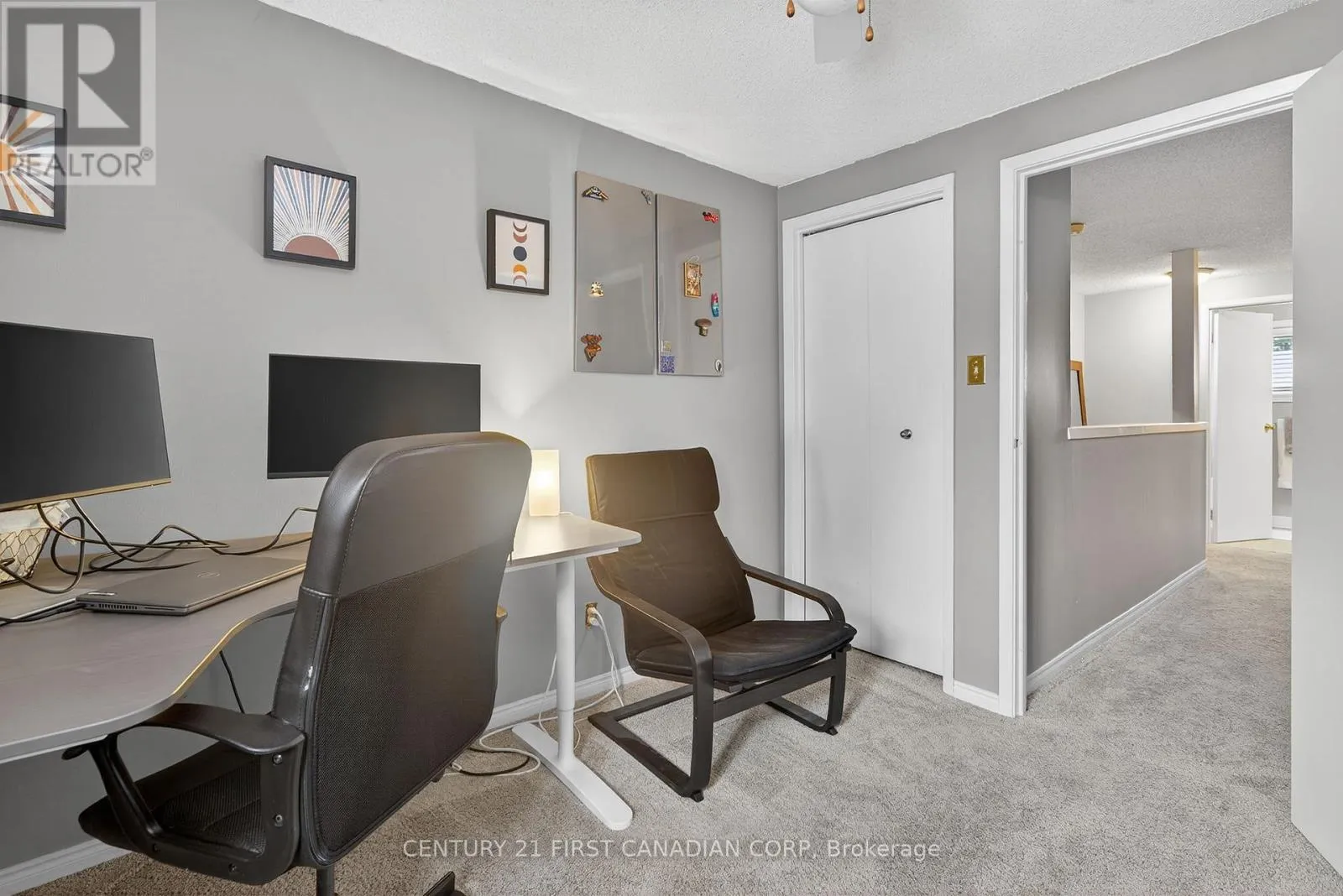 Cross Streets: Wellington. ** Directions: Wellington north, west on waterman, unit is located to the left at the back of the circled driveway. Welcome home to this beautifully maintained townhouse condo offering comfort, convenience, and space in a prime central location! Just minutes from Victoria and Parkwood hospitals, shopping, schools, and on a convenient bus route, this home is perfect for families, professionals, or anyone seeking easy access to city amenities. The updated kitchen offers modern finishes including updated appliances (gas stove!) and ample storage, flowing seamlessly into the dining area for easy entertaining. The inviting living room features a cozy fireplace- perfect for relaxing evenings. Upstairs, you'll find three generous bedrooms and a recently renovated full bath, with a convenient half bath on the main floor.The finished rec room provides extra living space ideal for a home office, gym, or media room. Enjoy maintenance-free living with all the benefits of condo ownership in a well-managed community. One owned parking space located right in front of the unit and second space available with owners assigned pass. Move-in ready and full of value - don't miss your opportunity to own this wonderful home! (id:27476)