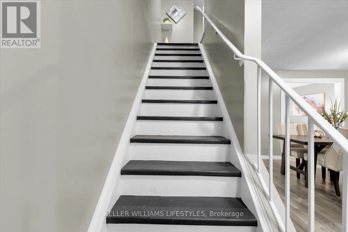Cross Streets: Ernest Ave. ** Directions: In the intersection between Ernest Ave and Jalna Blvd. Welcome to this charming 2-level townhouse condo located in the desirable White Oaks complex! This spacious home features3 bedrooms and 1.5 bathrooms, offering a comfortable and functional layout for families or first-time buyers. The main floor includes a bright kitchen, dining room, and living room with walk-out access to a private fenced patio, perfect for outdoor relaxation, plus a convenient powder room. Upstairs, you'll find three generous bedrooms and a 4-piece bathroom. The finished basement adds extra living space with a family room and a dedicated laundry area. Enjoy the carport-style garage and a prime location close to White Oaks Mall, Highway 401, the Aquatic Centre, schools, parks, and more-making this an ideal place to call home! (id:27476)