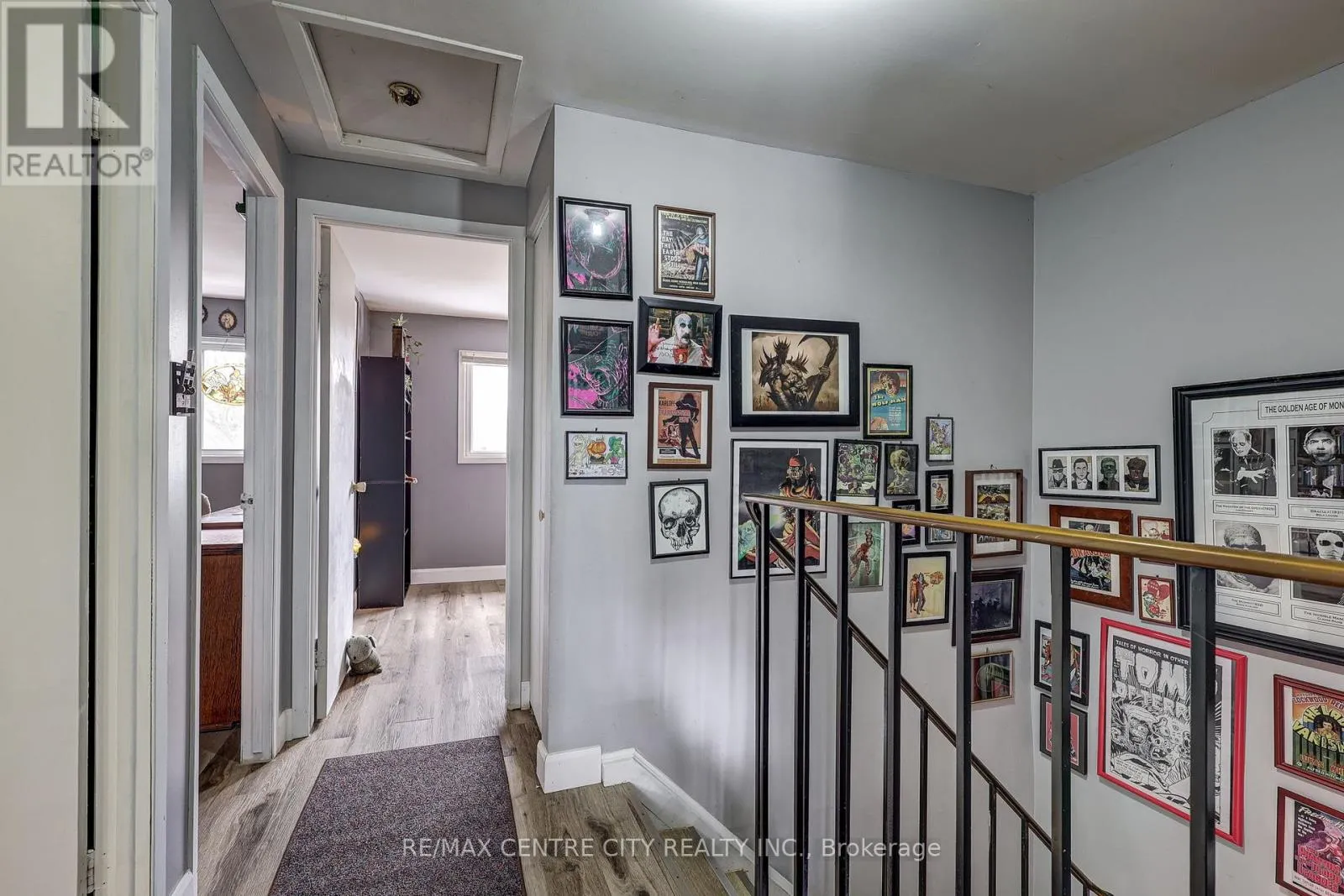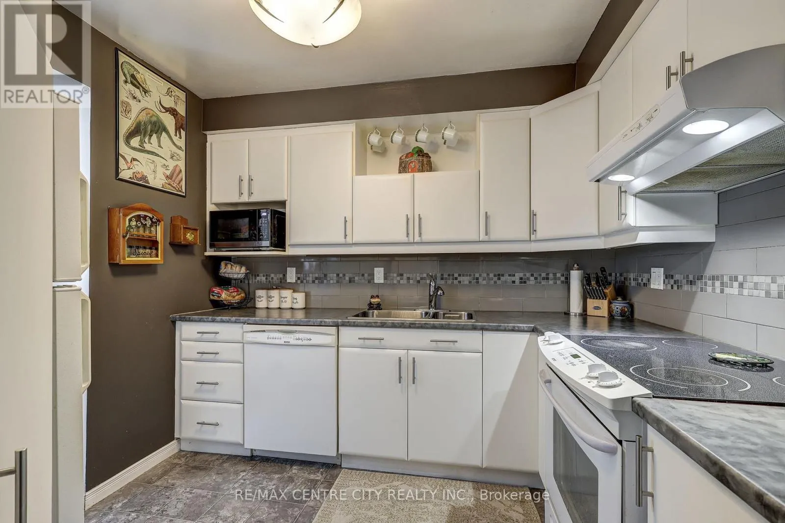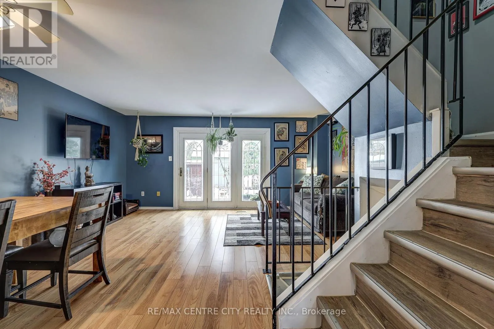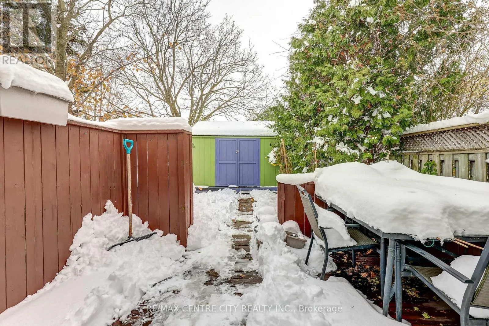 Cross Streets: MILLBANK RD & BEXHILL DR. ** Directions: Off Bexhill Dr. and Millbank Dr. A great opportunity to own a "freehold" townhouse in a family friendly neighborhood. Conveniently located minutes away from the 401, White Oaks Mall, and multiple schools. Nestled on a quiet side street, this property is perfect for first time home buyers, or young families. Within walking distance to parks, shops, bus stops, and Westminster ponds conservation area. The outside area includes parking for three vehicles, porch, back deck and a 10'x12' shed constructed with skylight (2023). Inside features three bedrooms, 1.5 bathrooms (new shower tile 2024), finished basement with rec room, and an updated modern kitchen with a backsplash. Laminate flooring on the main floor and 2nd floor. Closets in every room, and and adequate storage space in the basement. Roof shingles replaced in 2015. No condo fees! (id:27476)
