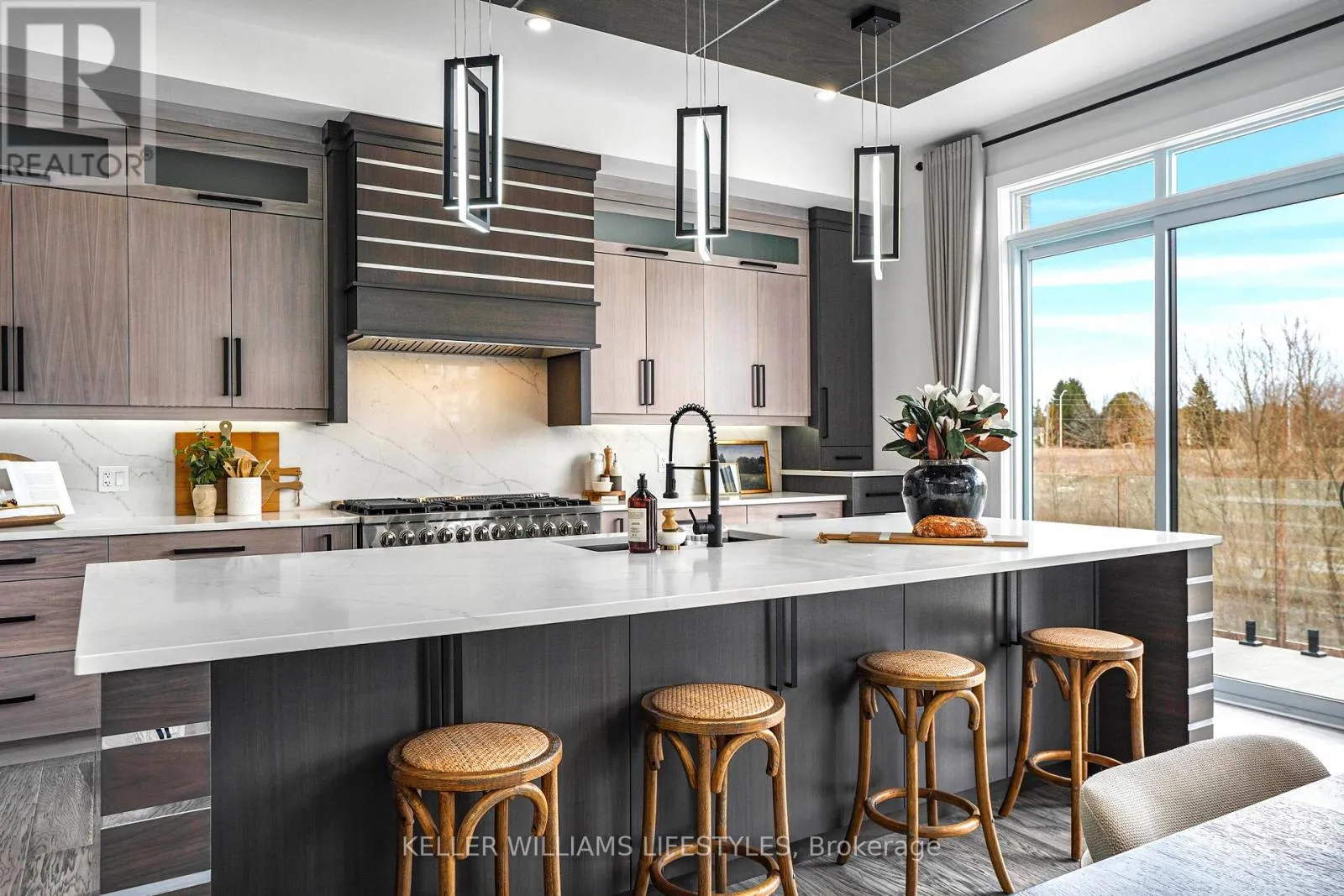 Cross Streets: Pack Road & Colonel Talbot. ** Directions: W on Pack road, first left to Islewood, and then right to Silvercreek. Welcome to this striking contemporary home offering over 3,800 sq. ft. of above-grade living plus a walk-out lower levelperfectly set on a premium lot backing onto a scenic stream and protected green space. Designed with dramatic architectural features, the home boasts soaring ceilings, oversized windows, a floating staircase, and high-end finishes throughout.The chefs kitchen features upscale Forno appliances, a waterfall island, full fridge/freezer, and a hidden pantry/prep area with a second dishwasher. The open-concept great room is anchored by a linear fireplace and built-in shelving, with direct access to a full-width deck overlooking the private backyard.Five spacious bedrooms include a luxurious primary retreat with a sitting area, walk-in dressing room, and spa-like ensuite. The lower level is an entertainers dream with a wet bar, wine storage, home theatre, gym, and bonus flex spaceall with walk-out access to a covered patio.Located minutes from trails, shopping, schools, and Hwy 401 access, this is modern luxury at its finest. Contact us today to learn more. (id:27476)