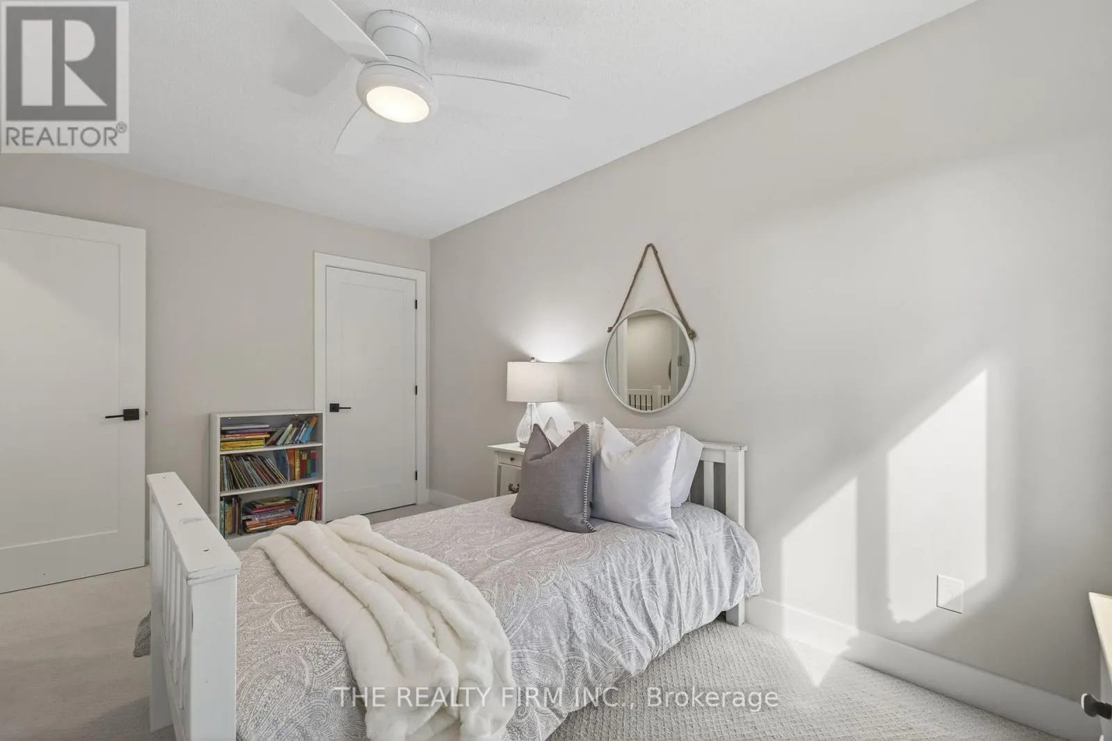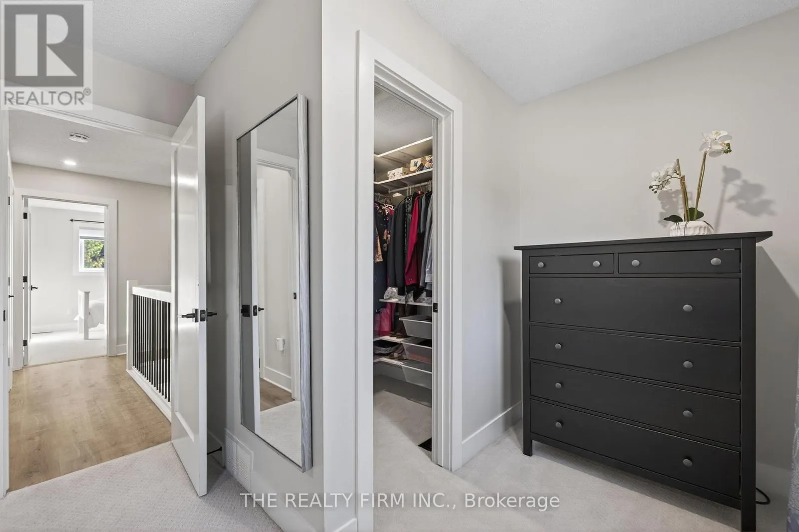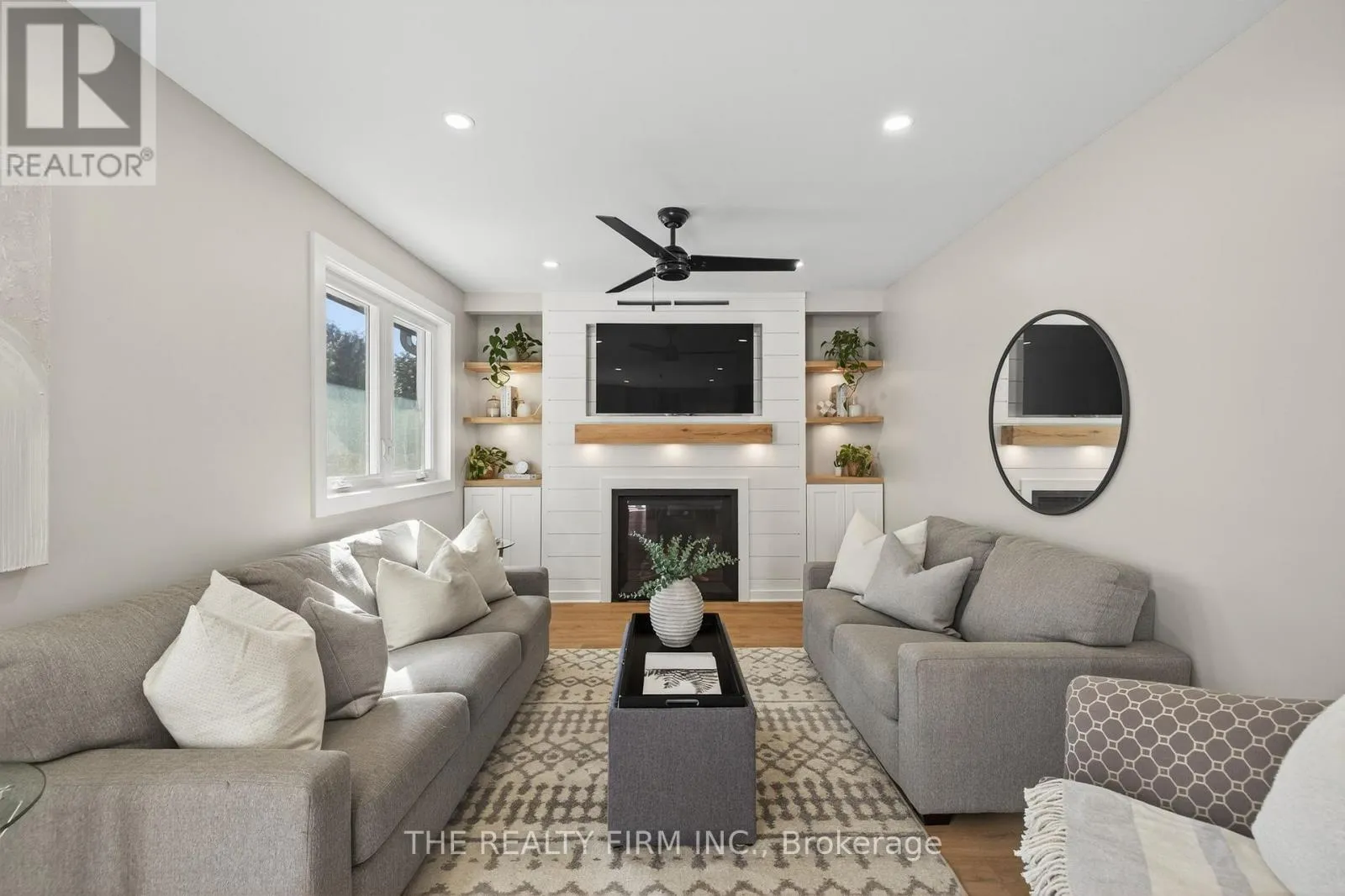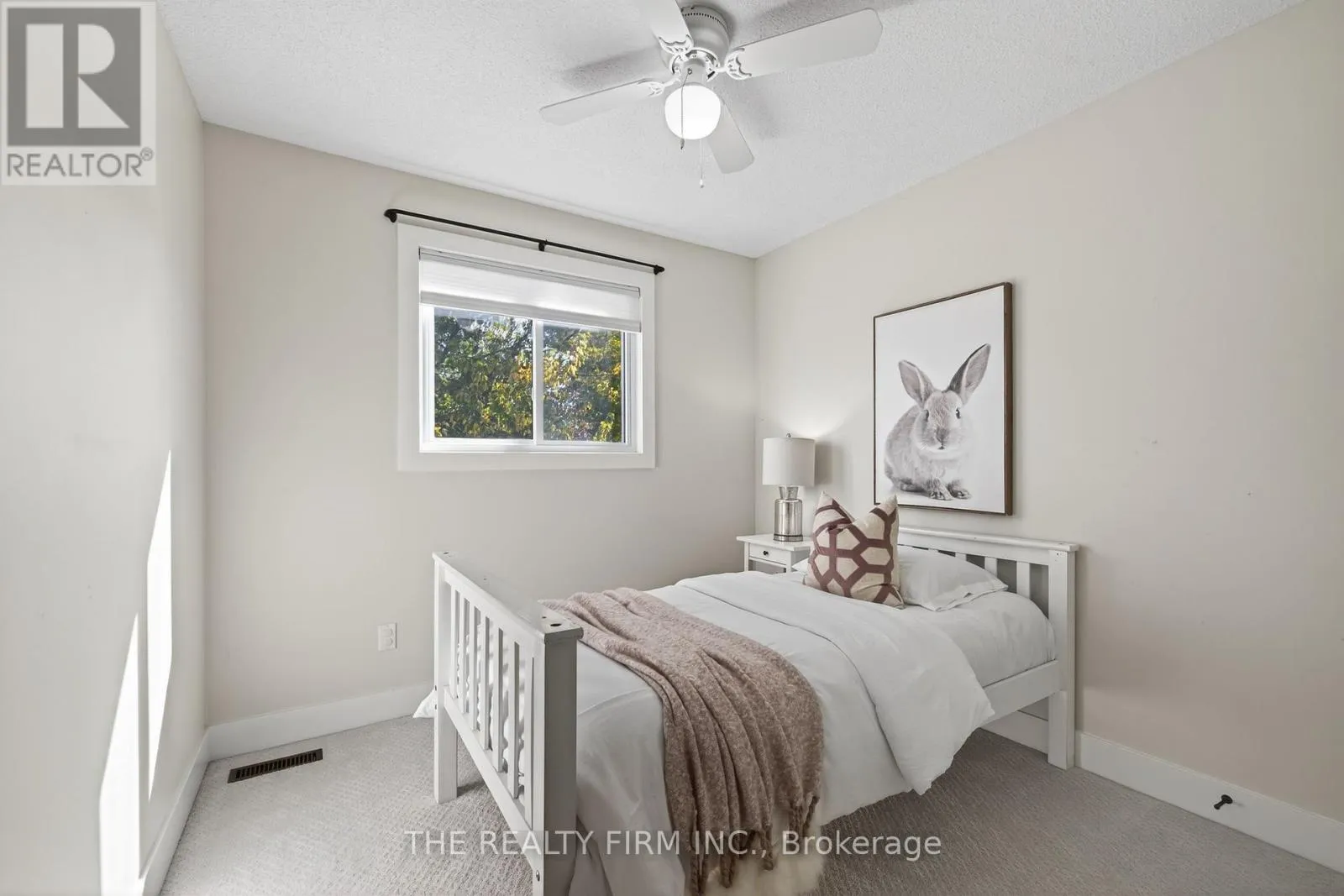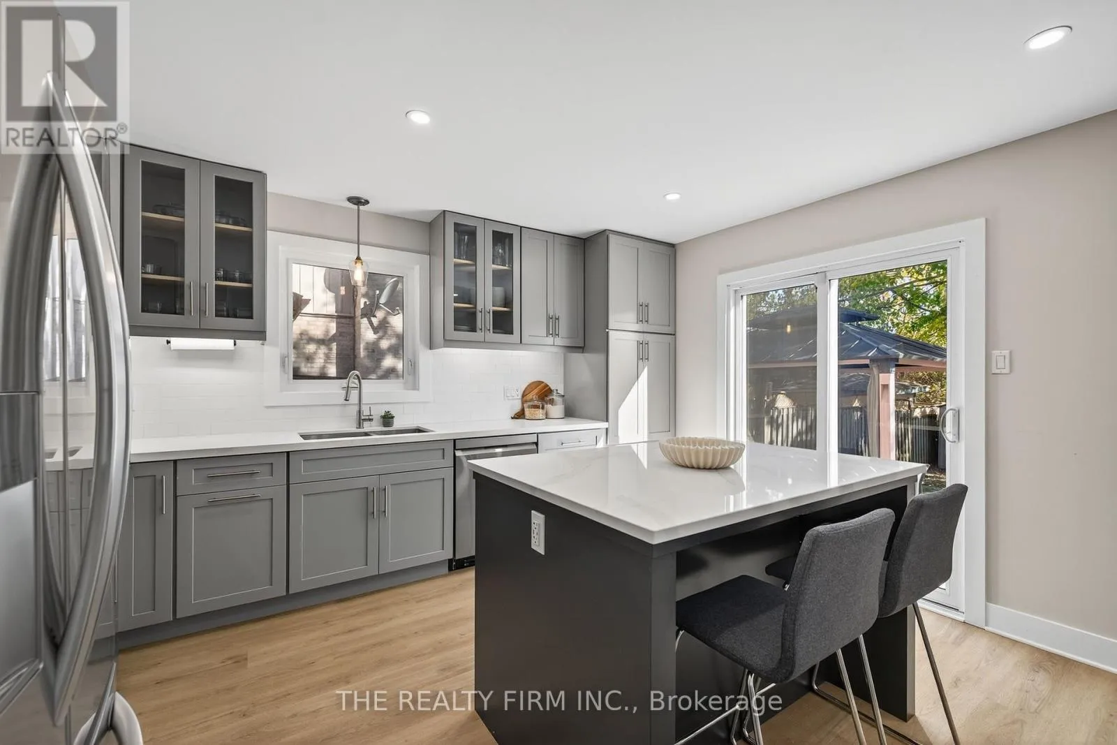Cross Streets: Sarah Crescent & Cheswick Circle. ** Directions: From Exeter Rd, turn right onto Chalkstone Dr, left onto Jalna Blvd, then right onto Cheswick Circle. Discover ultimate family living at 107 Cheswick Circle. This beautifully updated two-storey home blends comfort, style, and function in a quiet, tree-lined neighbourhood where kids can ride bikes and neighbours still wave hello. Offering 3+1 bedrooms, 2 bathrooms (plus a basement rough-in) and double-car garage with paving stone driveway, it's the kind of home that instantly feels welcoming. Step inside to bright, open spaces finished with new vinyl plank flooring on the main floor and new carpet in the lower level. The dining room's crown moulding and large bay window create an inviting setting for family meals and holidays, conveniently located next to the 2-piece bathroom. The modern kitchen shines with stainless steel appliances, quartz counters, island with breakfast bar plus a generous amount of cabinetry for effortless organization. The adjoining living room centers around a cozy gas fireplace framed in charming shiplap, surrounded by custom built-ins. Oversized main-floor laundry connects to the garage and side yard, making everyday life easier. Upstairs, three spacious bedrooms feature ceiling fans and soft carpeting for comfort. The primary bedroom offers a walk-in closet, while the updated 4-piece bathroom showcases stylish finishes and a linen closet for added storage. The finished lower level extends your living space with a rec room, guest bedroom, and rough-in for a future bathroom -- ideal for a granny suite or teenage retreat. Out back, enjoy the serenity of nature with no rear neighbours and a stunning backdrop of forest and parkland. Relax under the gazebo, host barbecues on the paving stone patio, or watch kids and pets play freely in the open green space framed by mature trees. Additional recent updates include new shingles and eavestrough (2024) offering peace of mind for years ahead. Close to parks, trails, schools, White Oaks Mall, and Highway 401, this home delivers comfort, community, and connection -- everything a family could hope for. (id:27476)