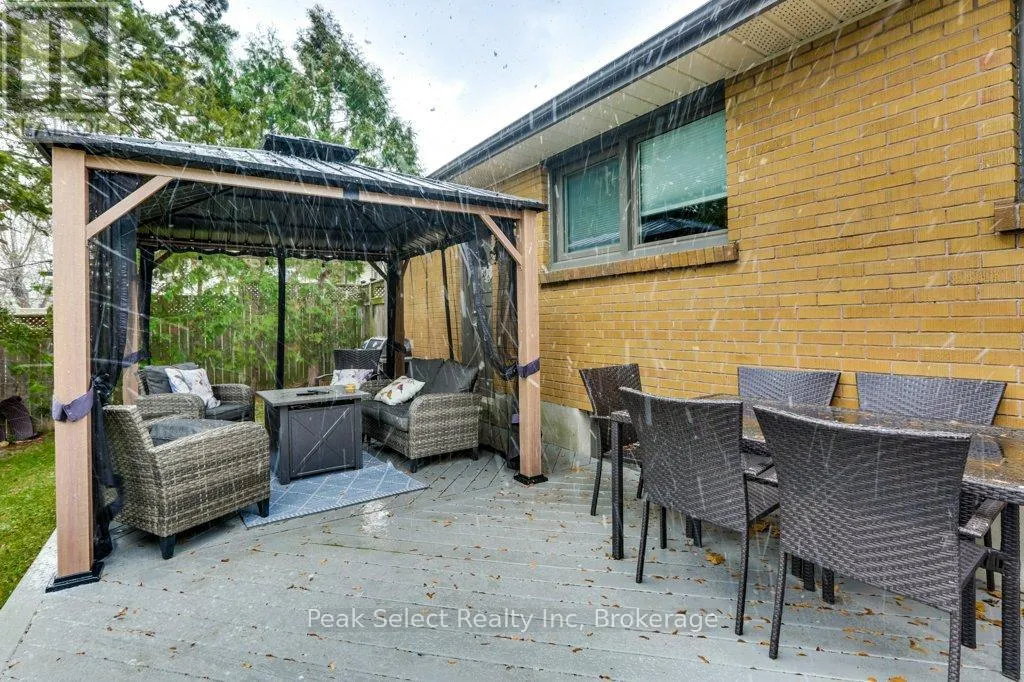 Cross Streets: Vermont & Buckingham. ** Directions: From Commissioners, north on King Edward ave, turn left/west on Vermont, and right/north onto Buckingham. Great cute brick ranch with garage, on wide 64.9 x 120 ft lot. This home will have the 'Mom & Dad approval' and even 'Uncle expert' too! Why? Its a 'solid' home, as they say, with all the "right" updates done and is adorable! Plus has roomy fenced rear yard for kids & pets to enjoy, plus a cute large rustic shed! ....Now the IMPORTANT DETAILS: IN 2025 - NEW central air & gas furnace; WINDOWS are updated; Shingles 2009 (35 yr type shingles) Two BATHROOMS are updated including duel flush toilets & one has roomy multi-head shower; UPDATED KITCHEN (and appliances) that the cooks will enjoy, with pull-out drawers, pots & pans drawer; new 2025 tap sprayer/tap in the deep gourmet style sink, plus tons of counter space & breakfast bar; 800 series style doors; decora style switches; Updated front door; 100 amp breaker panel; Gazebo on large rear deck; plus desirable rustic style 10x 12ft apprx shed. Some extra features: modern, easy pull down blinds on most windows; desirable timber mantle to fireplace; some updated light fixtures; combination front door lock; etc. This home has covered front porch leads inside to separate foyer, that leads to open Living/Dining/Kitchen (with a fireplace). Three bedrooms with two using the practical storage of built in (the wall) drawers and closets. No carpet except in halls and on stairs. The lower level can be accessed off the kitchen or directly from rear entrance to stairs. Lower level features den (used as bedroom); huge Rec room; a 3 piece bathroom with a big walk-in shower; a finished, yes finished laundry/storage area, plus utility. Don't forget there is attached single car, extra long garage with man door at rear. The driveway is ideal for busy family being double wide for easy parking of at least 4 cars. The mature landscaping with various trees and room for a garden, plus large deck and gazebo for your enjoyment. Short commute to shopping, Commissioners, Highbury, Schools, hospital, downtown and restaurants (id:27476)