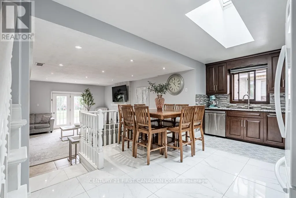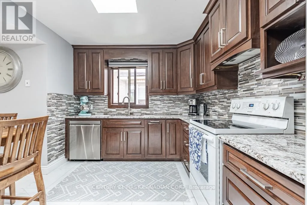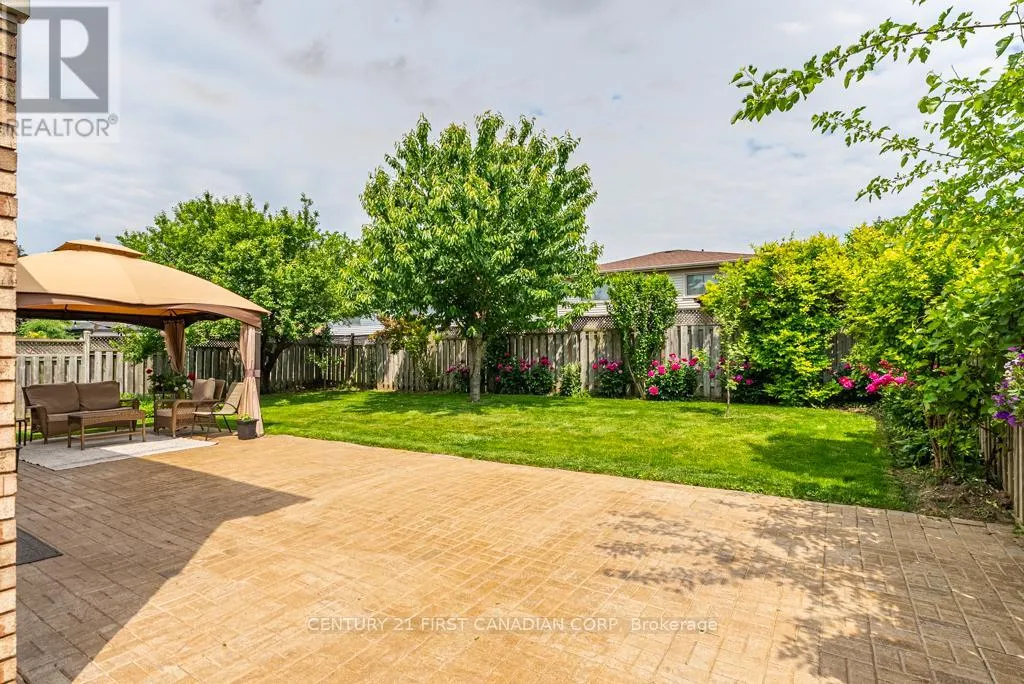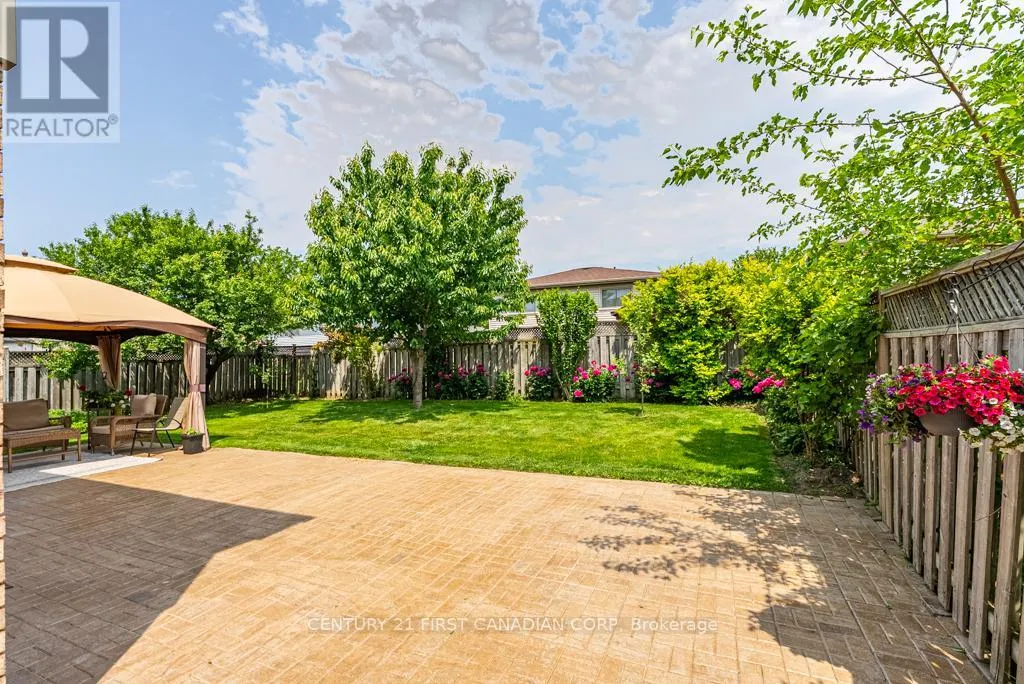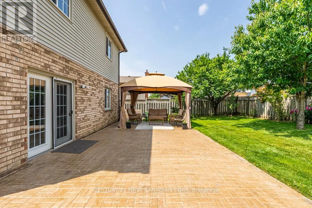Cross Streets: Southdale Rd E and Jalna Blvd. ** Directions: Traveling south on Jalna Blvd make a left on Ashley Crescent. Welcome to 169 Ashley Crescent, a beautifully crafted 2-storey home nestled in the highly sought-after White Oaks neighborhood of London. Located just steps from Ashley Oaks Public School, this exceptional property offers the perfect blend of style, comfort, and convenience for todays modern family. With over 2,200 sqft of finished living space, this home features 3+1 spacious bedrooms and 3 full 4 Pc bathrooms, and has been thoughtfully updated and meticulously maintained throughout. The main level boasts a bright, open-concept layout with a cozy natural gas fireplace and rich hardwood and ceramic flooring. At the heart of the home is a stunning custom Mennonite eat-in kitchen with granite countertops, quality cabinetry, and ample work space perfect for both everyday living and entertaining. Upstairs, the generously sized bedrooms provide room to grow, including a spacious primary suite complete with his-and-hers closets and a private 4-piece ensuite. The finished lower level adds even more functional space, ideal for a home office, gym, playroom, or guest quarters. Situated on a private pie-shaped lot, the home features a large backyard retreat with a beautiful stone patio perfect for summer barbecues or relaxing evenings. The stamped concrete driveway adds striking curb appeal, while recent updates including a new LENNOX furnace and A/C (2025), new dishwasher (2025), and washer/dryer (2024) provide modern comfort and peace of mind. Located close to parks, schools, shopping, restaurants, public transit, and quick access to the 401, this move-in-ready home offers exceptional value in one of London's most family-friendly communities. (id:27476)